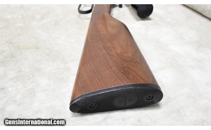 Description: Made for larger pest control, the 9422M is chambered in .22 WMR. While not quite as powerful as the .219 Bee or Zipper, it has enough power for most ofthe varmints that would harrass livestock, or burrow under buildings while still rreamining fairly quiet. This one is in excellent condition with clean wood/metal, sharp checkering, and a good bore. .22 WMR SOLD Chambers: 10 rounds Metal Condition: "Excellent. One fine scratch on the receiver, about 1/4 inch long. Wood Condition: Excellent. Bore Condition: Shiny and bright.Shiny and brught with good rifling. Barrels: 20-1/4 inches Triggers: Factory trigger Stock Dimensions: LOP: 14 inches Fore End: Well-matched walnut. Butt Pad: Black plate. Weight: 6 lb - 11 oz. incl scope Sights: "Hooded bead and semi-buckhorn ""iron"" sights, grooved for scope adn outfitted with a Leupold M8 fixed 3x scope. Item Location: Rogers |