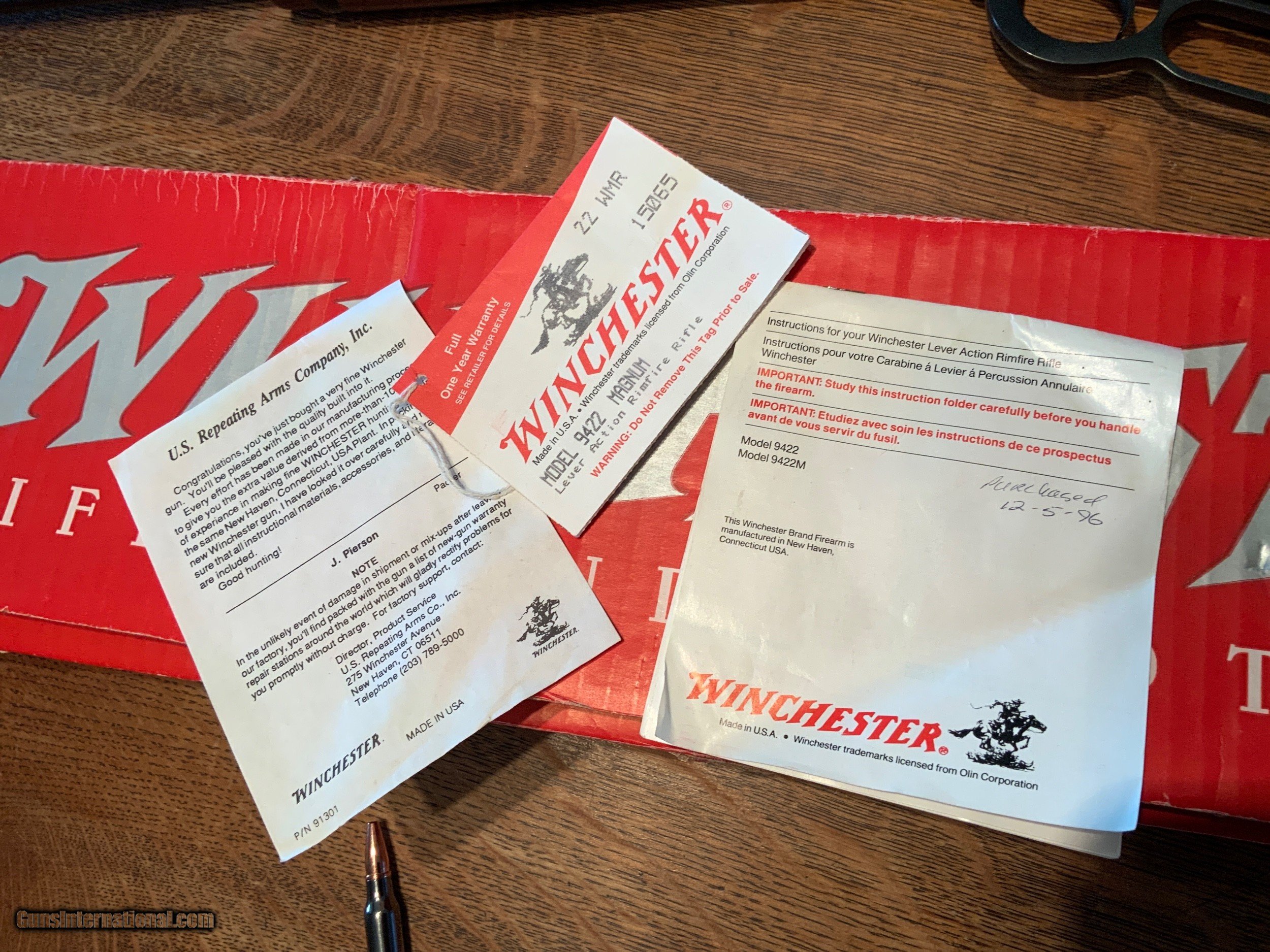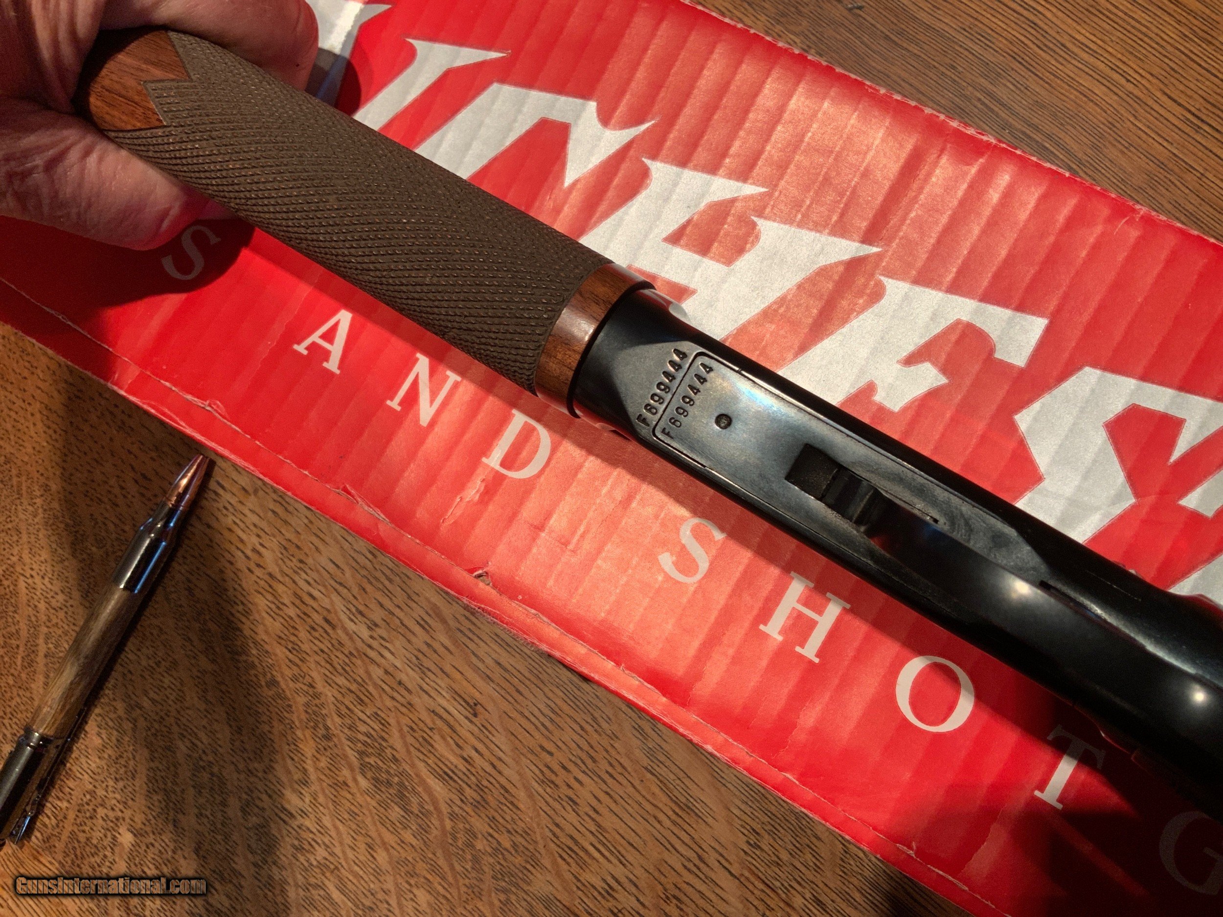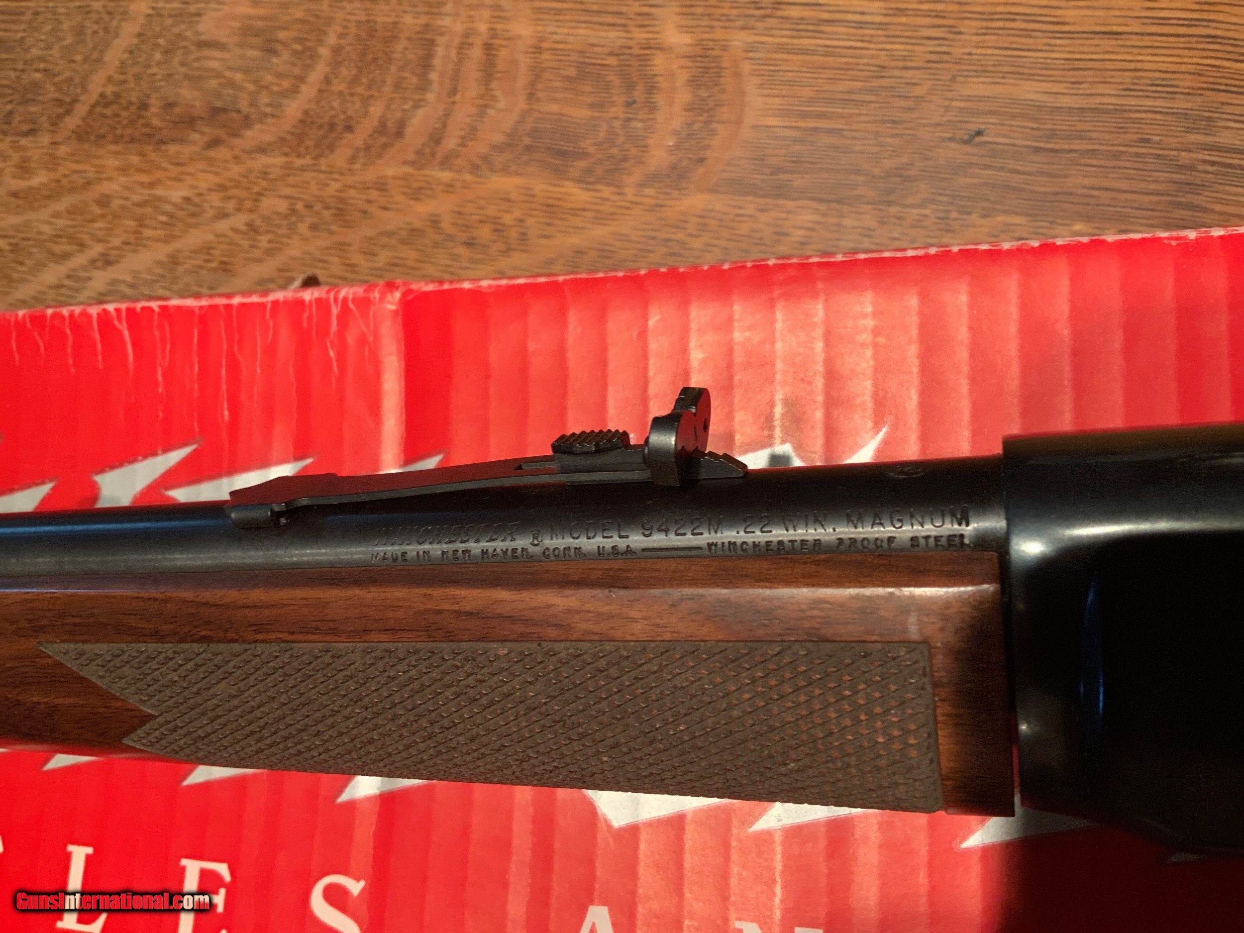Description: Winchester 9422M 22 magnum as new in box. Lever action 22 magnum. This is the blued gun with the checkered oil finished stock. Appears new in the box complete with hangtag and papers. Pictures tell the story. Please add $60 for shipping and insurance to your FFL. If your FFL dealer will not accept from a private party please add $20 to the cost of shipping to cover my dealers transfer fees. SOLD Rifle Caliber: .22 WMR (.22 Magnum) Manufacturer: Winchester Model: 9422M Barrel Length: 20 1/2 Inch Condition: Excellent Metal Condition: Excellent Wood Condition: Excellent Bore Condition: Excellent Action: Lever Stock: Checkered |