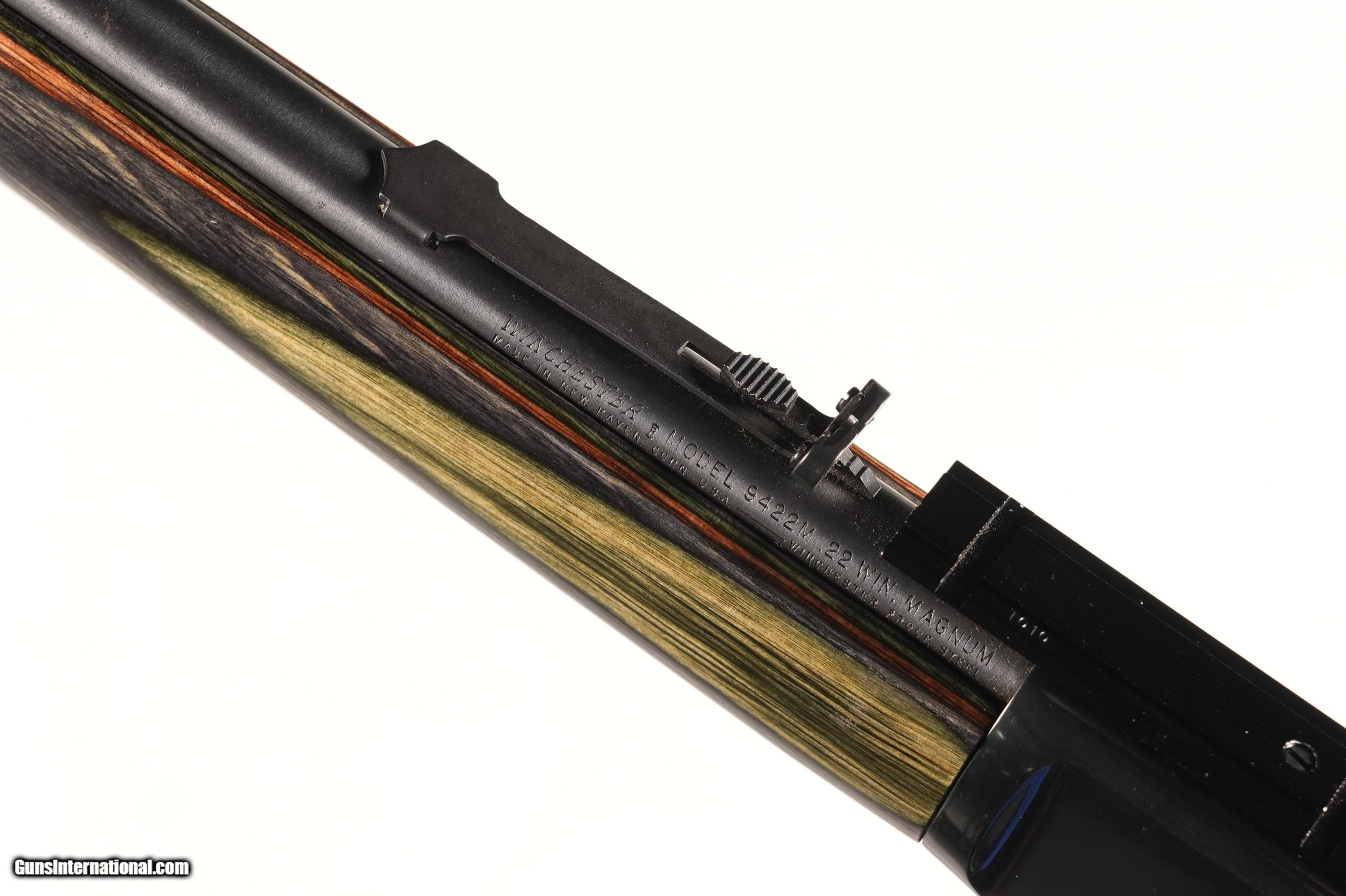 Description: Winchester Model 9422M cal, 22 Magnum with factory green laminated stocks. Mfd 1996/97. Fitted with Weaver scope base and factory hammer extension. Very scarce laminated stock variation. Condition, Extremely fine with 99% finish, bright bore and mechanically excellent. • Free Shipping, No Credit Card Fees. • Lay-a-way available for this firearm. • 1/3 Down, a 1/3 in 30 Days, 1/3 in 60 Days. SOLD Manufacturer: Winchester Model: 9422M Serial Number: F893247 Barrel Length: 20 |