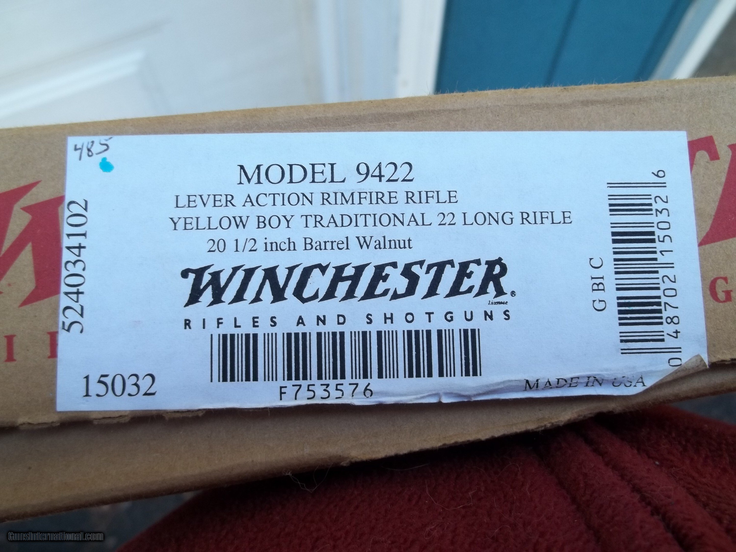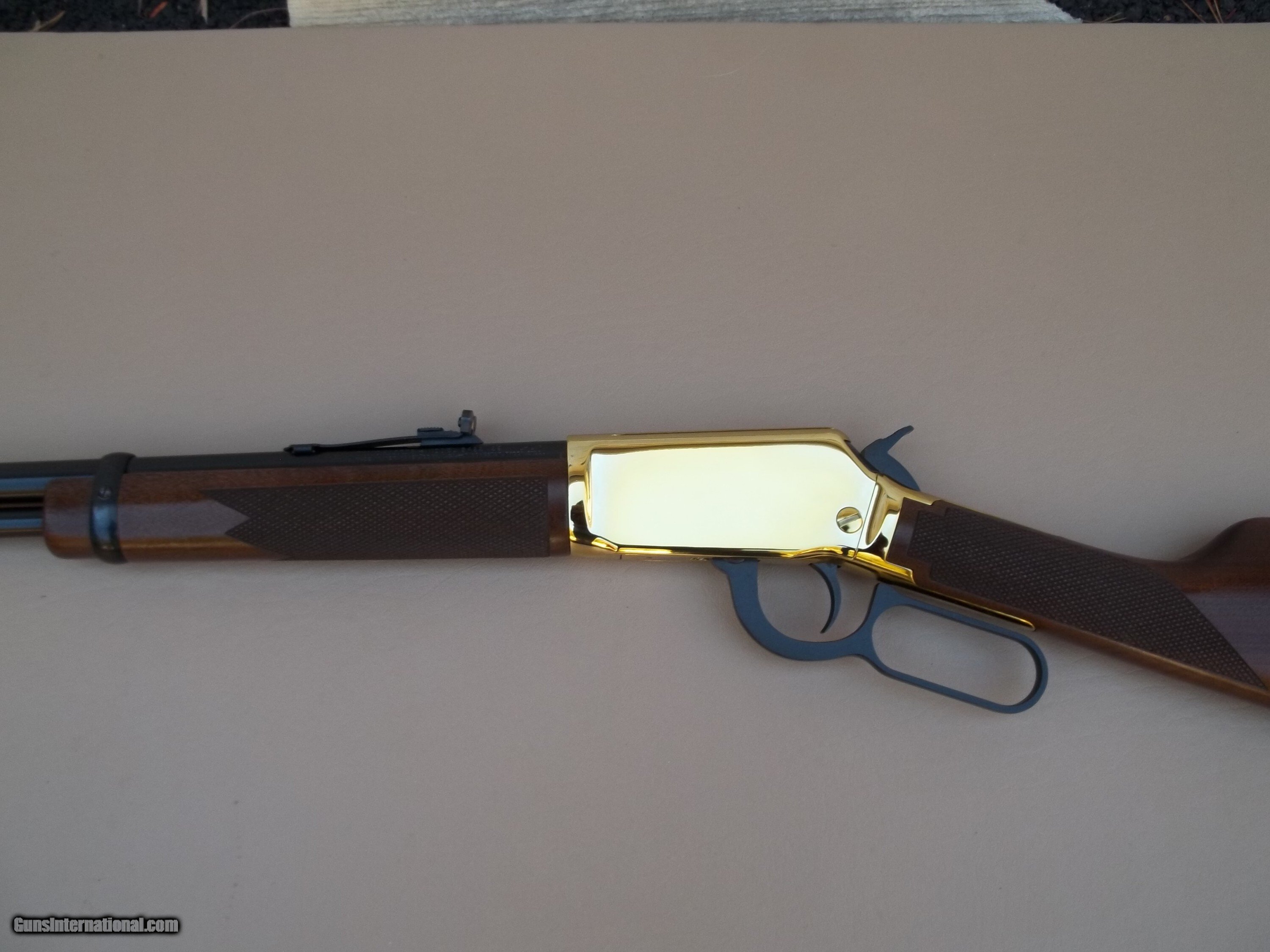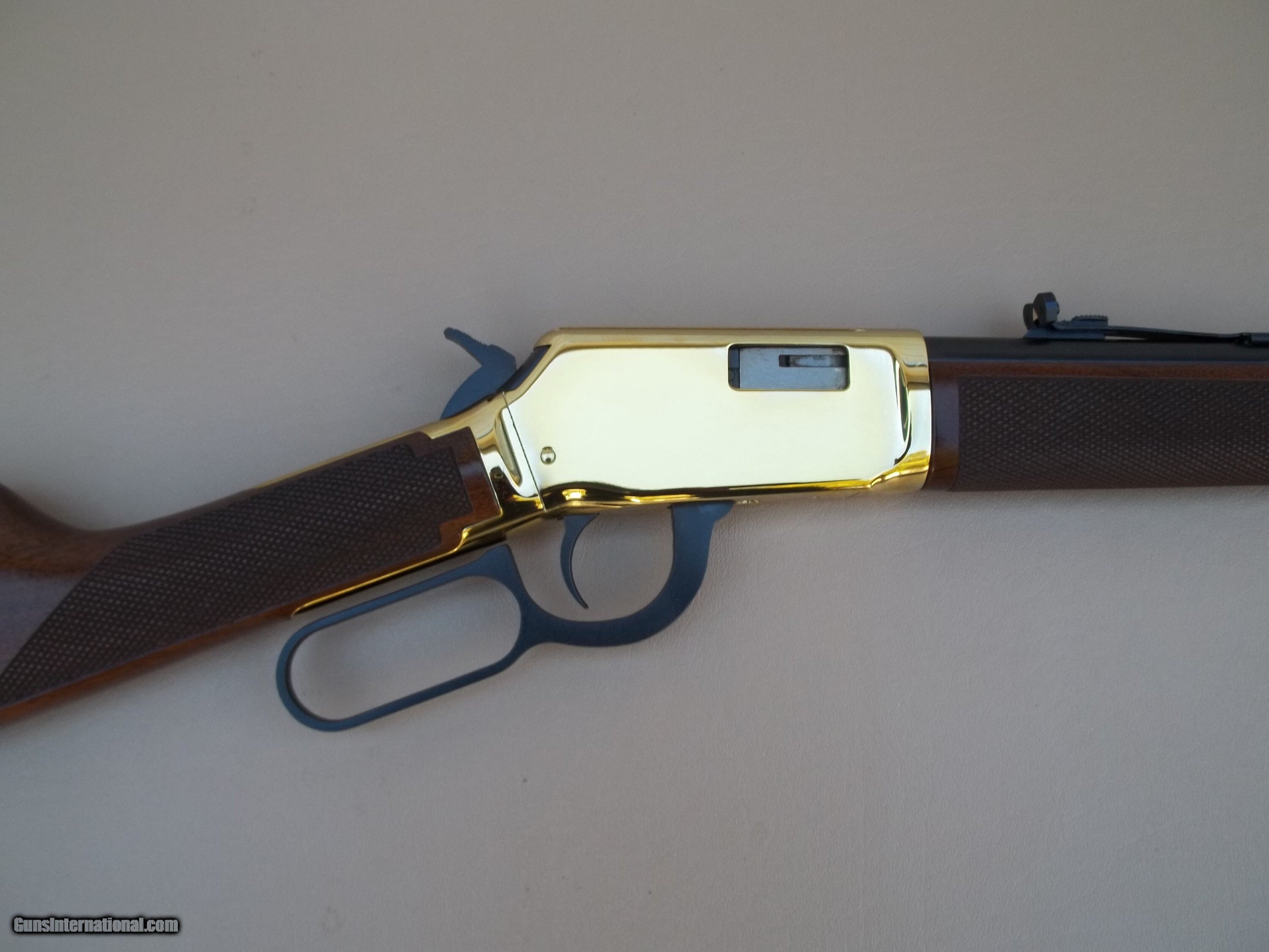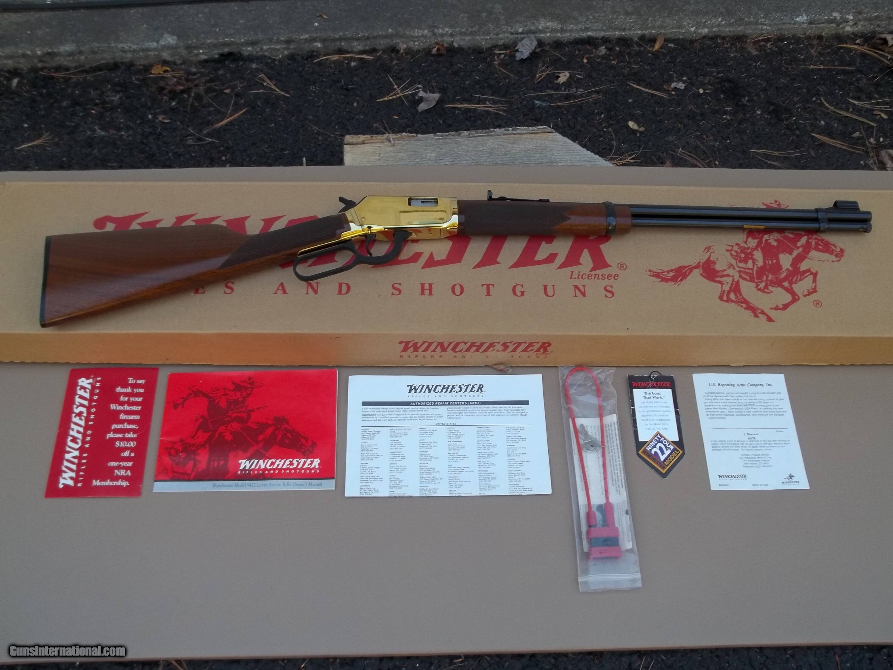 In 2003, Winchester produced a very limited run of 9422s they called the Yellow Boy. The gold plated receiver makes this rifle very attractive and it has become highly collectable. This Yellow Boy is in mint condition and is unfired since it left the factory with the box and all the paperwork.