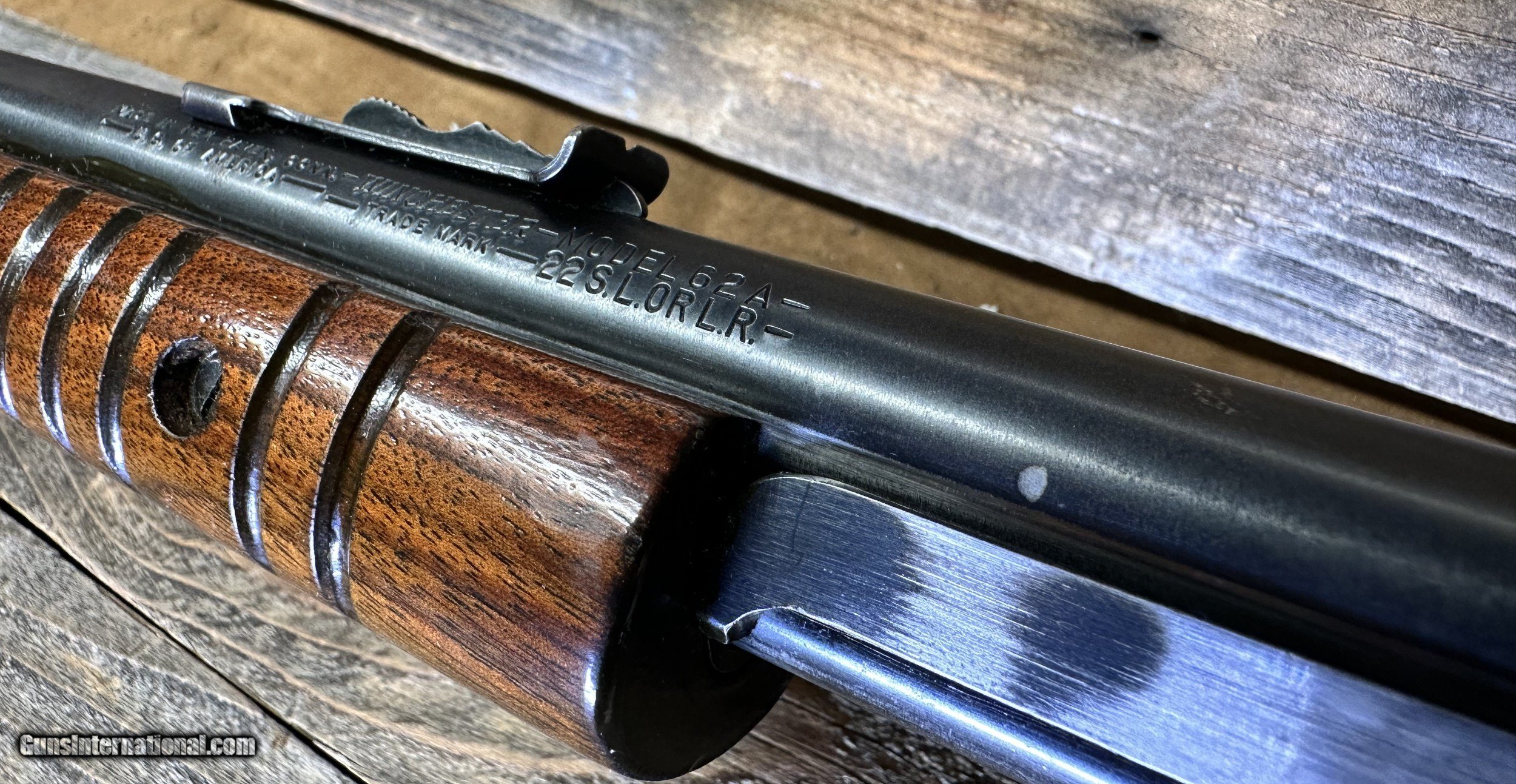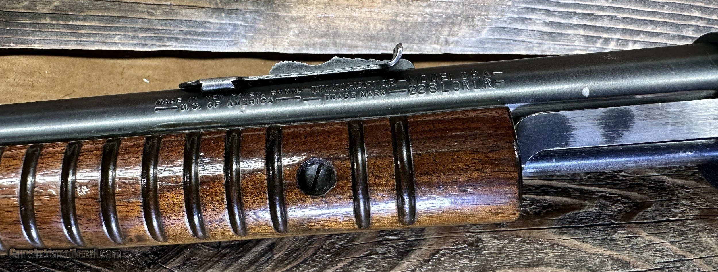 Description: Winchester Model 62A in 22LR with 23" barrel, manufactured in 1956 $75 for insured shipping No sales or shipping to California, Hawaii, New Jersey, New York SOLD Rifle Caliber: .22 Long Rifle Manufacturer: winchester Model: 62a Serial Number: 338444 Barrel Length: 23 |