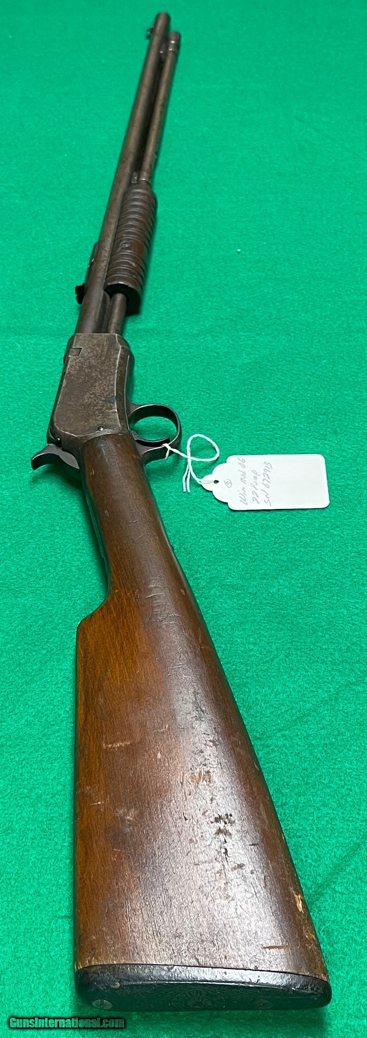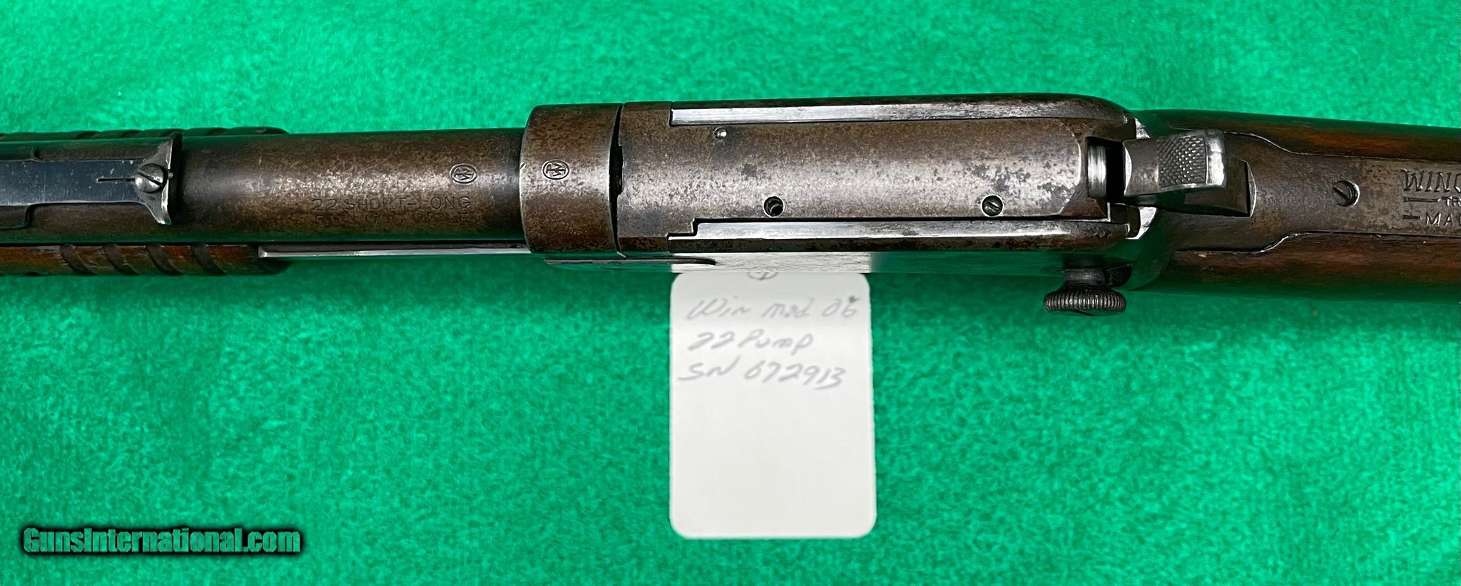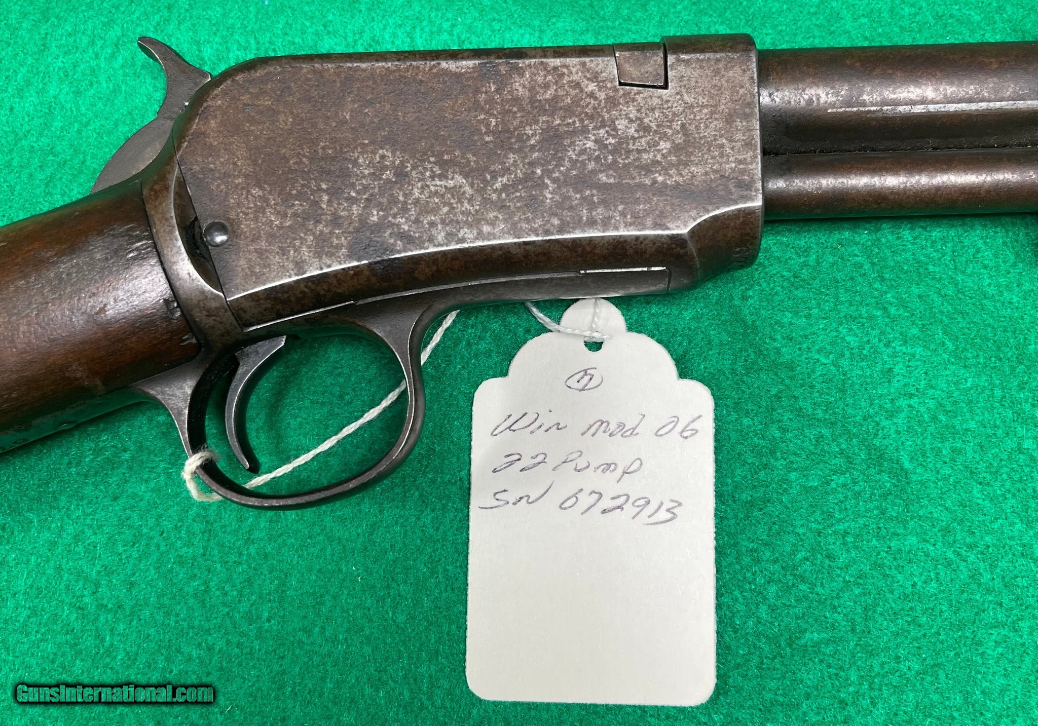 Description: Guns Listing ID: 575782 100+ YEAR OLD PUMP 22 WITH EXPOSED HAMMER. MARKED AS A MODEL 06 NOT 1906 AND IS IN GOOD SHAPE TO BE THIS OLD Manufacturer: WINCHESTER Model: MODEL 06 Caliber Info: .22 S/L/LR Condition: Used - Non-Certified Barrels: 20" BARREL Action: PUMP ACTION Finish: blued Price: $1,199.99 Contact Seller |