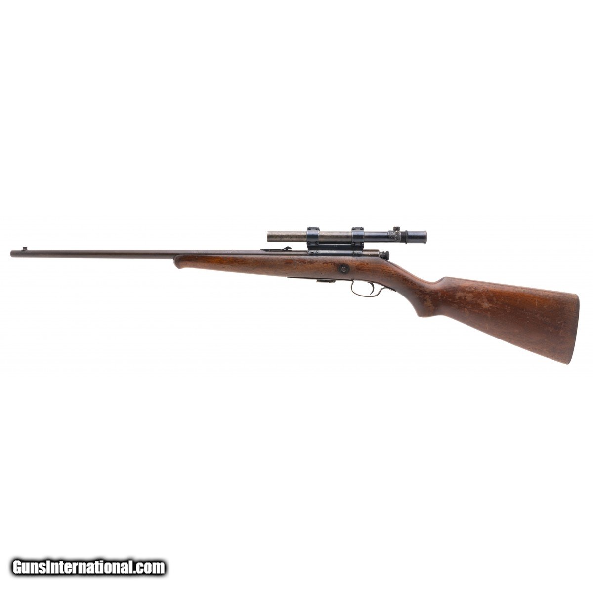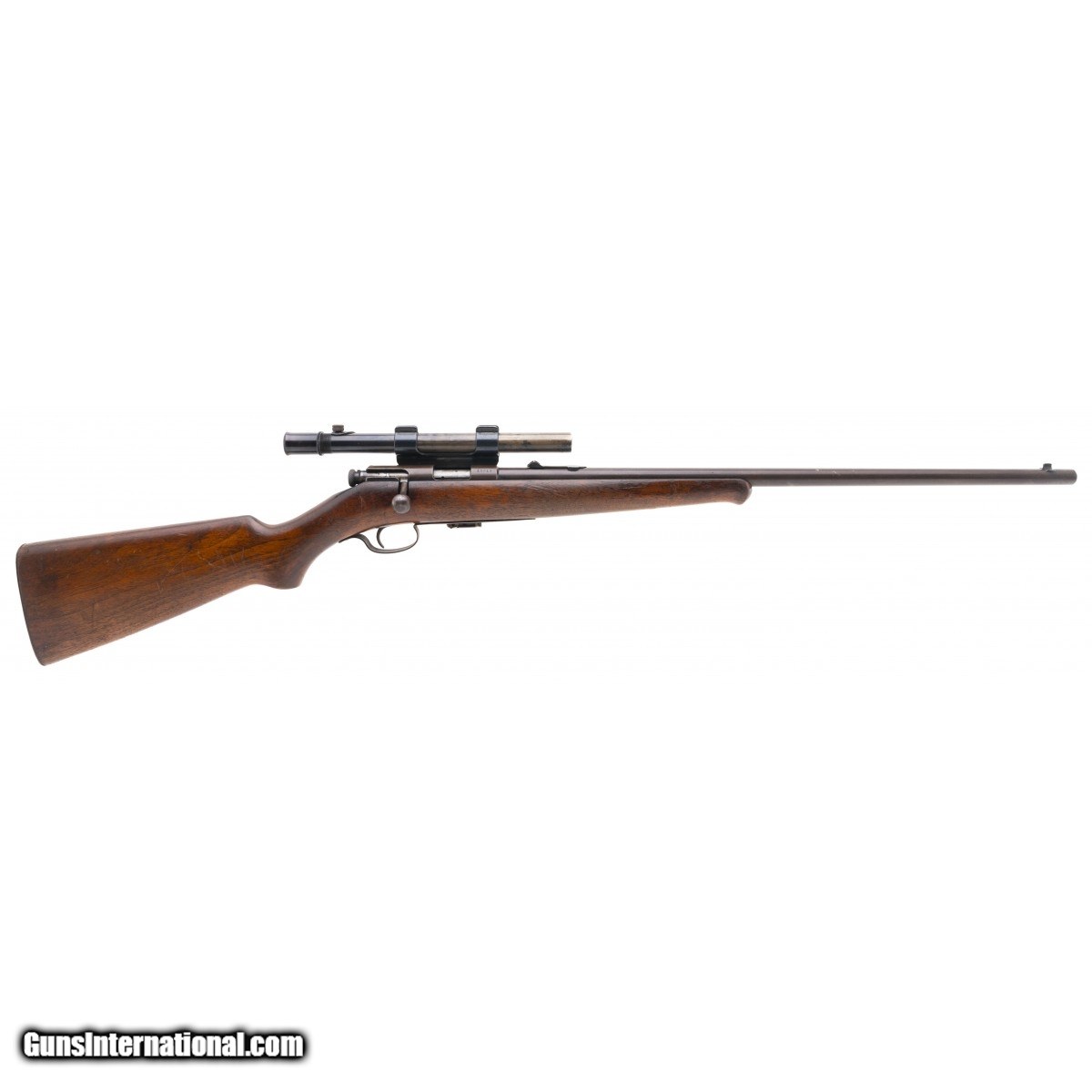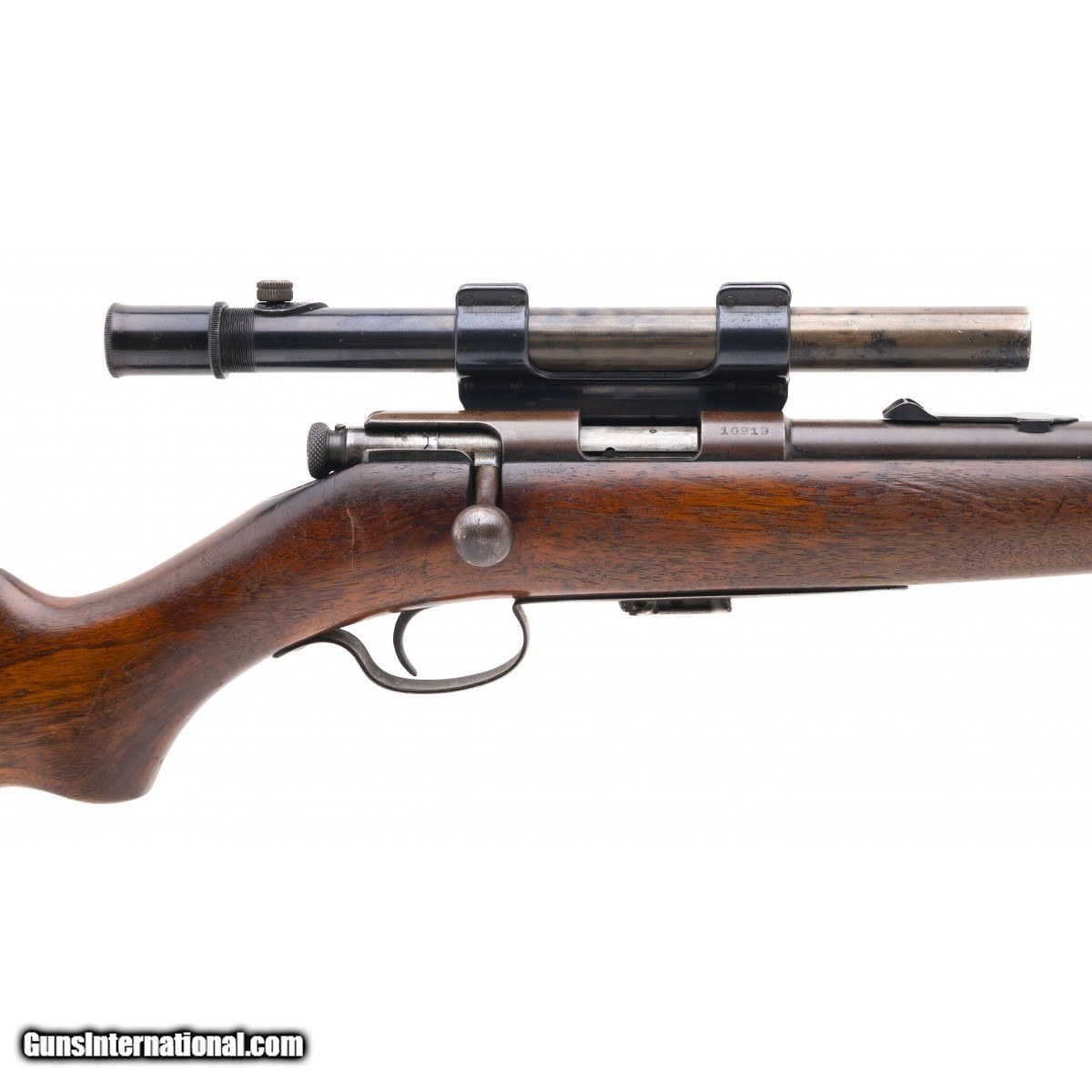 SN: 10919. Made in 1927. .22 LR with a 22"" barrel. Bore is shiny with strong rifling. Bolt action .22 Winchester. Rifle has smooth brown patina with factory blue still present on the scope rings. Stock is in good condition with handling wear noted throughout. Comes with Model 29S scope. Action functions properly. Overall good condition. Consignment
