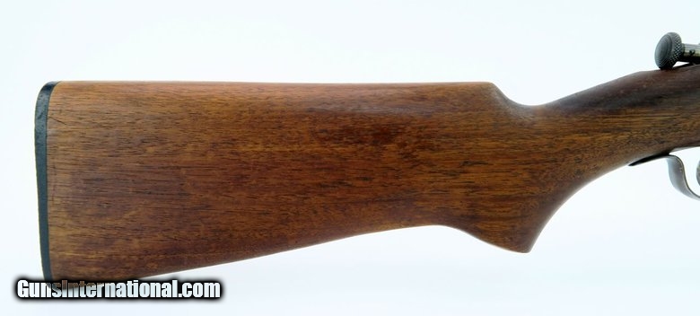 Winchester 60A .22 S, L, LR caliber rifle. Sporter model, bore is very good with strong rifling, some minor frosting. Wood is very good with no cracks. Metal has 98% blueing with an area of surface etching by the front sight. Very good overall condition.