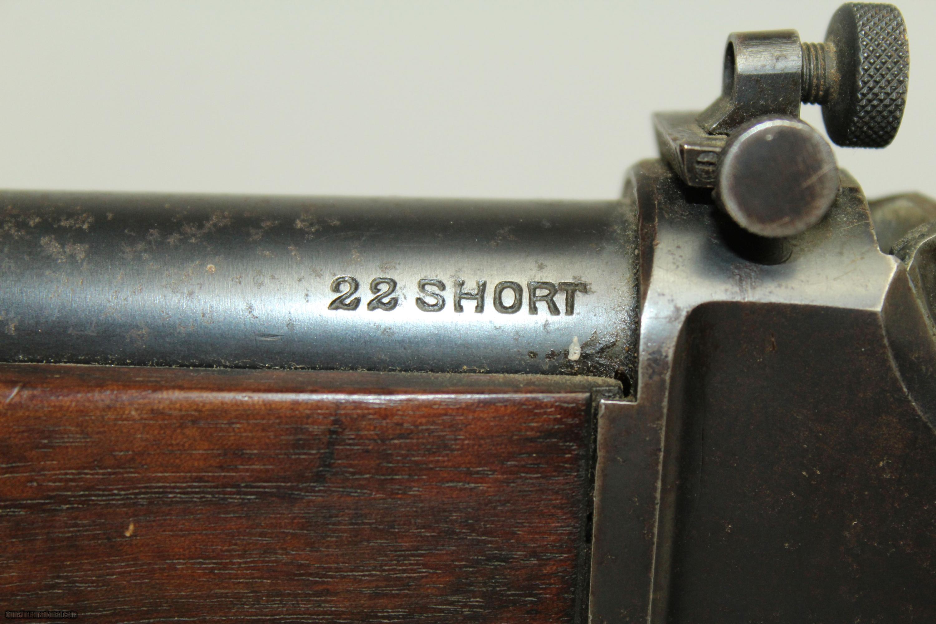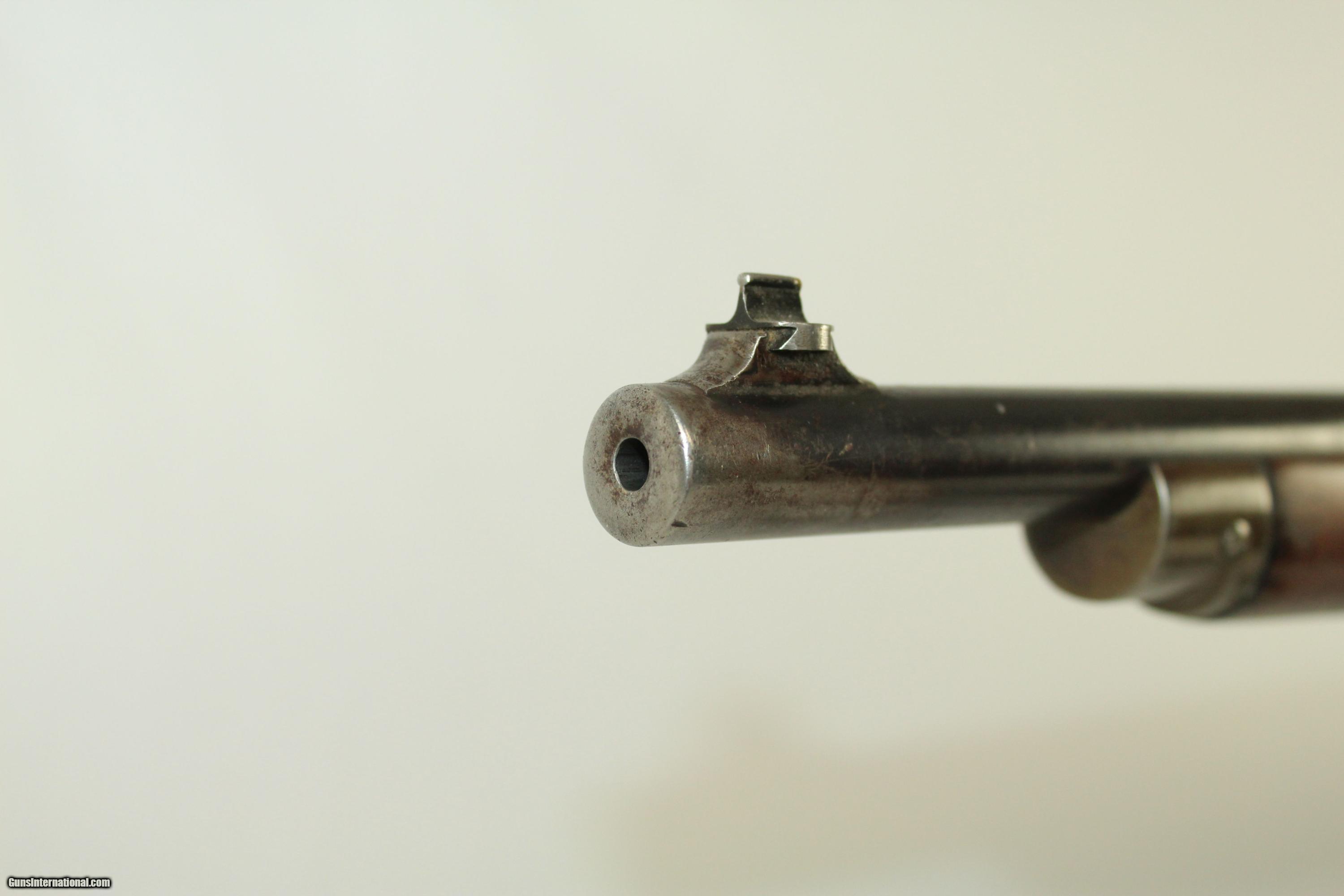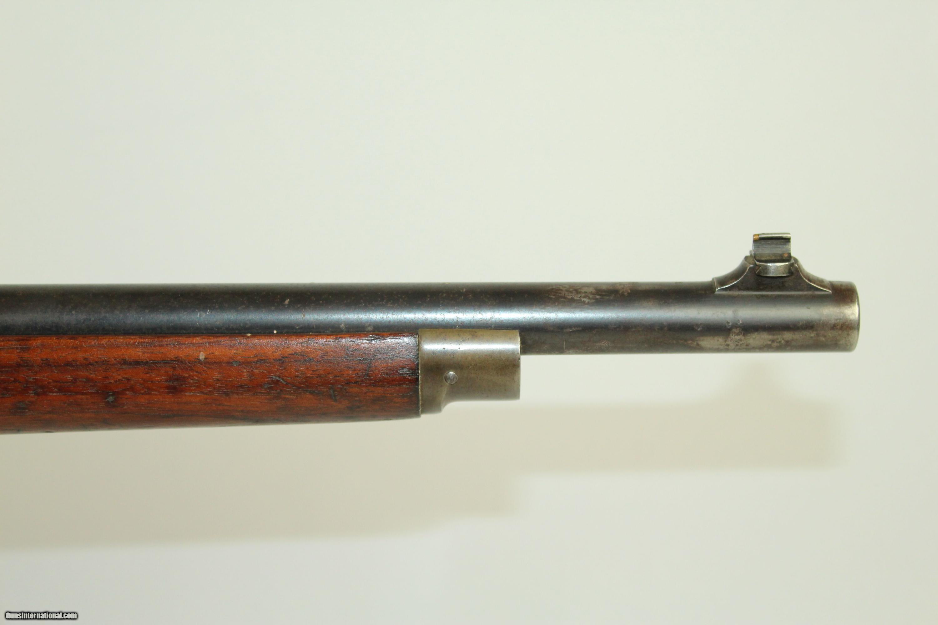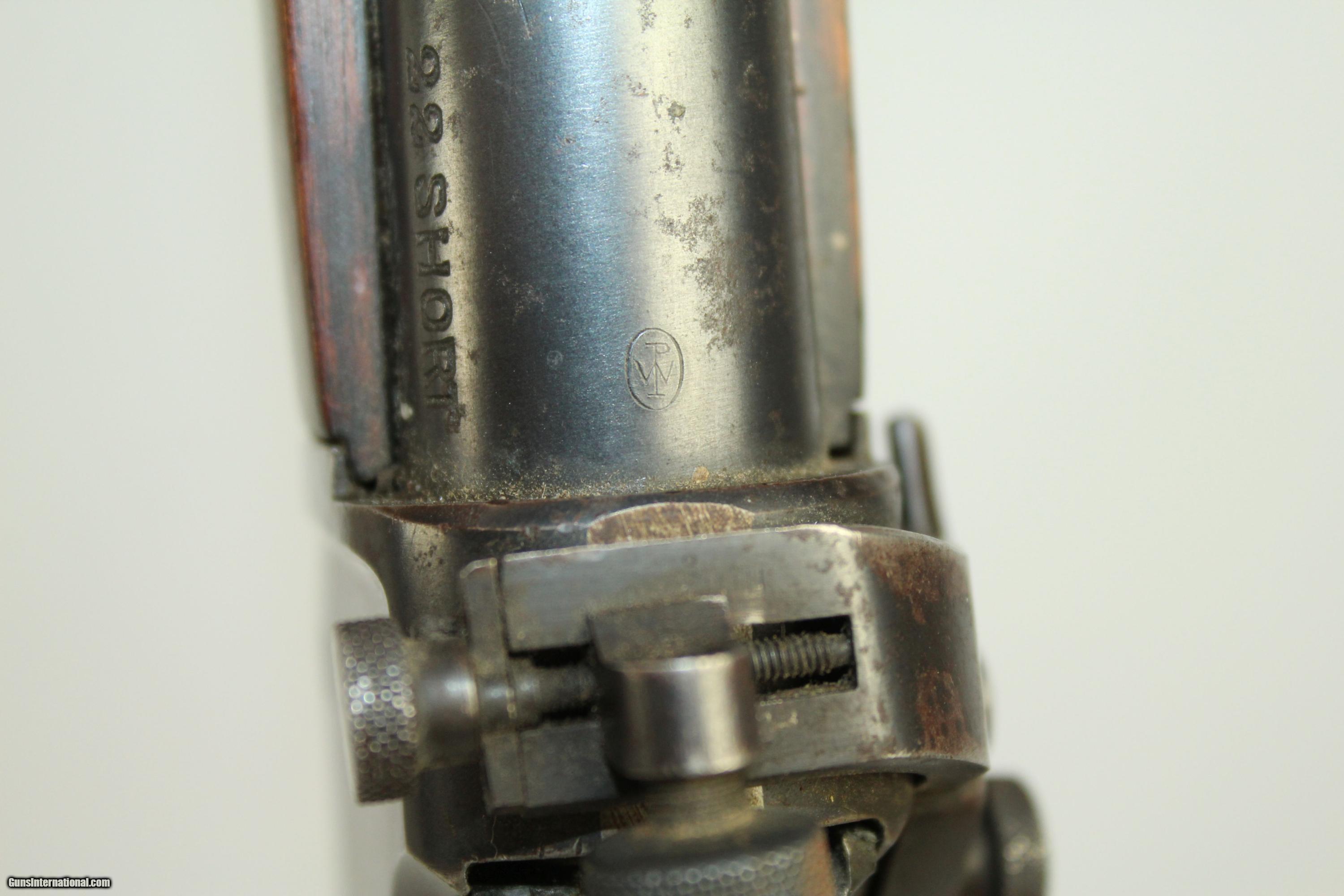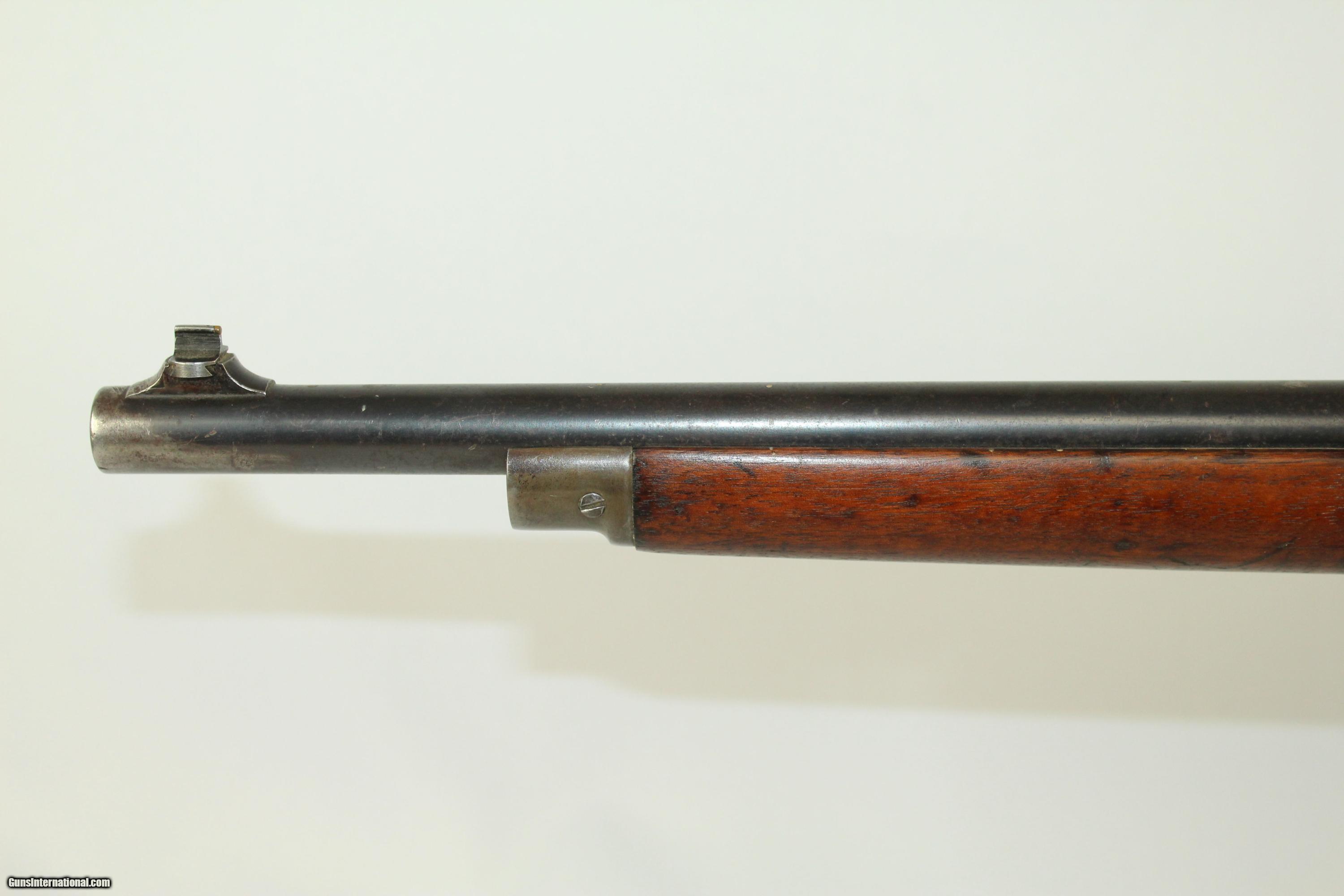 Description: US MARKED Winchester 1885 Low Wall WINDER Musket Scarce Example w US Ordnance Flaming Bomb Marks Here we present a Winchester 1885 Low Wall “Winder” Musket, chambered in .22 Rimfire Short, made circa 1918 in New Haven, Connecticut. Ironically, this was Winchester’s first single shot rifle, the company having been founded on its winning lever action repeater design. John Moses Browning, the famed gun designer who forever changed the firearms landscape, began his career with this rifle in the 19th Century before dominating the world scene in the 20th Century. This example is one variant known as the “Winder Musket”, which was heavily influenced by Colonel C. B. Winder for use as a training rifle for troops. The idea was that it be a full-sized rifle chambered in .22 Rimfire Short so that the trainee get the weight and feel of a rifle of heavier caliber and the recoil and thrift of .22 Rimfire. This rifle was one of only about 11,000 to be purchased by the U.S. Ordnance Department from 1918-1919. It was replaced shortly by bolt action .22s, as the bolt action was the action of the day. The rifle features a nice bull barrel, sling swivels, and a receiver mounted peep sight. The Ordnance Department’s “US/Flaming Bomb” is marked behind the hammer on the frame. The frame tang is marked “TRADE MARK/WINCHESTER/REG.US.PAT.OFF&FGN.” The barrel is marked “MANUFACTURED BY THE WINCHESTER REPEATING ARMS CO/NEW HAVEN CONN. U.S.A. PATENTED OCTOBER 17 1879”. The left side of the breech end of the barrel is marked “.22 SHORT”. The overall condition of this scarce training rifle is fine. About 85% of the original blue finish remains. Markings are clear and legible. The walnut stock is very nice. The bore is clearly rifled and shiny. The action is strong. This firearm is classified as a Curio & Relic. Compare to $2500 elsewhere! Barrel is 28 inches in length. Caliber: .22 Short Overall condition as seen in photos. Very Fast. Very Safe. FREE SHIPPING. Will need to be sent to your local FFL. Guaranteed AUTHENTIC & Includes CERTIFICATE OF AUTHENTICITY. ancestryguns $1700 #10436 SOLD Curio/Relic: Yes |
