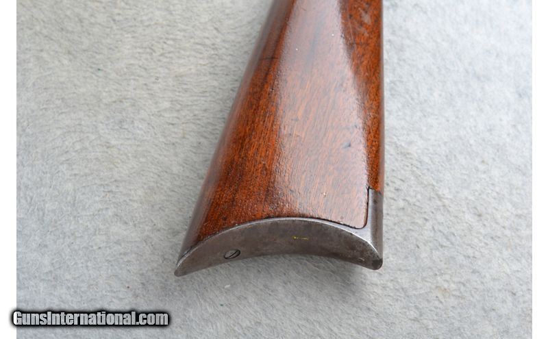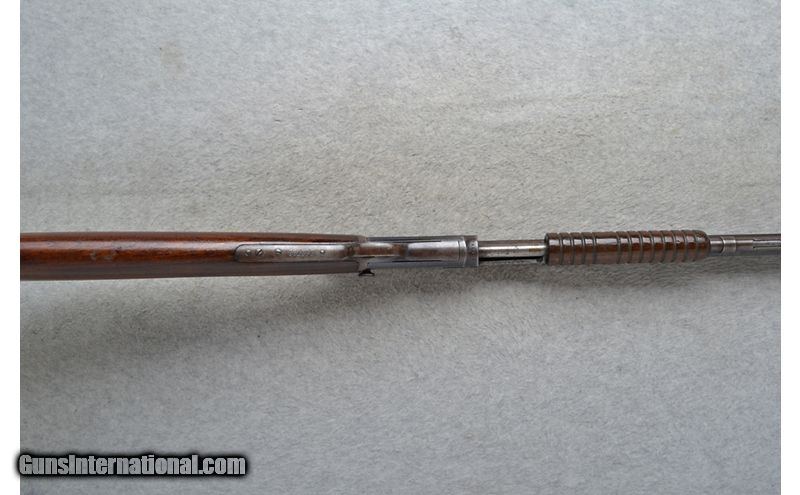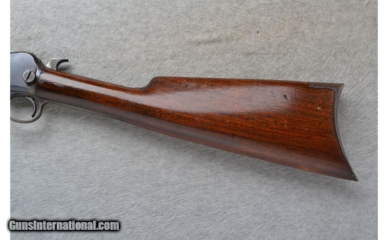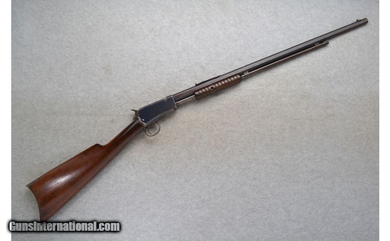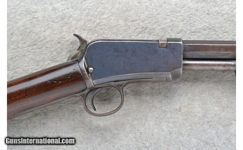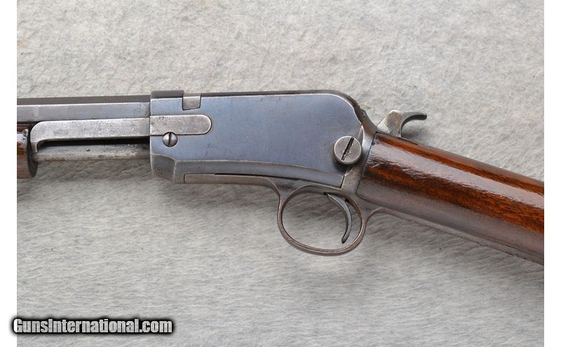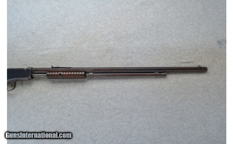 Description: This Winchester Model 1890 is a pump action repeating rifle in .22 Short Cal. It has a 24 inch octagon barrel. A blade front sight and notch middle sight. The butt stock is a smooth grip walnut straight grip. The forearm is a ribbed grip walnut. Serial Number 348799 (1908). .22 Short SOLD Curio/Relic: Yes Chambers: 12 round tube magazine. Metal Condition: "Fair. Blue wear, handling marks and freckling. Wood Condition: Good. Handling marks. Appears refinished. Bore Condition: Light pitting. Barrels: 24 inch octagon. Stock Dimensions: LOP 12 3/4 inches. Fore End: Ribbed grip walnut. Butt Pad: Steel crescent. Weight: 5 lb. 12 oz. Sights: Blade front. Notch middle. Item Location: Richfield, WI |