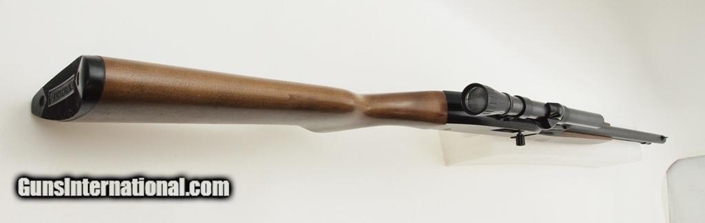 Description: Winchester 190, .22 LR, 20" bbl, shiny bore, good rifling, blued finish, Weaver Markman 4X scope, smooth wood stock has light handling marks, and black Winchester butt plate. This rifle is in good condition. Sold AS-IS only. Add 3% for Credit Card Shipping $30.00 SOLD |