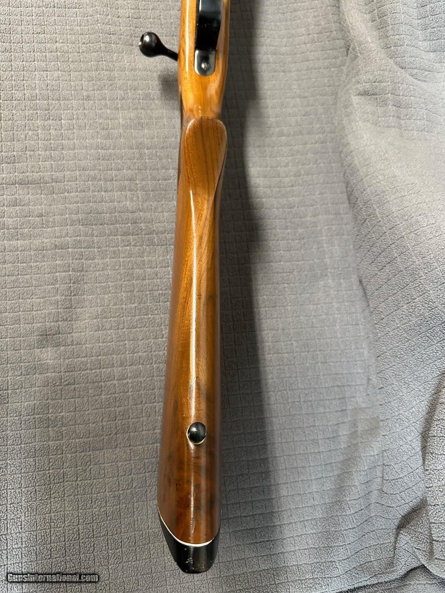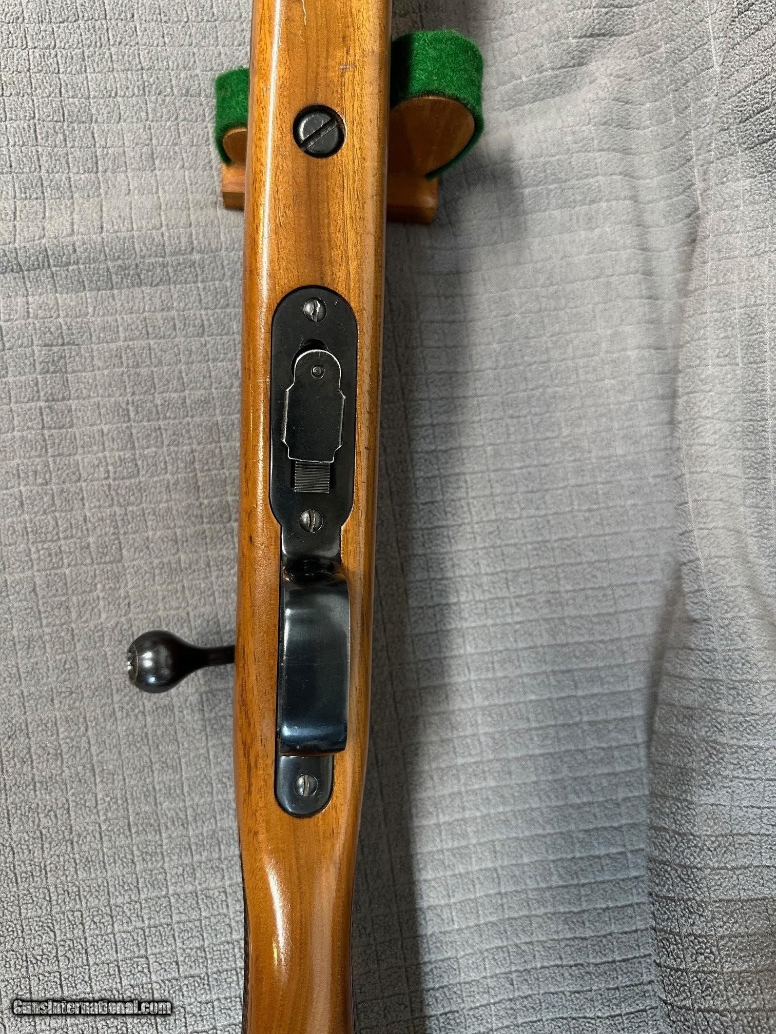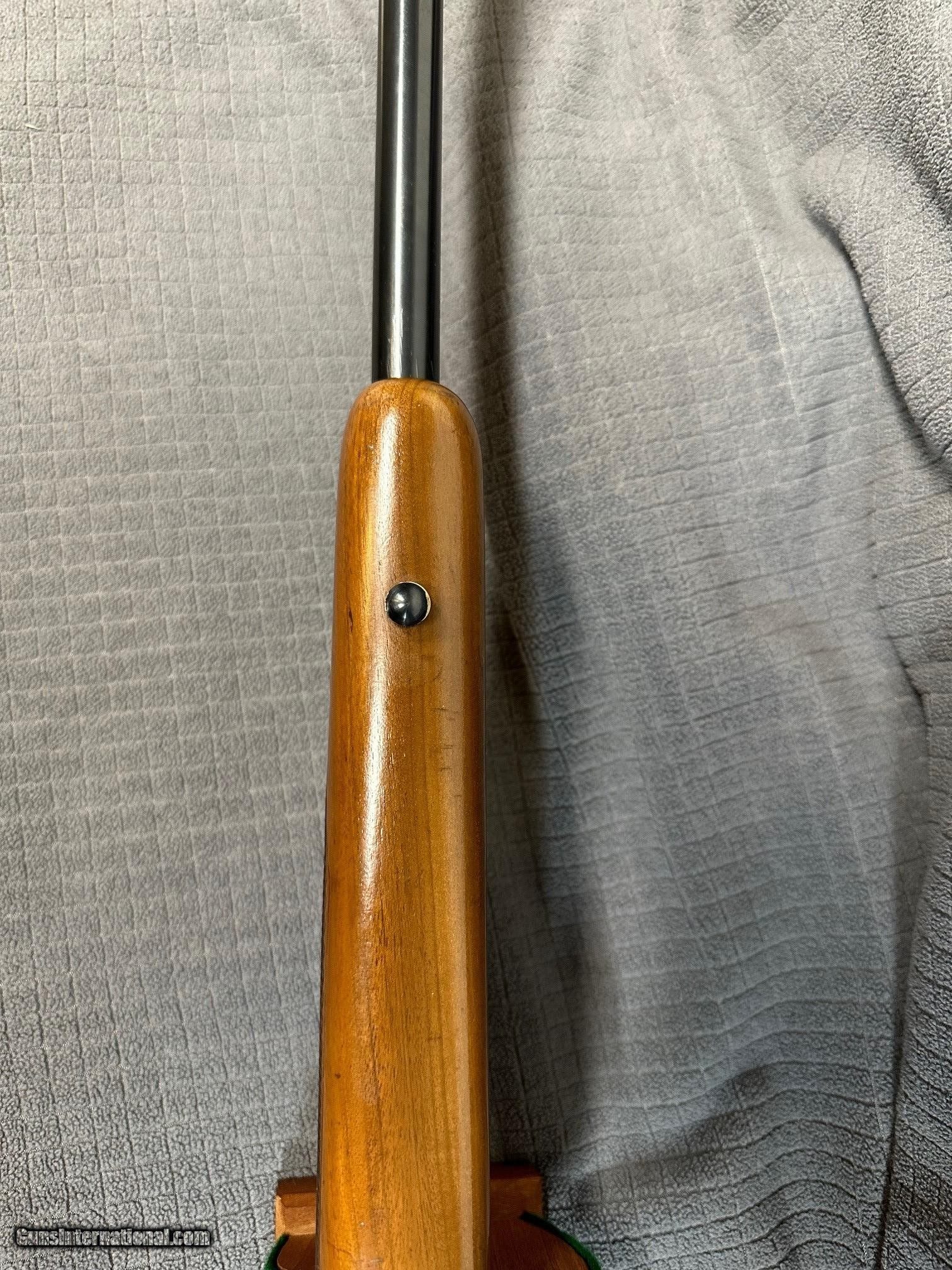 Description: NICE CLEAN Model 320 Winchester 22LR. Mfg from '72-'74 only. These are a quality rifle and shoot well. Winchester had the barreled actions made in Australia, then stocked and finished them in New Haven. 5-shot magazine( 10's were also made). 22" barrel with sights. Bore is excellent. Grooved receiver. Blue 98%. Wood 95%+. A few minor handling marks. This one has had sling swivel studs added and the barrel bedded in stock. $50.00 Shipping & Insurance to your FFL(lower 48) Thanks for looking. SOLD |