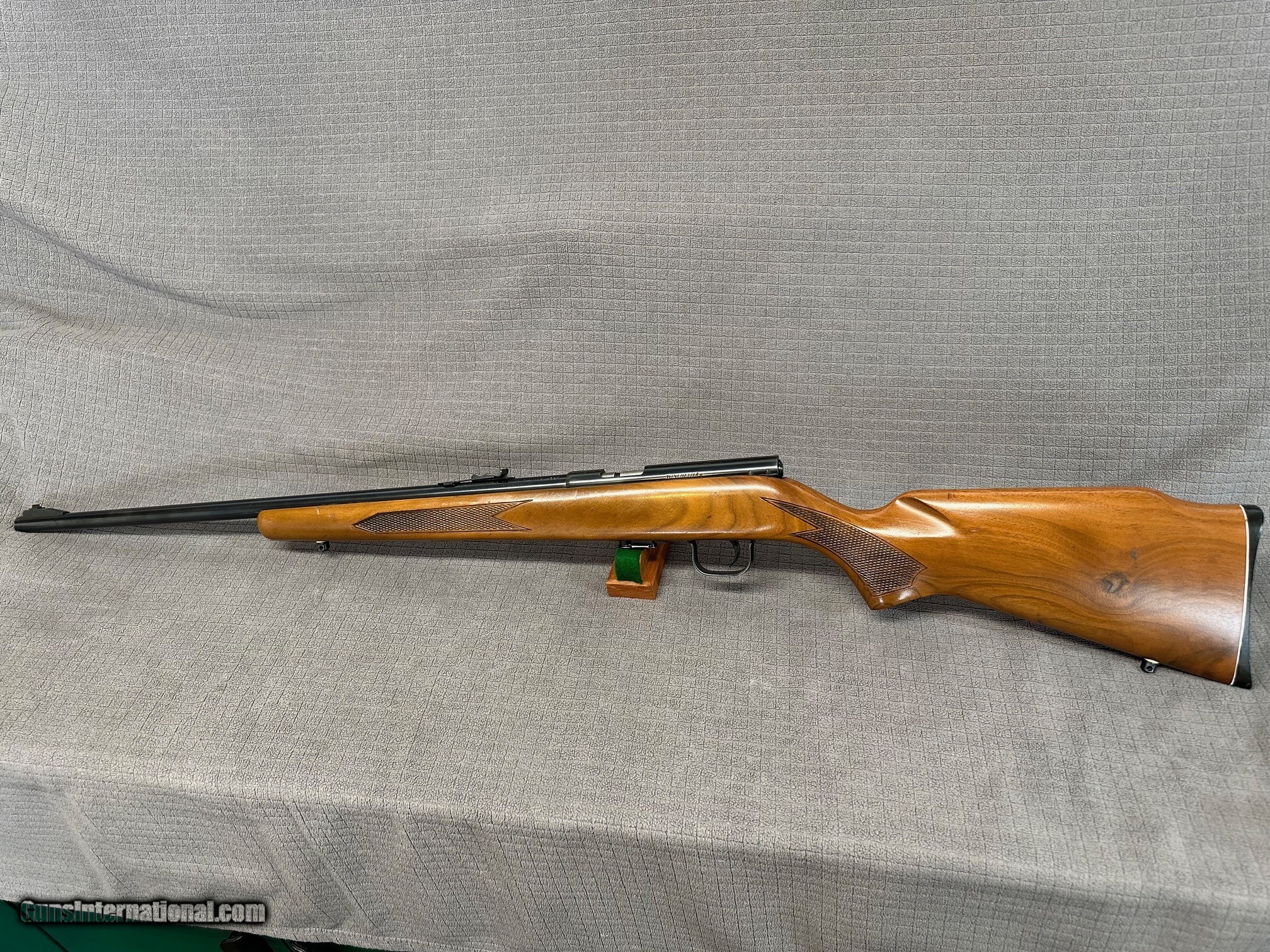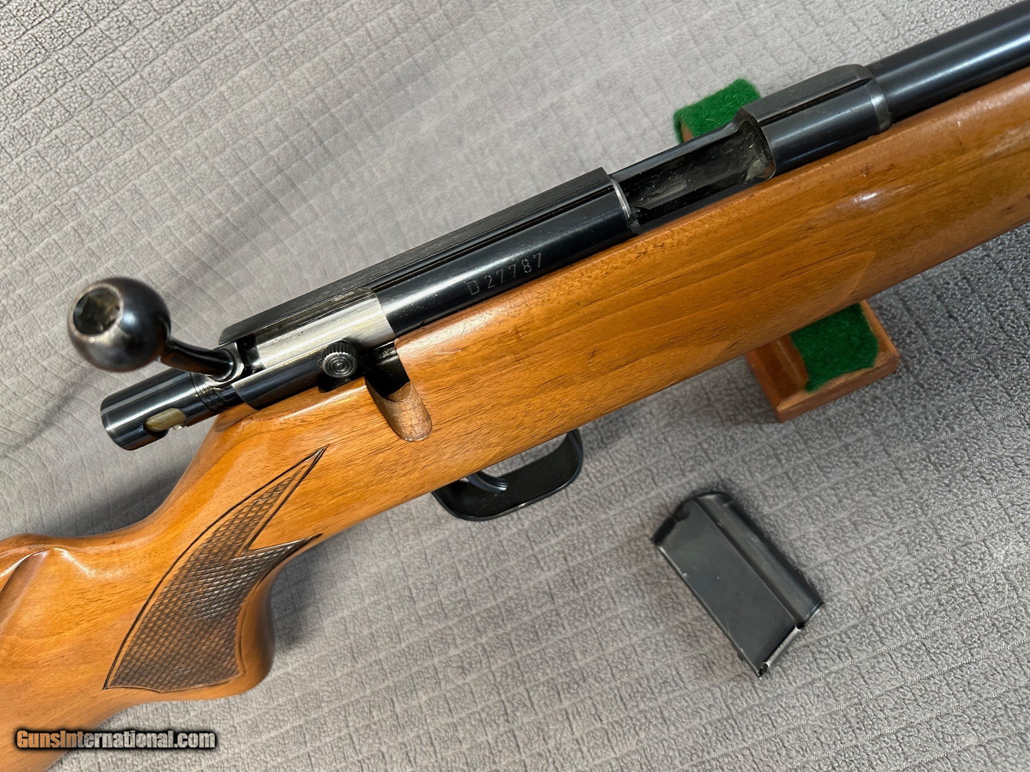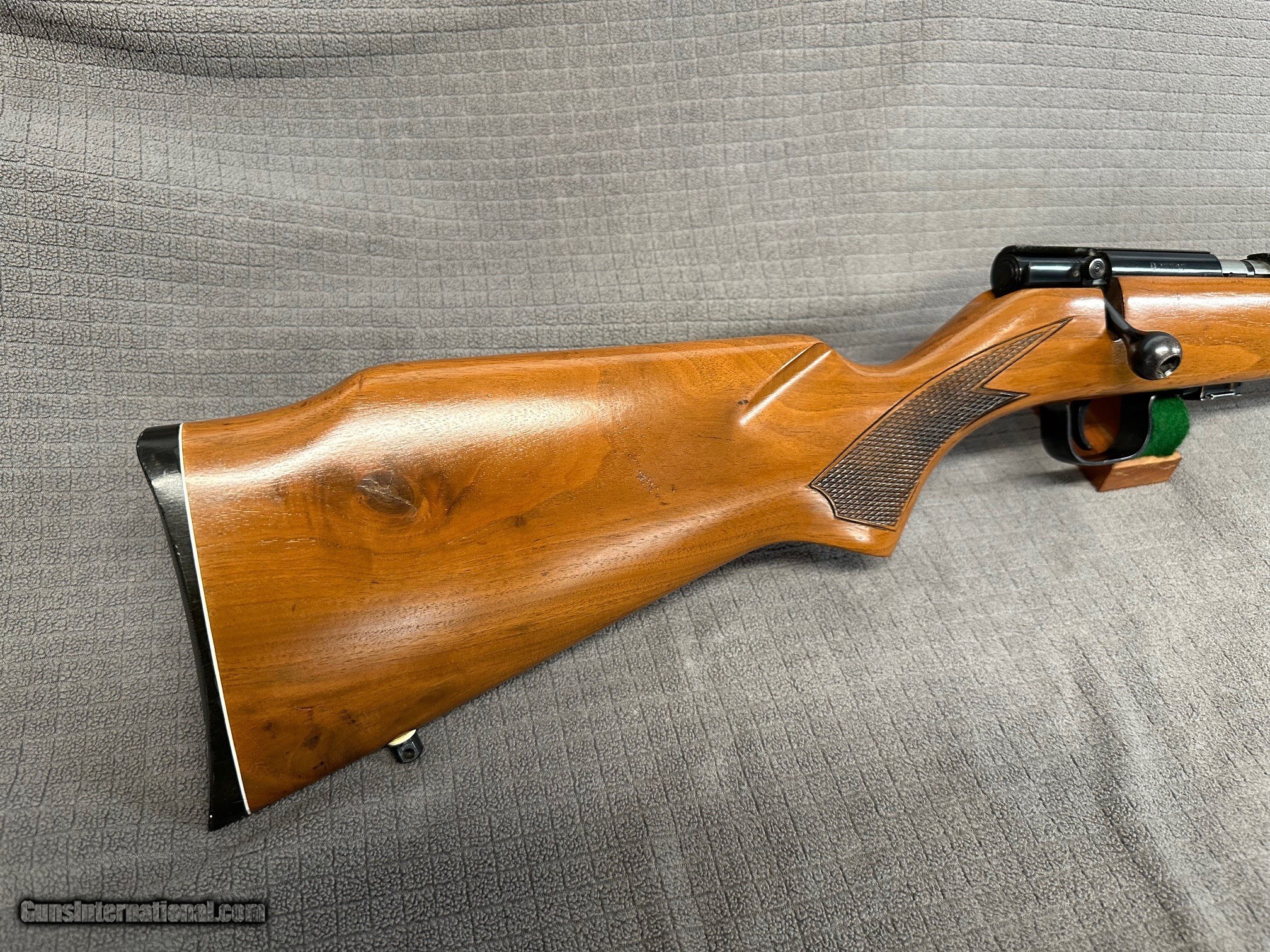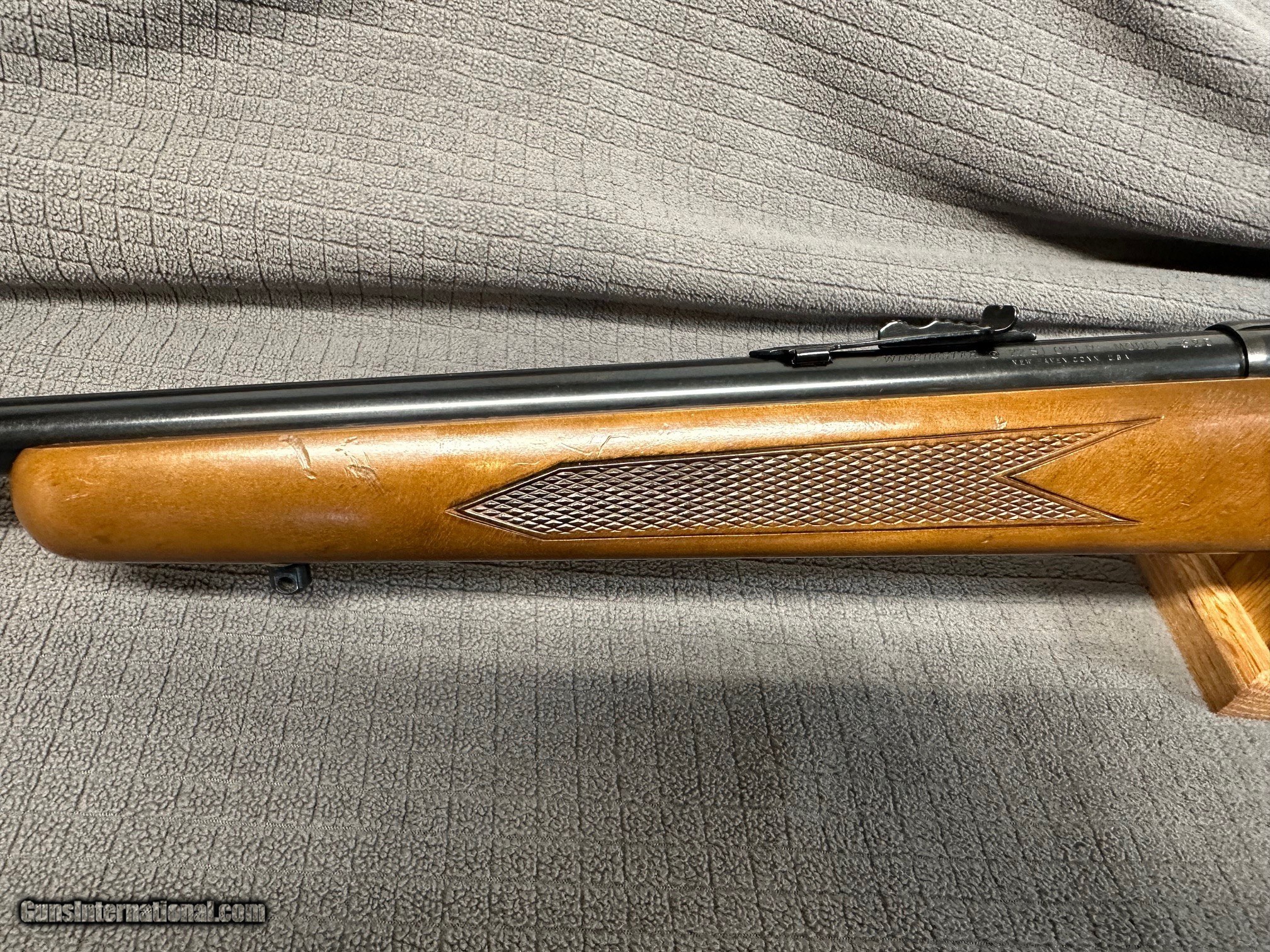 Description: NICE CLEAN Model 320 Winchester 22LR. Mfg from '72-'74 only. These are a quality rifle and shoot well. Winchester had the barreled actions made in Australia, then stocked and finished them in New Haven. 5-shot magazine( 10's were also made). 22" barrel with sights. Bore is excellent. Grooved receiver. Blue 98%. Wood 95%+. A few minor handling marks. This one has had sling swivel studs added and the barrel bedded in stock. $50.00 Shipping & Insurance to your FFL(lower 48) Thanks for looking. SOLD |