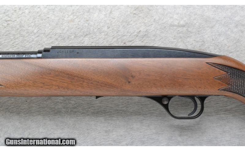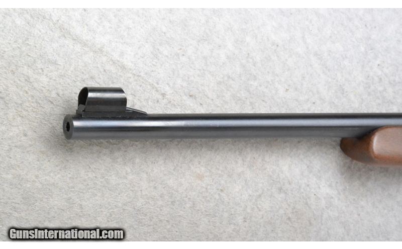 Description: This Winchester Model 490 is a right hand semi-auto rifle in .22 Long Rifle Cal. Only. It has a 22 inch barrel. A hooded front blade sight and a folding adjustable notch middle sight. It is dovetailed. The butt stock is a checkered grip walnut pistol grip with a steel cap. The forearm is a checkered grip walnut. Comes in its original box. .22 Long Rifle SOLD Chambers: 7 round magazine. Metal Condition: Excellent. Wood Condition: Excellent. Bore Condition: Excellent. Barrels: 22 inch. Stock Dimensions: LOP 13 1/2 inches. Fore End: Checkered grip walnut. Butt Pad: Winchester checkered black plate. Weight: 6 lb. 14 oz. Sights: Hooded front blade. Folding adjustable notch middle. Dovetailed. Item Location: Richfield, WI |