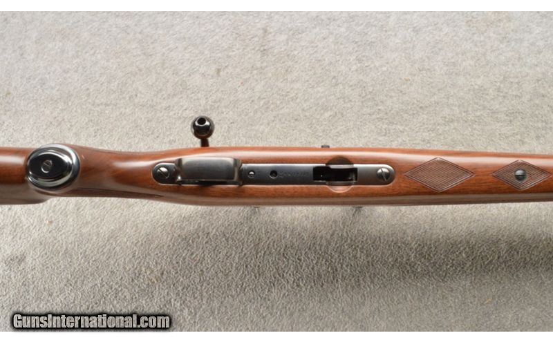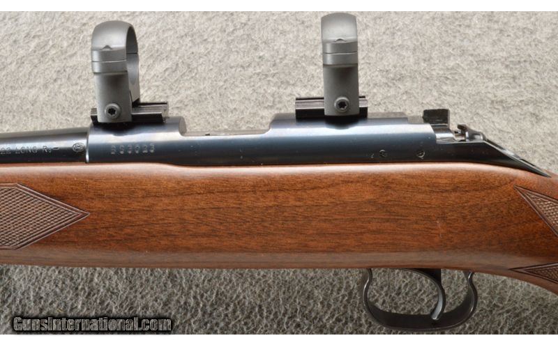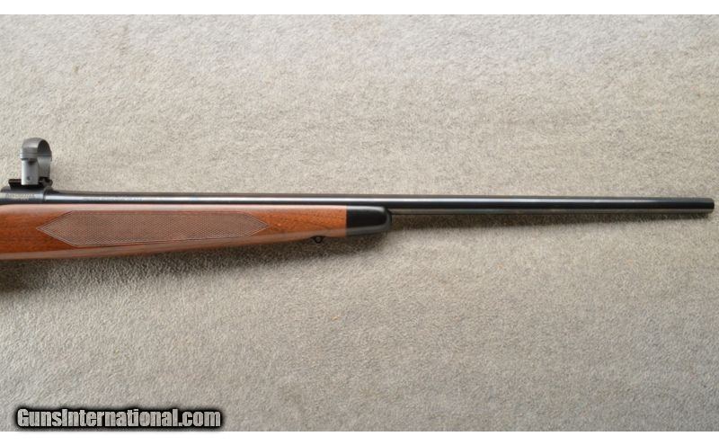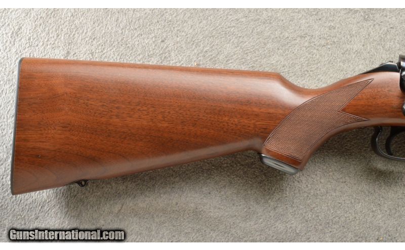 Description: This is an as new looking Winchester 52 Sporter .22 Long Rifle SOLD Chambers: Bolt action repeater. Metal Condition: As new looking. Wood Condition: Like new. Bore Condition: Bright and shiny. Barrels: 24 inch gloss blue. Triggers: Adjustable single trigger. Stock Dimensions: 13 1/2 inch LOP. Fore End: Very nice checkered walnut with a black tip and super grade sling mounts. Butt Pad: Steel with checkering and the Winchester Logo. Weight: 7 lbs. 7 oz. Sights: Comes with scope bases and rings. Item Location: Owatonna, MN |