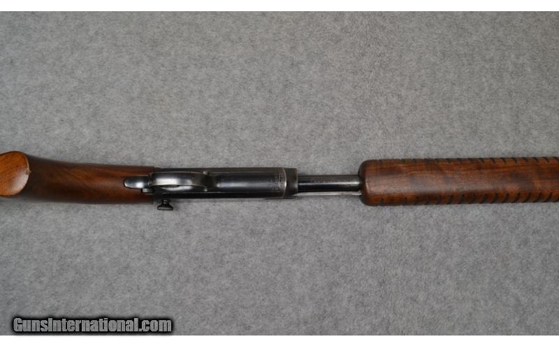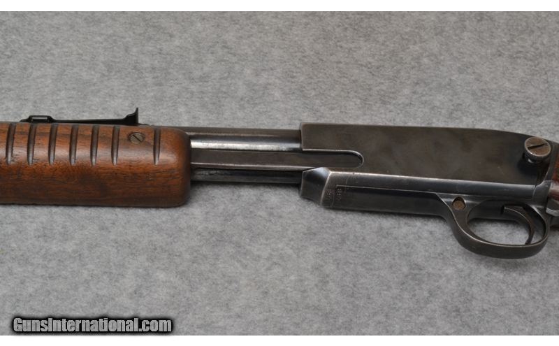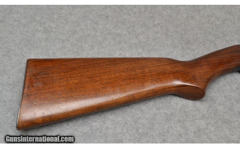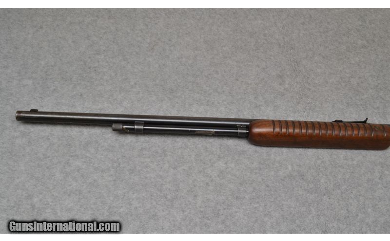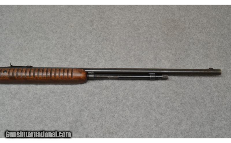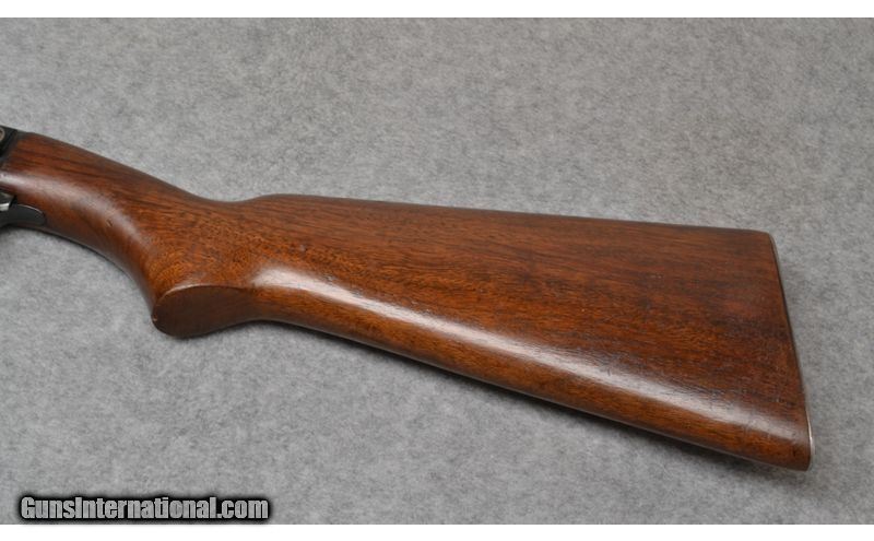 Description: Nice post war rifle made in 1950 with round barrel and metal butt. .22 Long Rifle SOLD Curio/Relic: Yes Metal Condition: Wear consistent with age Wood Condition: No cracks Barrels: 24" round with sights Triggers: Single trigger, pump action Stock Dimensions: 13 3/8" LOP Fore End: Grooved walnut Butt Pad: Metal Weight: 6 Sights: Blade front, adjustable rear Item Location: Columbus, OH |