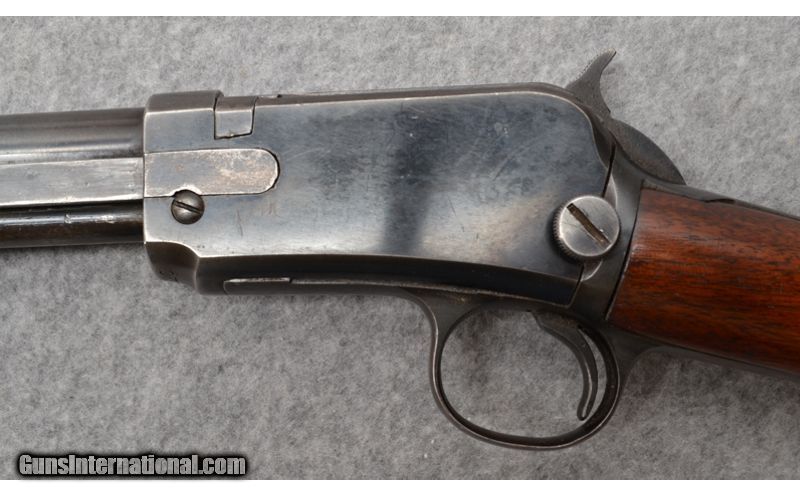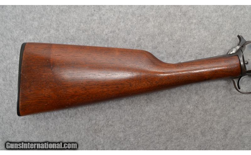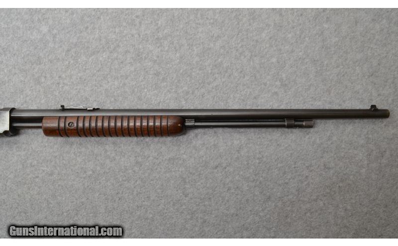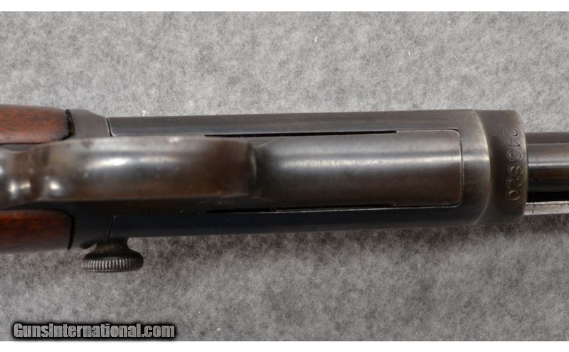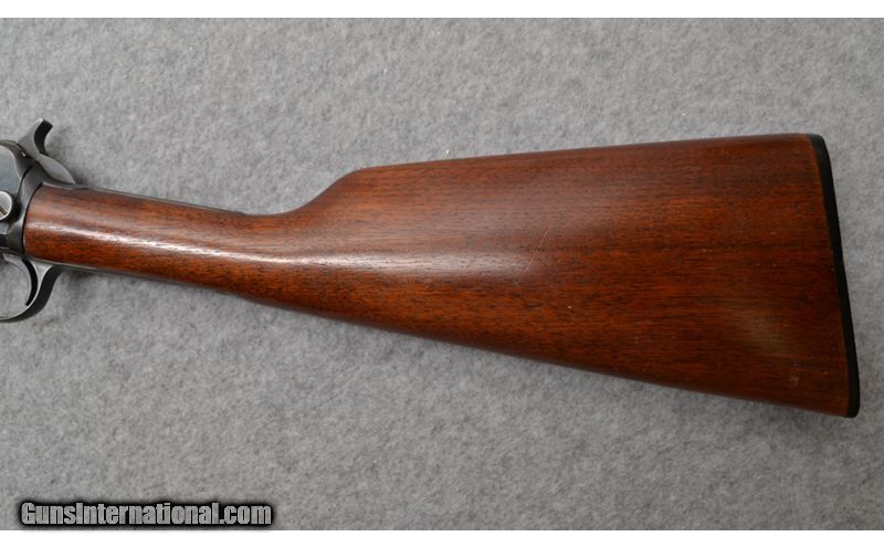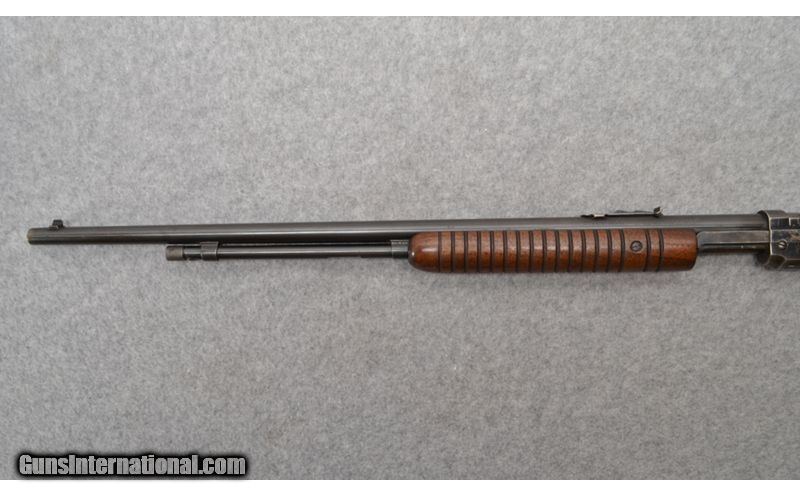 Description: Winchester model 62A .22 Short, Long, or Long Rifle, 23 inch round barrel, with rear sight adjustable for elevation and fixed blade front sight. The bore is bright with strong rifling. Action shows some blue wear on the bottom of action and along the edges with some light scratches on the left hand side. The barrel shows some blue thinning near the muzzle along with some light patina and discoloration. Straight hand stock shows some light dings, dents and scratches. A few by the toe of stock are through the finish. The fore end shows a few light handling marks, though none are through the finish. .22 Short/Long/Long Rifle SOLD Metal Condition: Action shows some blue wear on the bottom of action and along the edges along with some light scratches on the left hand side. The barrel shows some blue thinning near the muzzle, along with some light patina and discoloration. Wood Condition: Straight hand stock shows some light dings, dents and scratches. A few by the toe of stock are through the finish. The fore end shows a few light handling marks, though none are through the finish. Barrels: 23 inch round barrel. Triggers: Blued smooth trigger. Stock Dimensions: 13 3/8 inch LOP Fore End: Walnut grooved fore end. Butt Pad: Factory black plastic butt plate. Sights: Rear sight adjustable for elevation with fixed front blade. Item Location: Mitchell, SD |