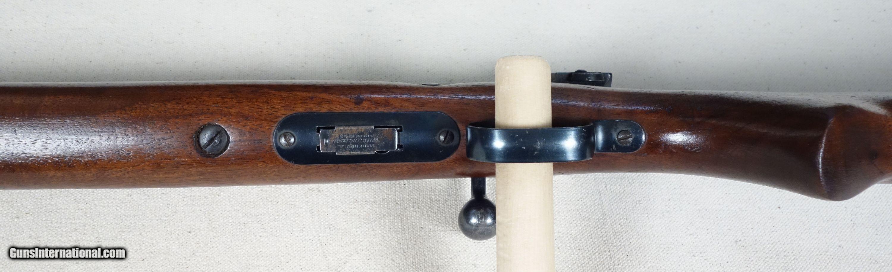 Description: Winchester 69A MATCH grade .22 LR with 25" barrel and factory original 5 shot magazine. There were no serial numbers issued to any of this model. Genuine 69A match grades such as this are exceedingly difficult to find. This one has all of the correct features and unique caliber stamp as follows: Shark fin front sight, no rear sight dovetail milled in barrel, Lyman 57EW receiver sight, 1 1/4" sling swivels, and most importantly the barrel is stamped "22 L. RIFLE" which was a unique marking reserved for true match grades only. There is also a non factory inscription electro penciled on barrel (C.S.G.203) reportedly identifying it as the former property of Connecticut State Guard. Overall codition is about 90% with all original finishes. Mechanical function is perfect and the bore is excellent. A super scarce substyle of one of Winchester's most outstanding and favored model .22 rifles. Please click on the top blue "see all listings" tab for more exceptional vintage collector arms to be added daily. SOLD Curio/Relic: Yes |