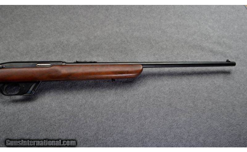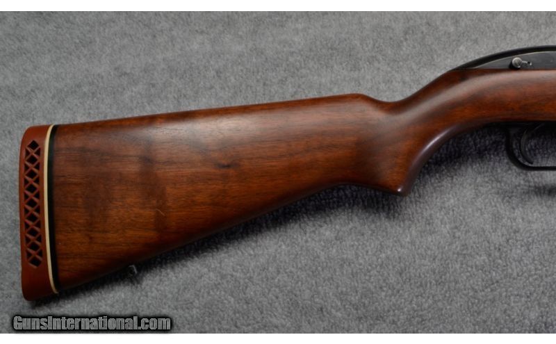 Description: SOLD Curio/Relic: Yes Manufacturer: 1955-1963 Caliber Info: .22 Long Metal Condition: Good. Some bluing wear, small handling marks. Wood Condition: Very good for age and use. Barrels: 22 inch Triggers: Smooth Stock: Hardwood with rubbed finish Stock Dimensions: 14 inch LOP Butt Pad: Vented rubber pad Weight: 5.90 pounds Sights: Leaf and post Item Location: Springfield, OR |