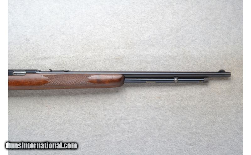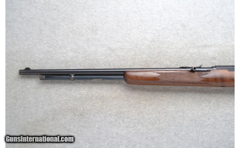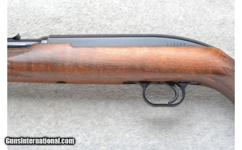 Description: This Winchester Model 77 is a right hand semi-automatic rifle in .22 Long Rifle Cal. It has a 22 inch barrel. A blade front sight. Notch middle sight. Dovetail grooved for a scope mount. The stock is a checkered grip walnut pistol grip butt and forearm. SOLD Caliber Info: .22 Long Rifle Chambers: Semi-Auto 10 round magazine. Metal Condition: Good. Light wear and handling marks. Wood Condition: Very good. Minor handling marks. Bore Condition: Very good. Barrels: 22 inch blued barrel. Stock: Checkered walnut pistol grip. Stock Dimensions: LOP 13 1/4 inches. Fore End: Checkered grip walnut. Butt Pad: Winchester checkered black plate. Weight: 5 lbs. 13 oz. Sights: Blade front. Notch middle. Dovetail grooved. Item Location: Richfield, WI |
