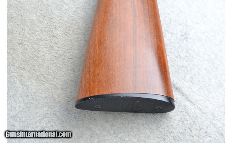 Description: This Winchester Model 9422M XTR is a right hand lever action repeating rifle in .22 Magnum Cal. It has a 20 inch barrel with a full barrel length tube magazine. The butt stock is a checkered grip walnut straight grip. The forearm is a checkered grip walnut with a barrel band. It has a grooved trigger and serrated hammer spur. The 9422M is a highly sought after rifle and known for its accuracy. .22 WMR SOLD Chambers: Lever Action 10 round tube magazine. Metal Condition: Excellent. A little minor receiver freckling. Wood Condition: Excellent with a few minor handling marks. Bore Condition: Excellent. Barrels: 20 inch. Triggers: Grooved. Stock Dimensions: LOP 13 5/8 inches. Fore End: Checkered grip walnut. Butt Pad: Winchester checkered black plate. Weight: 6 lb. 0 oz. Sights: Hooded front blade. Adjustable notch middle. Dove tailed. Item Location: Richfield, WI |