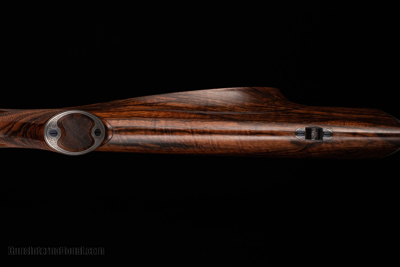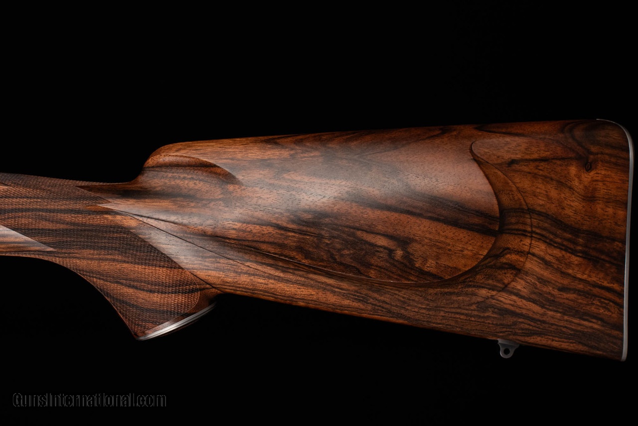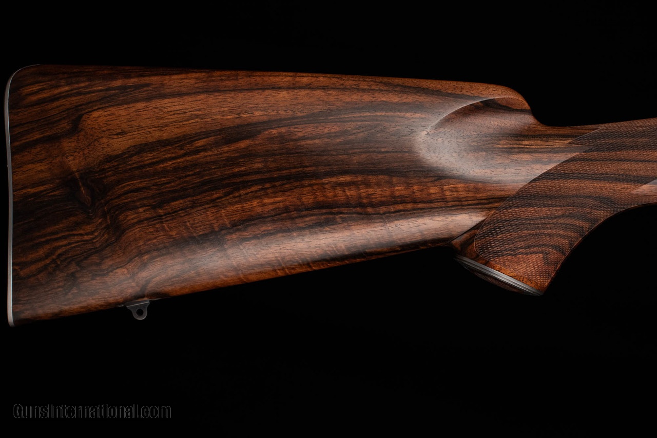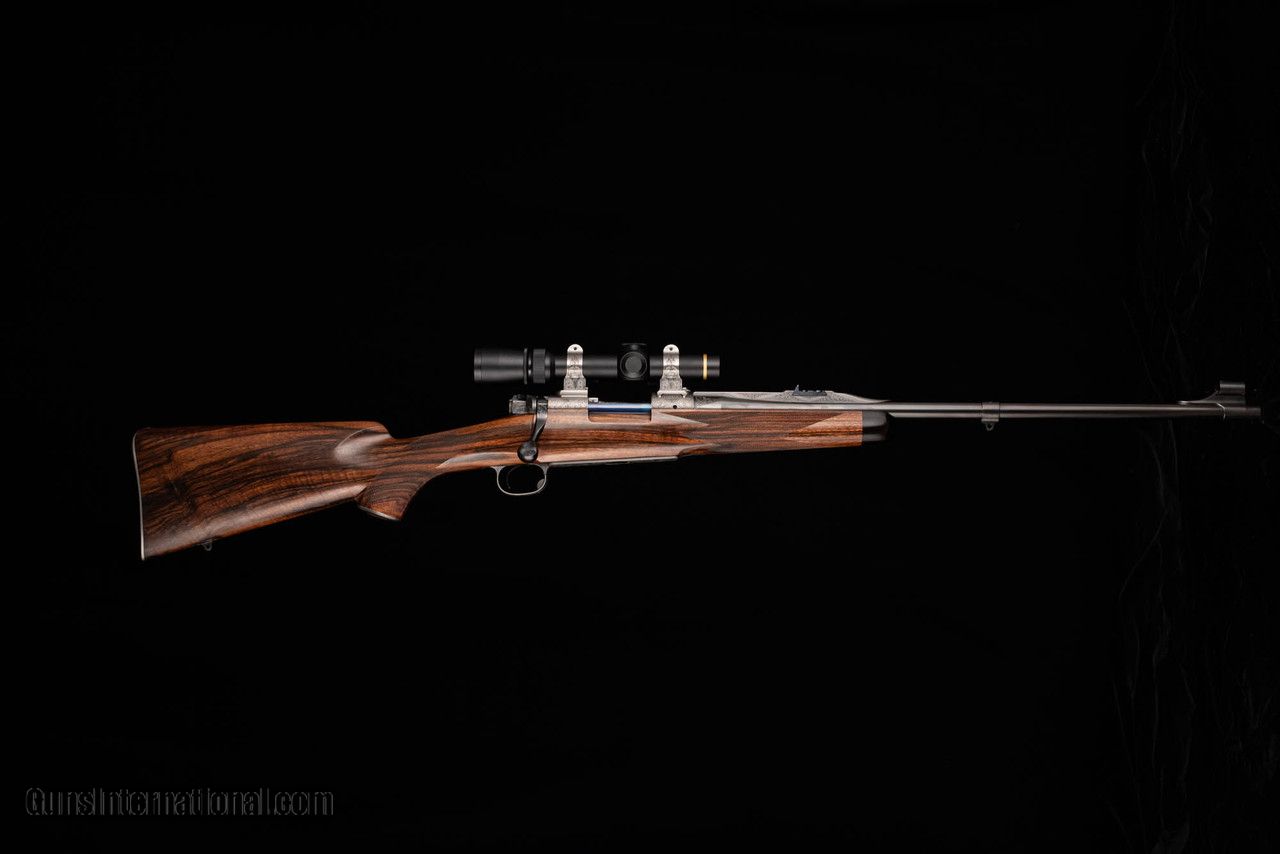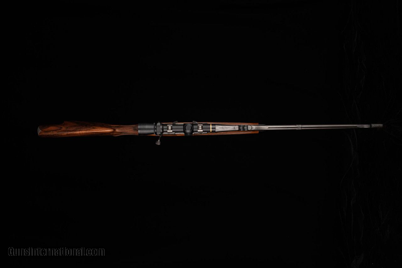 Description: Gordy and Sons is proud to offer what may be one of the finest .22 bolt action rifles ever assembled. This Custom gun started life as a pre '64 Model 70 Winchester, and was worked on by 4 legends of the U.S. custom gun world. Heppler, Heilmann, and Mazur all had their parts in the fit and finish of this exquisite piece. Richard Boucher did a wonderful job engraving the gun tastefully that is capped off with a gold Duiker inlaid into the bottom of the receiver. The skeletonized butt plate and grip cap top off a beautifully done stock. The rifle has leaf sights and a Leupold Vari-X 3, 1.5-5x scope on guick-detach mounts. Overall, it is just a gorgeous example of what an American Guild Gun can be. SOLD Manufacturer: Winchester Caliber Info: 22 Cal. R.F. Barrels: 22 Action: Bolt-Action Triggers: Single Gauge Info: 22 Cal. R.F. LOP: 14 1/4 Weight: 8.14 |