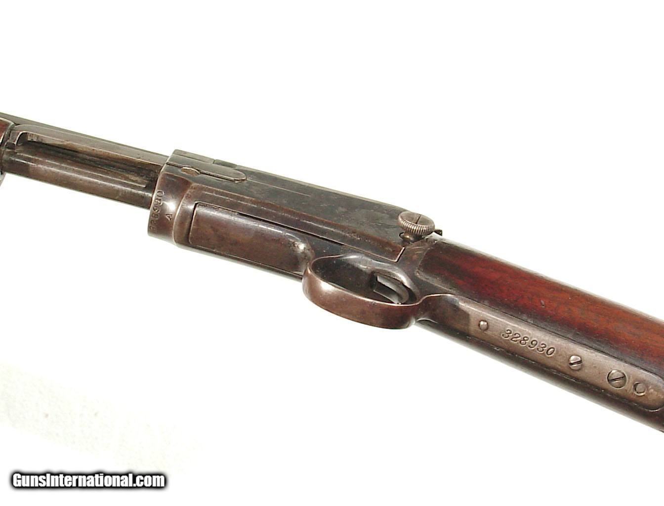 Description: .22 short rimfire, 24" full octagon barrel with the magazine located underneath. Pump action with external hammer and factory take-down feature. Ribbed walnut forend and straight grip buttstock ending with a factory buttplate. Retaining considerable original blue with some minor highlighting on the high edges of the barrel and frame. Good bore. Very fine wood with some light handling marks. MFG. 1908 SOLD Curio/Relic: Yes |