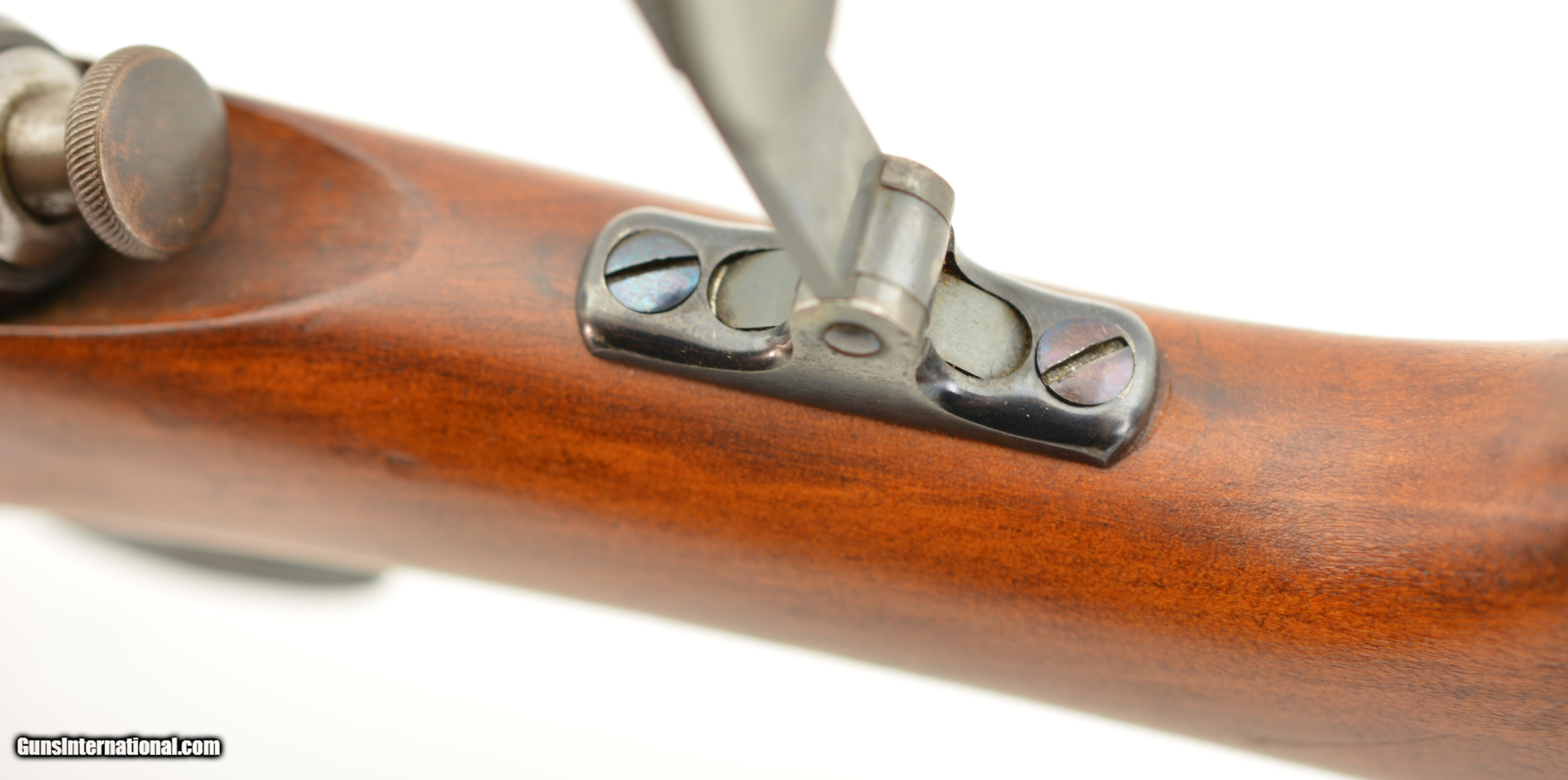 Description: NSN, .22 Short and Long, 18" barrel with an excellent, bright bore. This is a neat little rifle that has traces of original blue remaining on the barrel and integral receiver, and the balance turned to a mellow plum-brown patina, with a spot of dark brown freckling on the underside of the barrel just ahead of the forend. The bolt has the original bright finish remaining, with some mild brown freckling on the cocking-piece. The gumwood stock is in very good shape, with small handling marks scattered about the surface, and there is a period flip-up tang sight installed on the wrist. This is a very nice example of a desirable Winchester boys’ rifle, and is in very good-near fine condition. FFL or C&R SOLD Manufacturer: Winchester Model: 1900 Caliber Info: .22 Gauge Info: .22 |