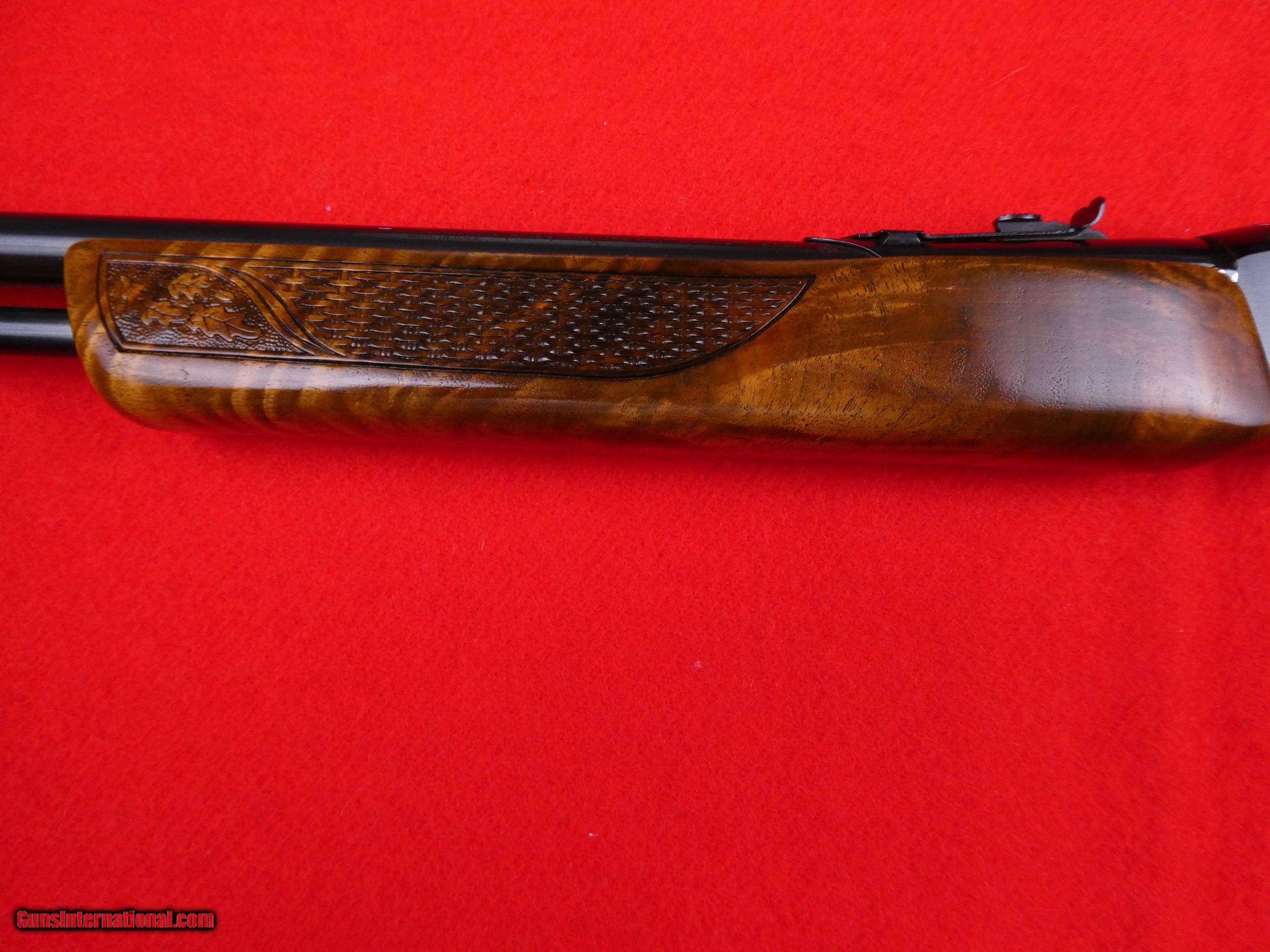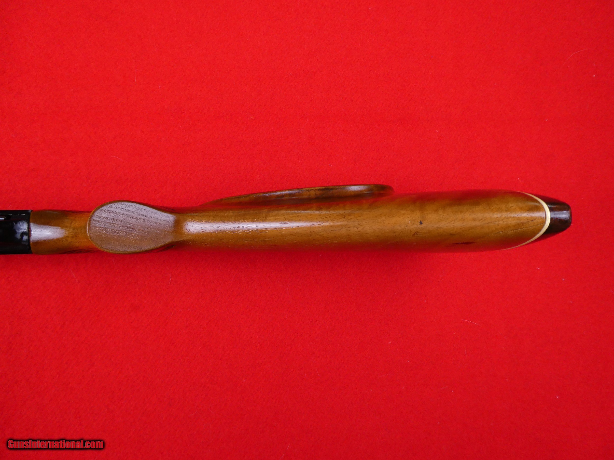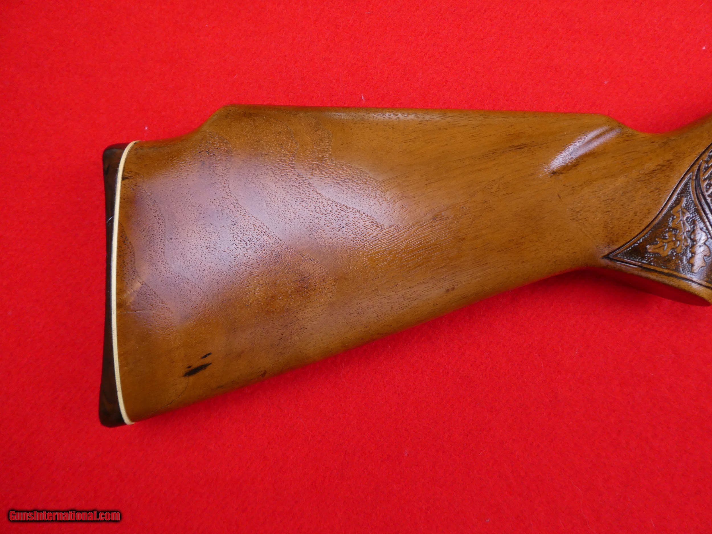 Description: ***SOLD*** Winchester Model 275 Deluxe .22 Magnum pump action rifle, Beautiful select walnut stock with oak leaf & baskit weave pattern, 20 1/2 inch barrel, Grooved receiver, open sights, Tube feed magazine, Mfg. 1963-1973. Very high condition rifle. Layaway Available Personal Property of David Walters SOLD |