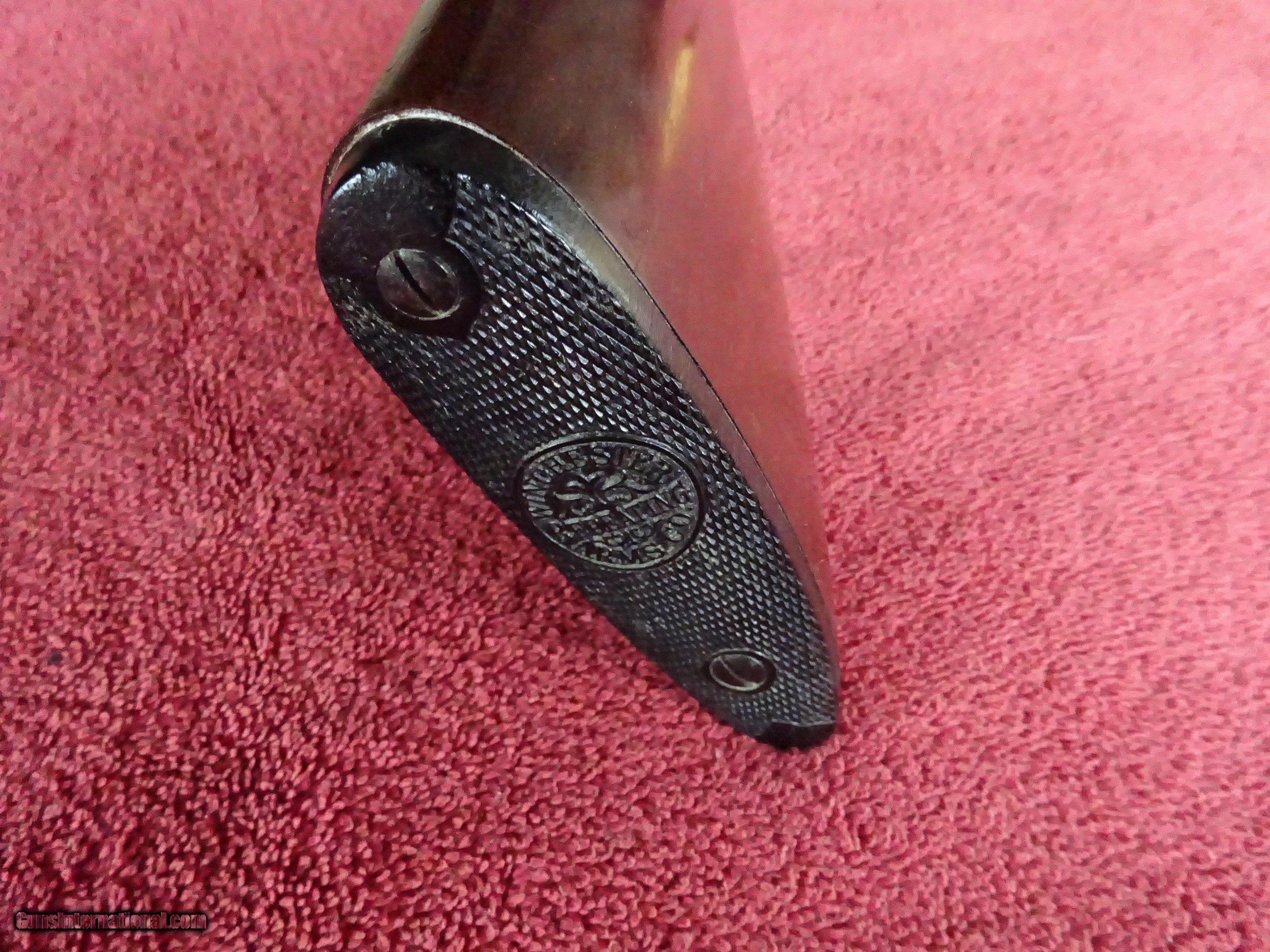 Description: WINCHESTER MODEL 55 SEMI-AUTO SINGLE SHOT RIFLE, 22 S.L.OR L.R. TOP LOADING, BOTTOM EJECTION, 22" BARREL, 100% BRIGHT ORIGINAL BLUE, MIRROR PERFECT BORE. FIXED FRONT SIGHT, STEP ADJUSTABLE REAR SIGHT. SMOOTH ONE-PIECE AMERICAN WALNUT STOCK, EXCELLENT WOOD WITH MINOR HANDLING MARKS IN THE VARNISH. WINCHESTER MARKED CHECKERED BAKELITE BUTTPLATE. INTRODUCED IN 1958, DISCONTINUED IN 1961. INTERESTING, SCARCE GUN. $475.00 + $70.00 Insured shipping to an FFL address. Layaway is available. See all Pats gun listings on this site! We also have hundreds of ORIGINAL gun company advertising & memorabilia pieces available for sale on our site SPORTINGCOLLECTIBLES. We have no reprints or reproductions. Email for more information. If you need to call, morning or evening is best, and please note the Seller's Inventory number. Curio/Relic: Yes Price: $475.00 Shipping: $70.00 Contact Seller |