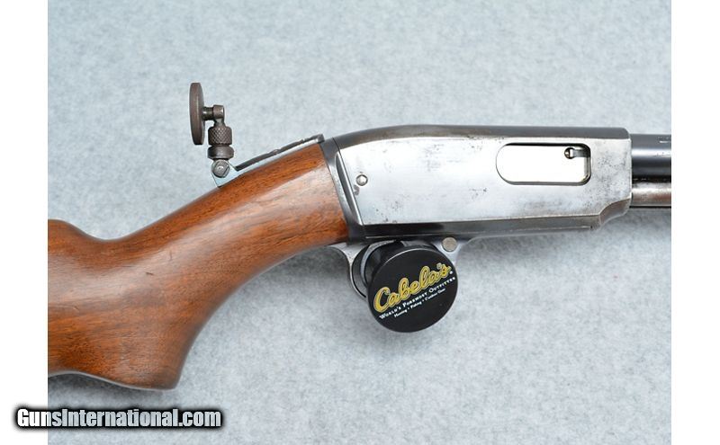 Description: This is a Winchester Model 61 chambered in .22 LR. The rifle can also accept .22 SL. The metal is worn where the pump rubs the magazine tube. There is also wear on the top of the receiver. The wood has various scratches on the stock and forearm. The buttplate is in fair condition, showing average wear for the age of the rifle. This Model 61 also features the peep sight behind the receiver. .22 Long Rifle SOLD Metal Condition: Fair Wood Condition: Fair Bore Condition: Fair Barrels: 24 Inches Butt Pad: Fair Item Location: Hazelwood, MO |