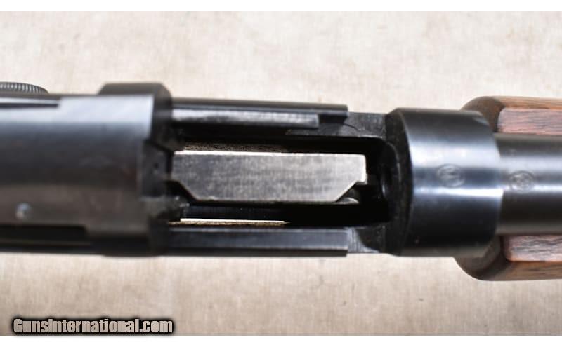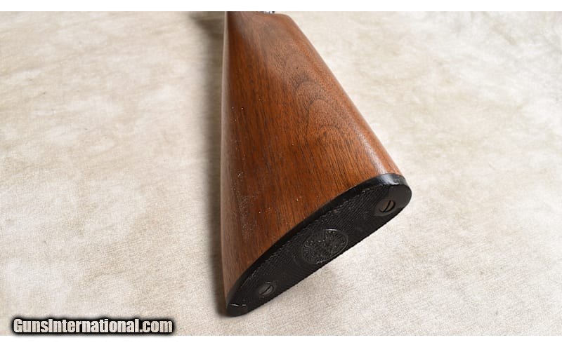 Description: This takedown rifle, manufactured in 1951, appears unfired. It holds up to 22 rounds of .22 Short, Long, and Long Rifle. The box is printed with many usage instructions and outdoor scene, and is in great shape with just a few watermarks. .22 Short/Long/Long Rifle Chambers: 22 rounds Metal Condition: LNIB. Wood Condition: LNIB. Bore Condition: LNIB. Barrels: 23 inches Triggers: Factory trigger Stock Dimensions: LOP: 13 inches Fore End: Matching grooved walnut Butt Pad: Black plate. Sights: Gold bead and notch open sights Item Location: Rogers Price: $4,099.99 Contact Seller |