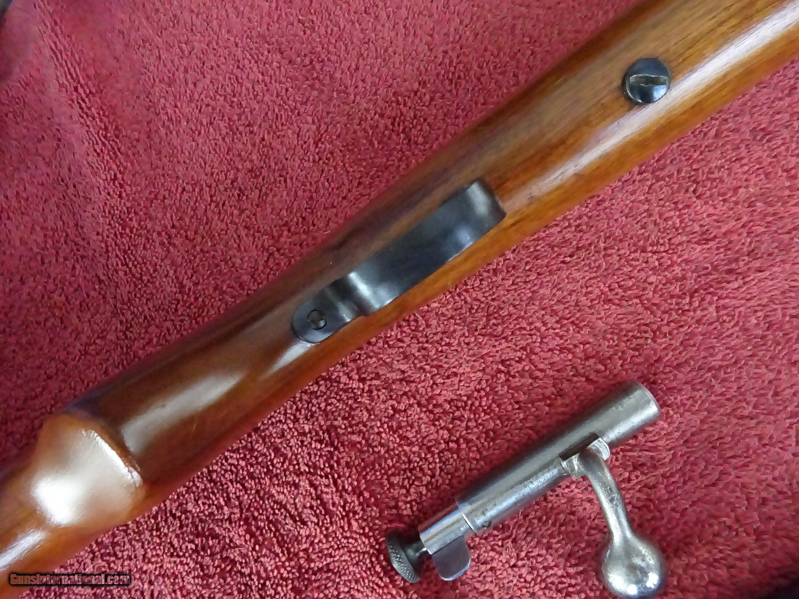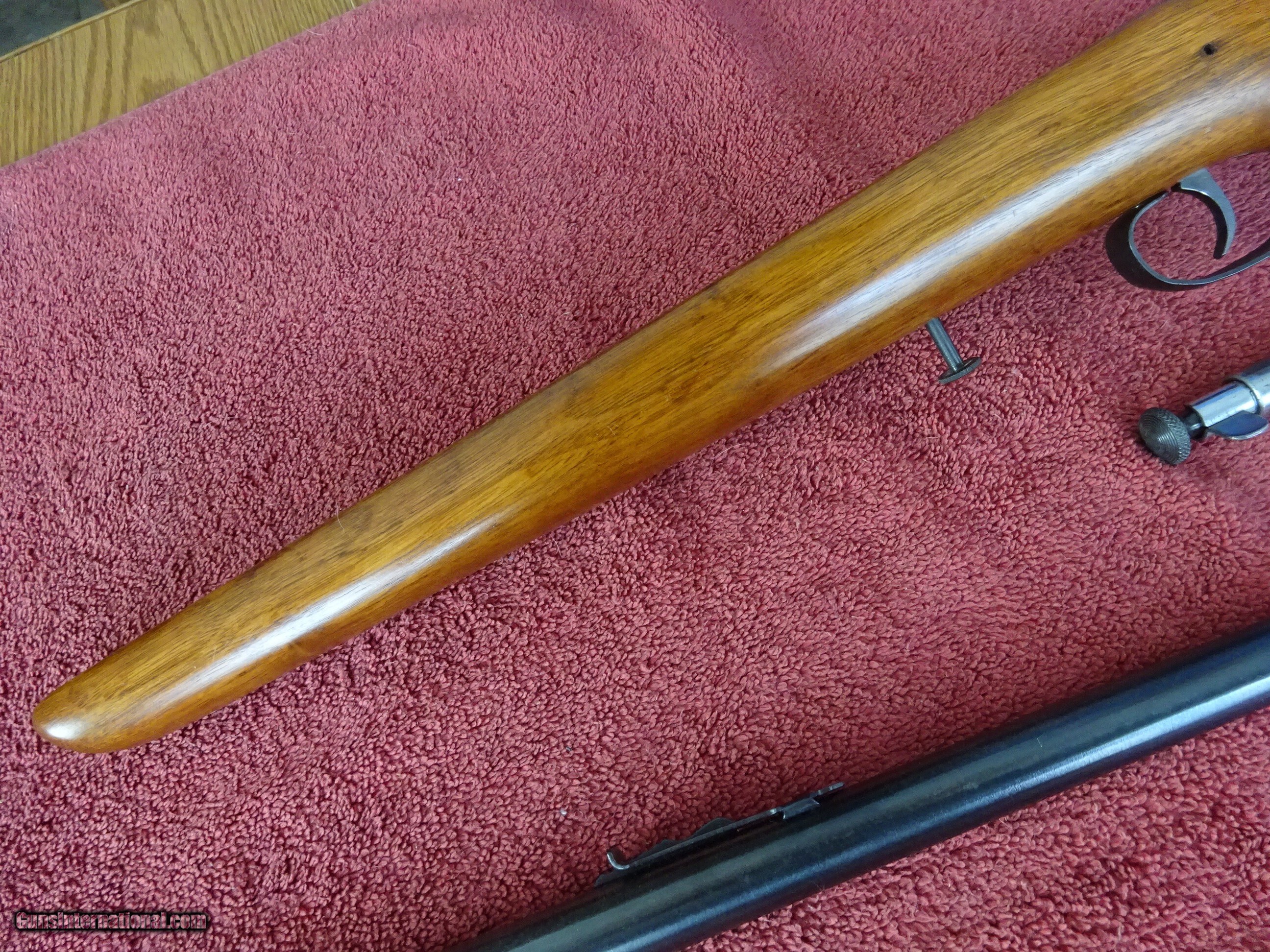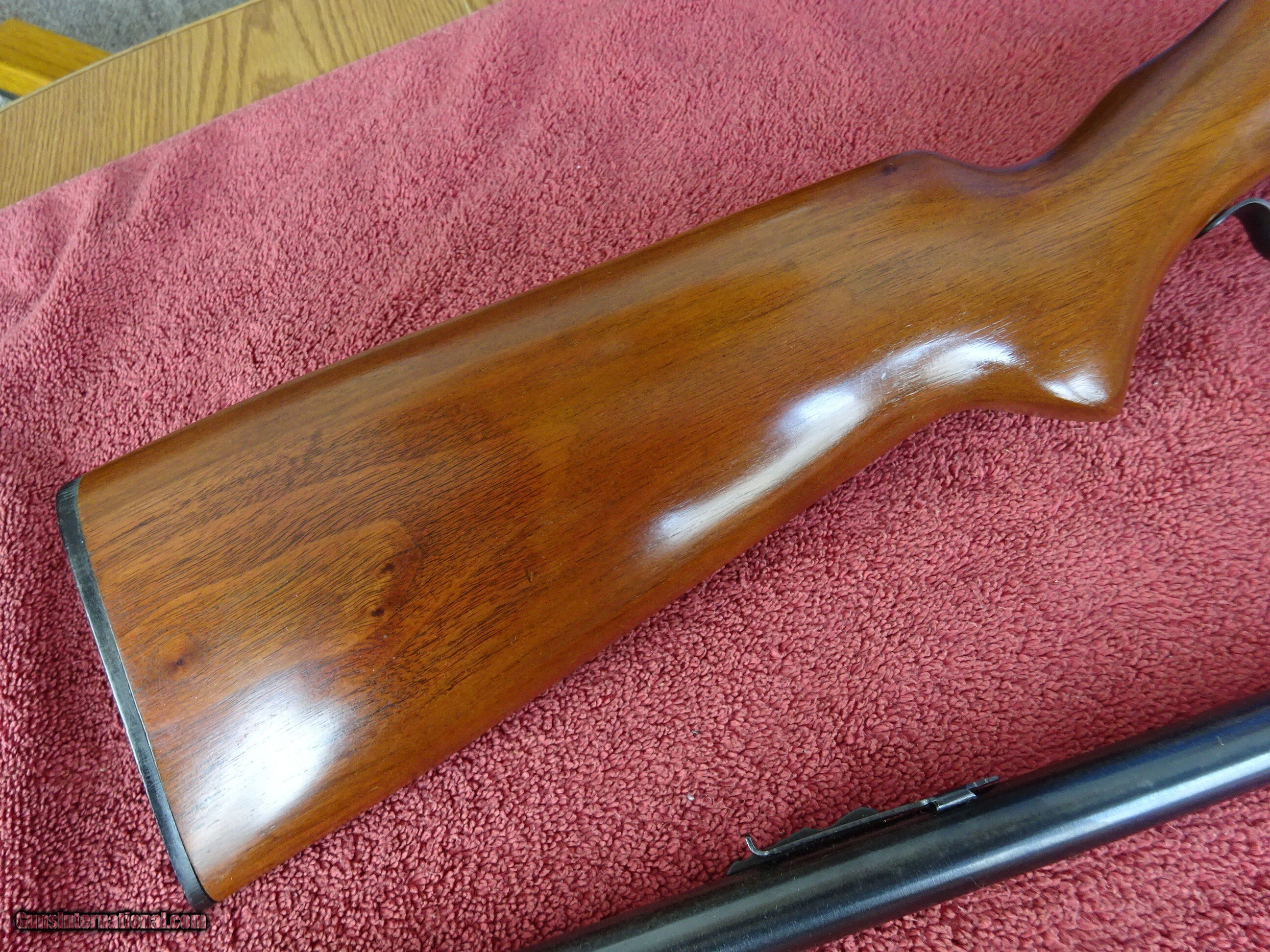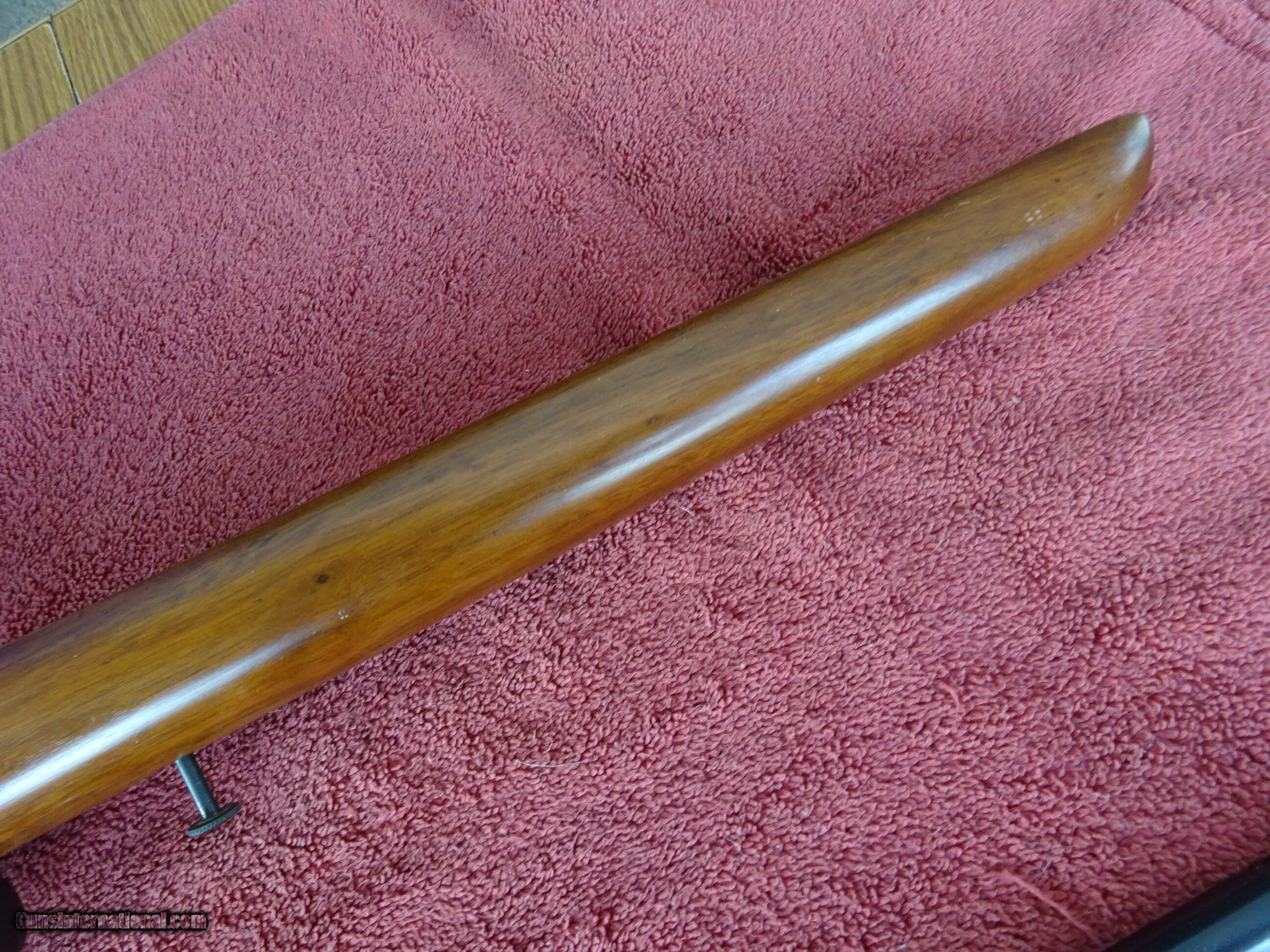 Description: WINCHESTER MODEL 67, SINGLE SHOT BOLT ACTION RIFLE, 22 S. L. OR L.R., 27" BAREL, FIXED FRONT SIGHT, STEP ADJUSTABLE REAR SIGHT. SMOOTH AMERICAN WALNUT PISTOL GRIP STOCK, WINCHESTER MARKED CHECKERED BAKELITE BUTTPLATE. PERFECT UNFIRED ORIGINAL CONDITION, NOT ANY SIGN OF USE. INCLUDES ITS ORIGINAL WINCHESTER PICTURE TWO-PIECE BOX, INSTRUCTION CARD, SEARS & ROEBUCK ORDER FORM AND UNUSED ENVELOPE FROM MEMPHIS TENN. ALL THE CARDBOARD PARTITIONS AND PACKING MATERIAL. EVERYTHING IS IN SUPERB ORIGINAL CONDITION, IMPOSSIBLE TO IMPROVE UPON. THE MODEL 67 WAS INTRODUCED IN 1935 AND DISCONTINUED IN 1963. THIS EXAMPLE WAS PROBABLY MADE LATE 1940s, EARLY 1950s. $1575.00 + $70.00 Insured shipping to an FFL address. Layaway is available. See all Pats gun listings on this site! We also have hundreds of ORIGINAL gun company advertising & memorabilia pieces available for sale on our site SPORTINGCOLLECTIBLES. We have no reprints or reproductions. Email for more information. If you need to call, morning or evening is best, and please note the Seller's Inventory number. Curio/Relic: Yes Price: $1,575.00 Shipping: $70.00 Contact Seller |