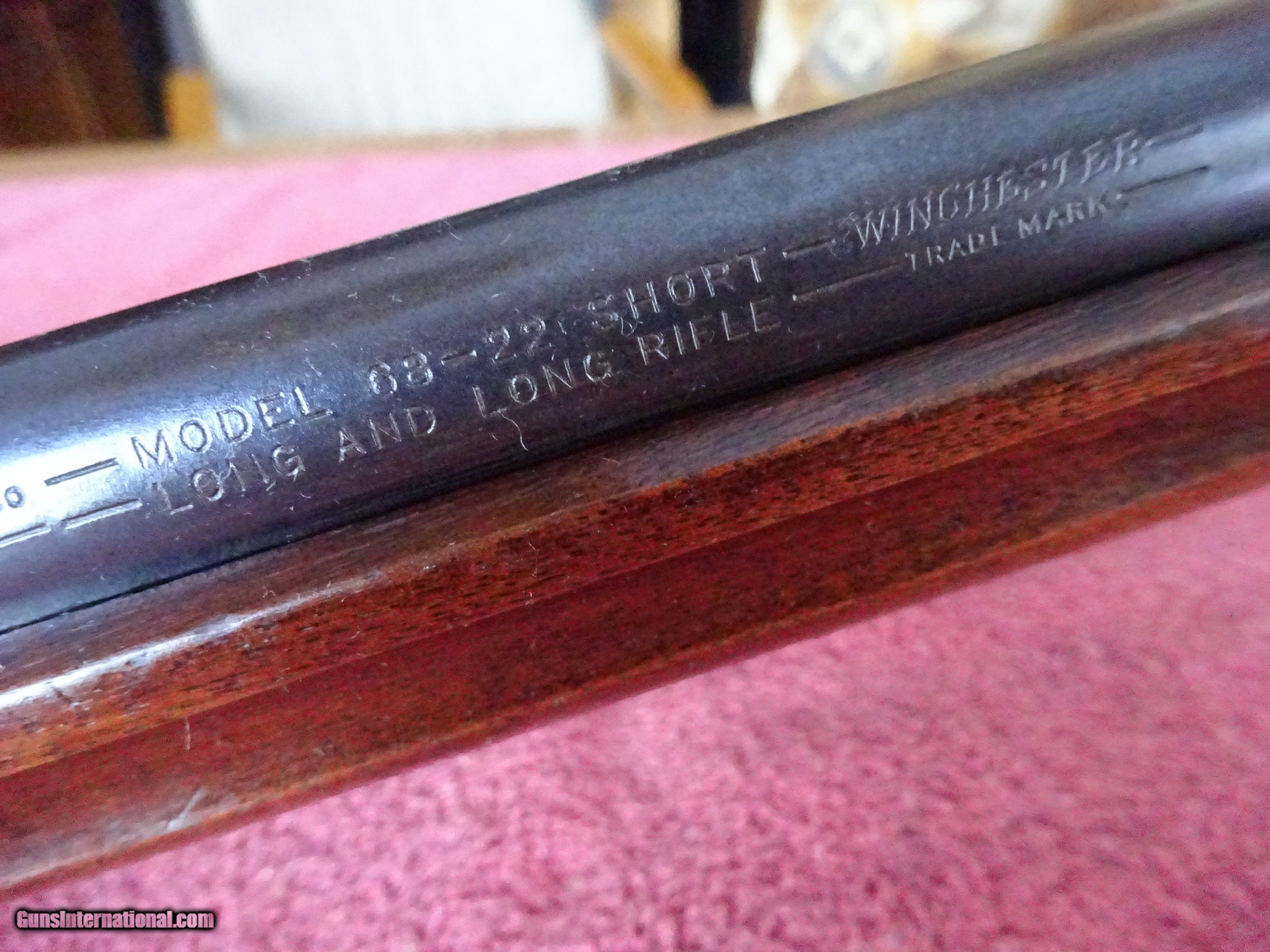 Description: WINCHESTER MODEL 68, .22 SHORT, LONG OR LONG RIFLE. 27" BARREL, VERY GOOD BLUE, MIRROR-BRIGHT BORE, RAMP HOODED FRONT SIGHT STAMPED US PATENT 1989863. APERTURE SIGHT MARKED USA PAT. 2014736. WALNUT PISTOL GRIP STOCK WITH GROOVED FOREND. VERY GOOD WOOD AND VARNISH, PERFECT WINCHESTER MARKED BUTTPLATE, 100% ORIGINAL CONDITION. MADE 1934-1946. $525.00 + $70.00 Insured shipping to an FFL address. See all Pats gun listings on this site! We also have hundreds of pieces of ORIGINAL gun company advertising & memorabilia available for sale on our site SPORTINGCOLLECTIBLES. We have no reprints or reproductions. Email for more information. SOLD Curio/Relic: Yes |