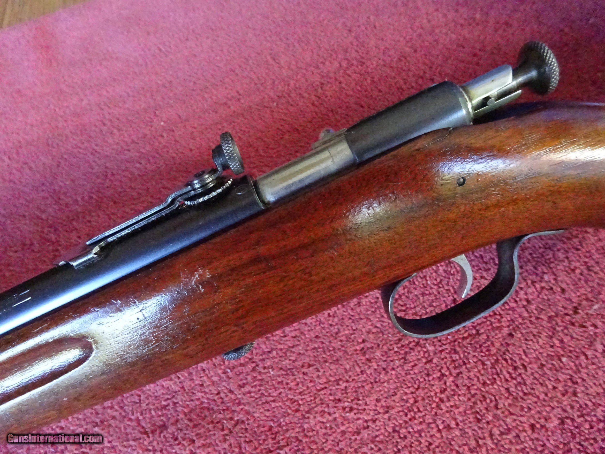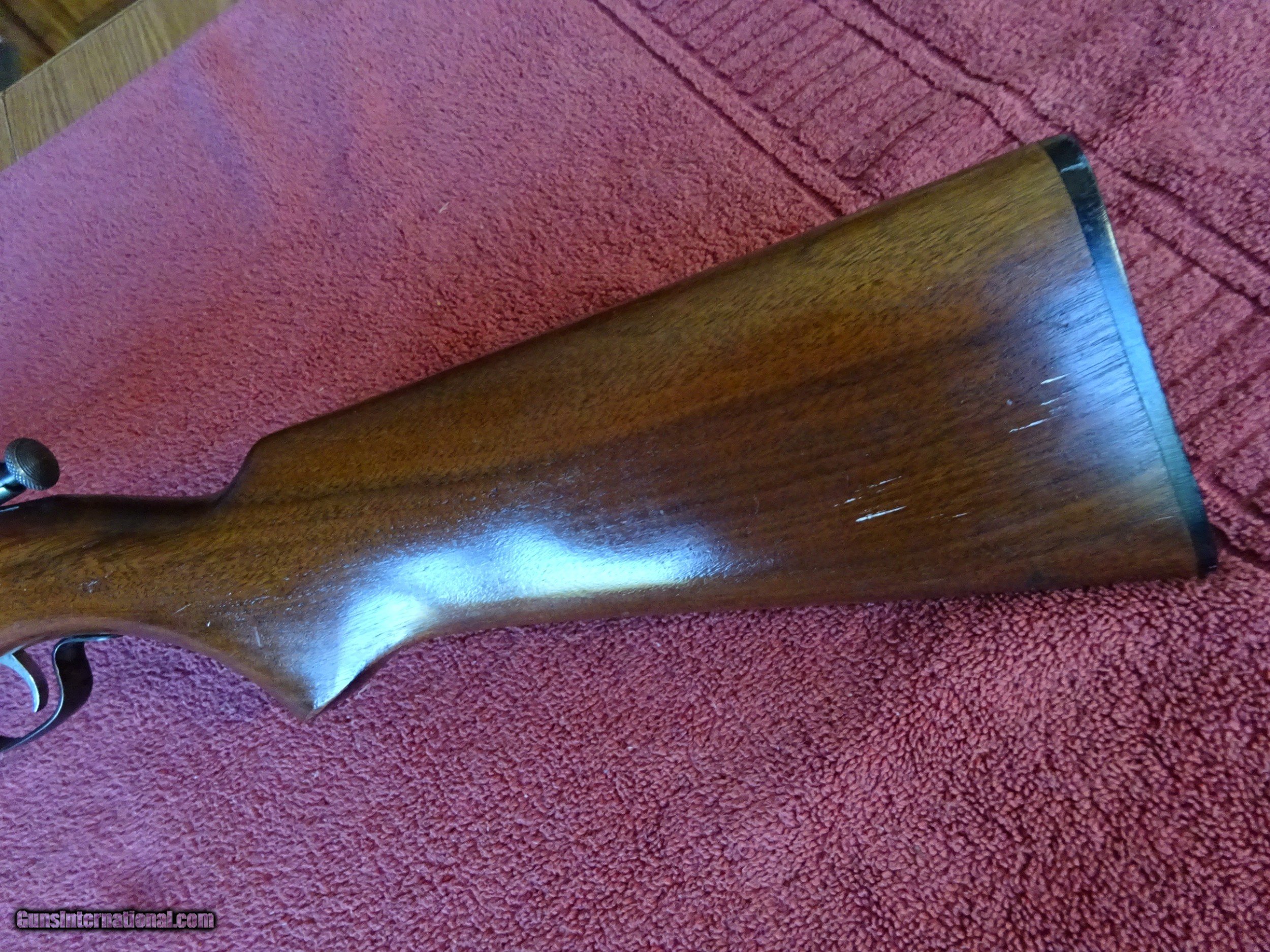 Description: WINCHESTER MODEL 68, 22 SHORT, LONG, OR LONG RIFLE. 27" BARREL, 100% BRIGHT BLUE, MIRROR PERFECT BORE. HOODED RAMP FRONT SIGHT, ADJUSTABLE REAR PEEP SIGHT. CHROME-PLATED BOLT AND TRIGGER. PISTOL GRIP STOCK, FINGER GROOVED FOREARM, EXCELLENT WOOD WITH NORMAL HANDLING MARKS IN THE FINISH. PERFECT COMPOSITION BUTTPLATE, 100% ORIGINAL. HARD GUN TO FIND IN THIS NICE CONDITION. $585.00 + $50.00 Insured shipping to an FFL address. See all Pats gun listings on this site! We also have hundreds of pieces of ORIGINAL gun company advertising & memorabilia available for sale on our site SPORTINGCOLLECTIBLES. We have no reprints or reproductions. Email for more information. SOLD Curio/Relic: Yes |