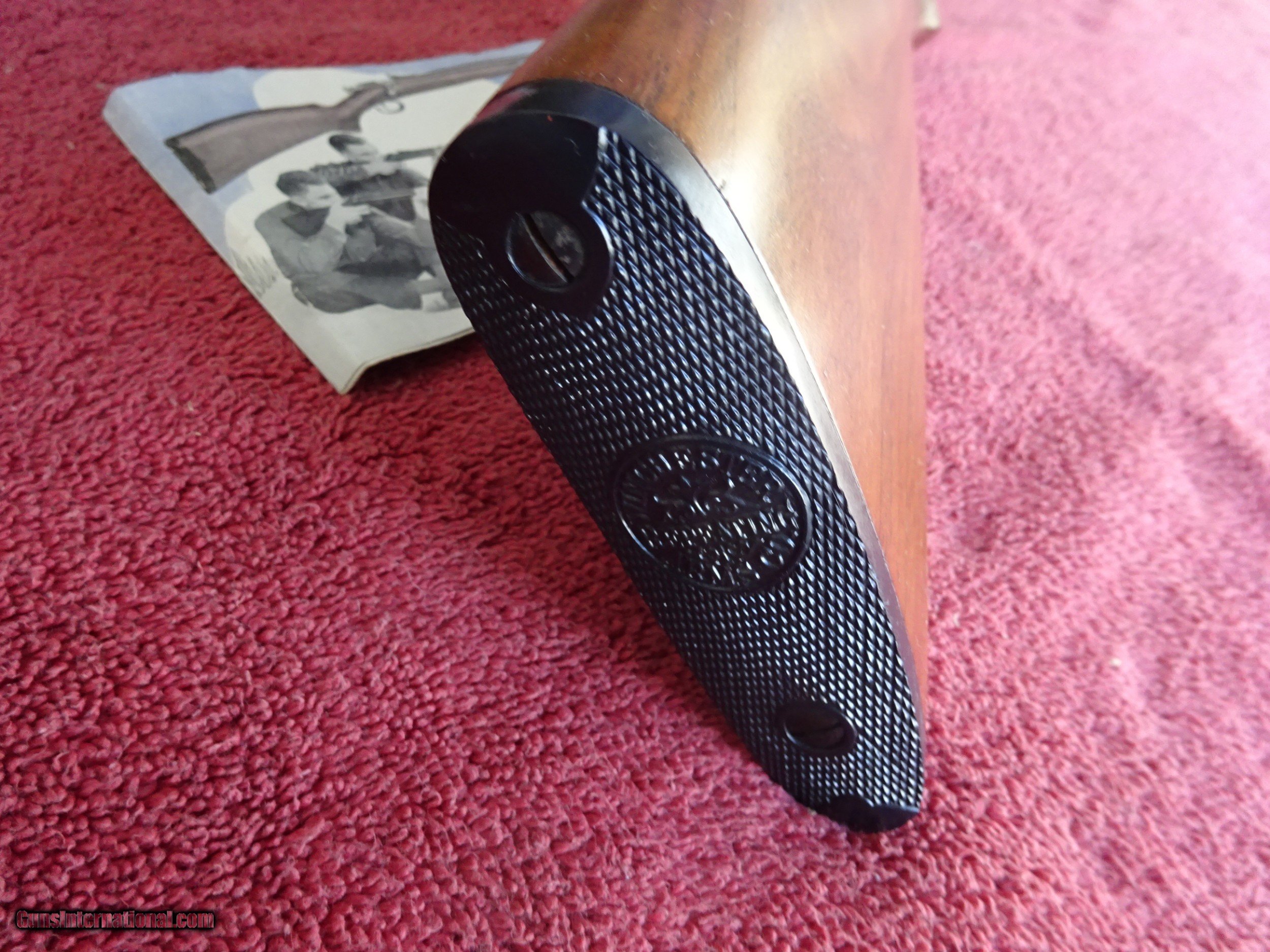 Description: WINCHESTER MODEL 68 22 S. L. OR LR. 27" BARREL, 100% BRIGHT BLUE, MIRROR PERFECT BORE, FIXED FRONT SIGHT, APERTURE REAR SIGHT. CHROME PLATED BOLD AND TRIGGER, 100% TRIGGERGUARD BLUE. AMERICAN WALNUT PISTOL GRIP STOCK, GROOVED FOREND, WINCHESTER MARKED COMPOSITION BUTTPLATE. WOOD FINISH IS NEAR PERFECT, MADE 1934 TO 1946, 100% ORIGINAL CONDITION. INCLUDES A COLORFUL 6 PAGE INTRODUCTORY BROCHURE. DIFFICULT TO FIND A NICER EXAMPLE. $575.00 + $60.00 Insured shipping to an FFL address. Layaway is available. See all Pats gun listings on this site! We also have hundreds of pieces of ORIGINAL gun company advertising & memorabilia available for sale on our site SPORTINGCOLLECTIBLES. We have no reprints or reproductions. Email for more information. SOLD Curio/Relic: Yes |