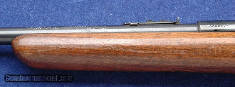 Description: Winchester Model 74 semi auto .22lr manufactured in 1957. This 74 features a 22” barrel, butt stock magtube fed, adjustable rear sight, dove tail front sight and walnut stock. The barrel has pin prick oxidation along the bottom but other then that it is a very nice rifle. In order to protect your investment, all long guns over $500 must be shipped in a hard case. Minimum shipping at this level is $55 and includes the hard case. Shipping cost could increase depending on value or weight of the firearm. For long guns less than $500, we still recommend the purchase of a hard case, again to protect your investment. These numbers are for shipping to the lower 48. There is also a 3% surcharge for customers using a credit card on internet sales. Thank you! SOLD |