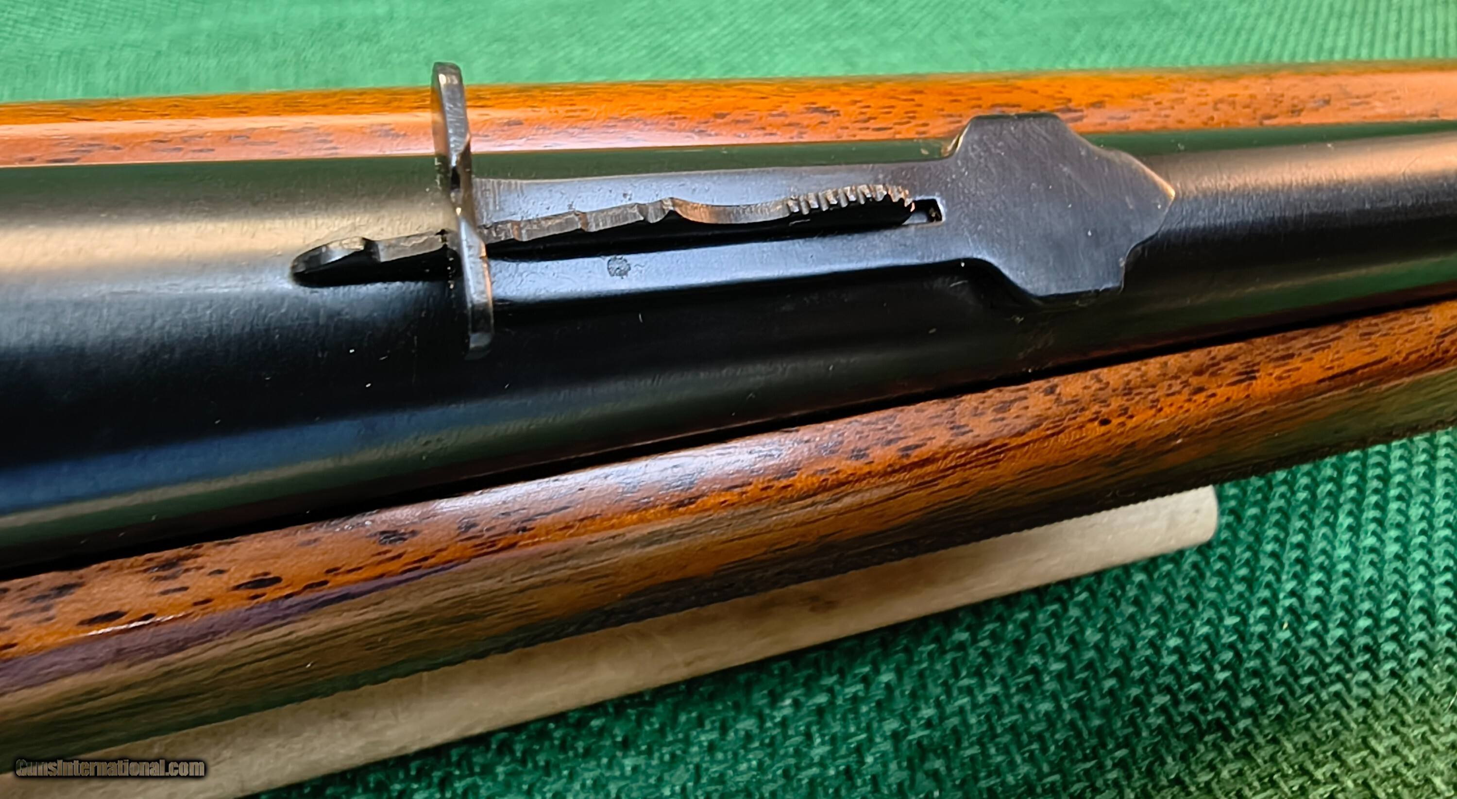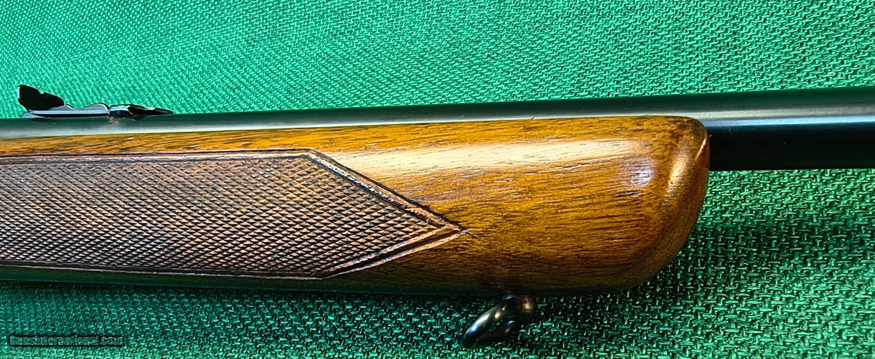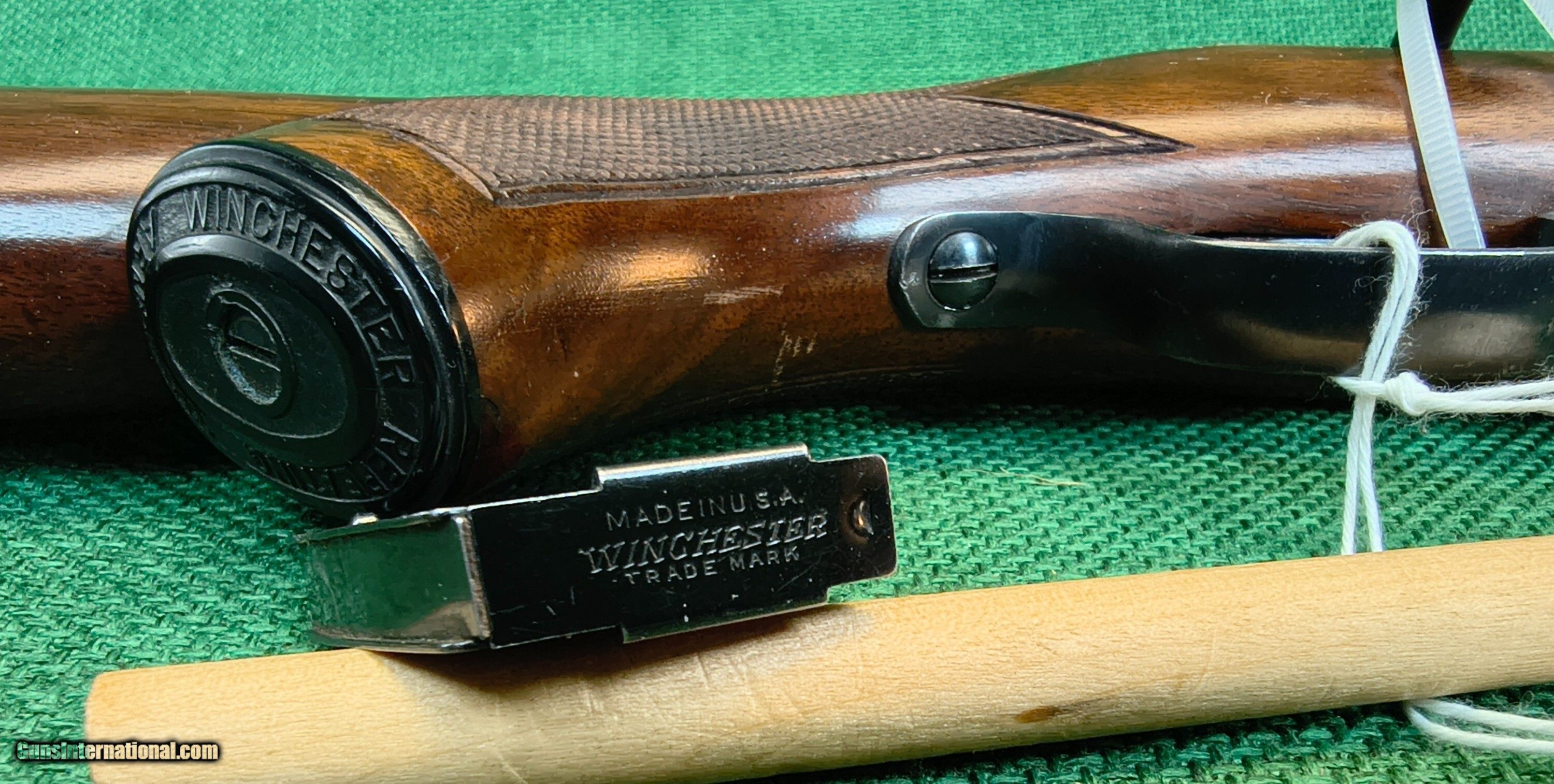Description: Here's a Winchester model 75 sporting rifle in 22 long rifle made in 1948. The wood metal and bore are in excellent condition. This rifle will come with one, original Winchester magazine, as shown in the photographs. This model is equipped with its original open rear site. Rifle is not drilled and tapped nor does it have a scope base or rail. Checkering on this rifle remains sharp to the touch and is an excellent condition. It should be noted that there is a brass roundell in the butt stock that would appear to be perfectly installed. Well we are not aware if this is a factory orginal, but gives all the appearance that it is, but it should be noted that it is present. There is evidance of bluing lose around the magazine well, likely from carelss magazine replacement in the well. All used firearms should be inspected by a qualified gunsmith prior to firing. All items are sold as photographed unless other arrangements are made. We accept USPS Money Order, cashier’s check, or credit card for immediate shipping. Please note credit card sales are subject to an additional 3% fee. Shipping & Handling: $50
