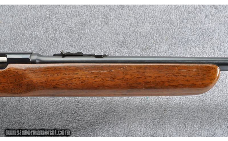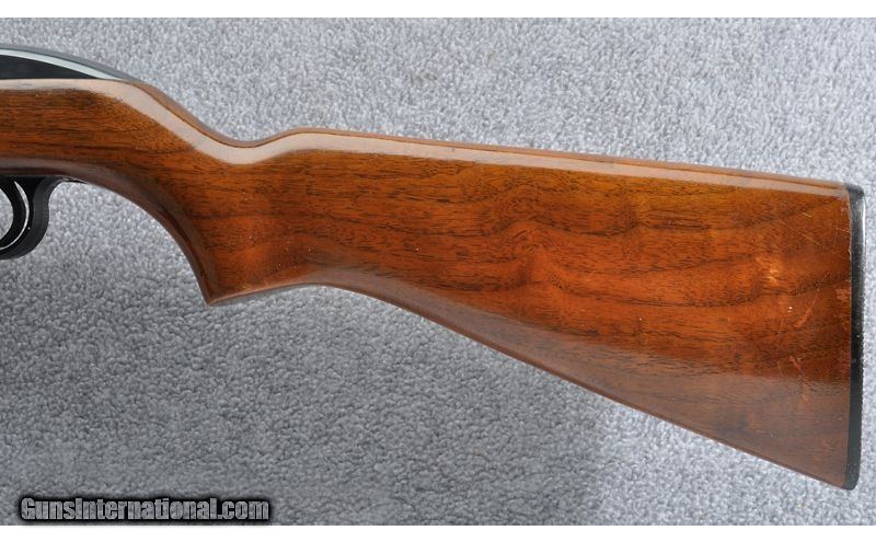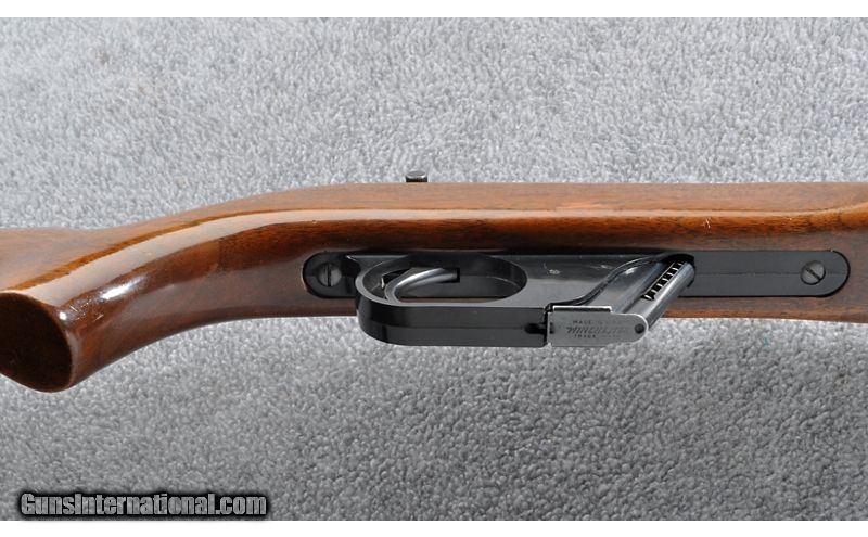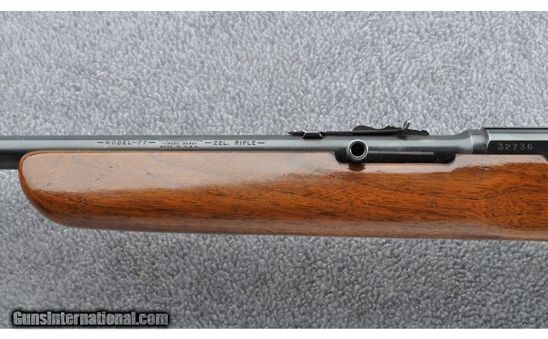 Description: Produced from 1955 to 1963 the Winchester Model 77 was a high quality firearm but couldn't compete price wise with other .22 semi-automatics like the Marlin 60 or Rugers 10/22. There were two versions, a tubular magazine and box plus a deluxe model with hand cut checkering, white line butt plate and grip cap. .22 Long Rifle SOLD Chambers: .22 Long Rifle in a 7 round detachable magazine Metal Condition: Very good showing blue wear at the edges and along the path of the charging handle Wood Condition: Appears to have been refinished with subsequent minor field marks Bore Condition: Bright with crisp rifling Barrels: 22 Stock Dimensions: 13 1/4" LIP Fore End: Plain walnut uncheckered Butt Pad: Winchester hard rubber with logo Weight: 5 lb. 12 oz. Sights: "Dovetailed blade front, Sporting leaf rear. Receiver is grooved for scope mounting. Item Location: Grand Junction, CO |