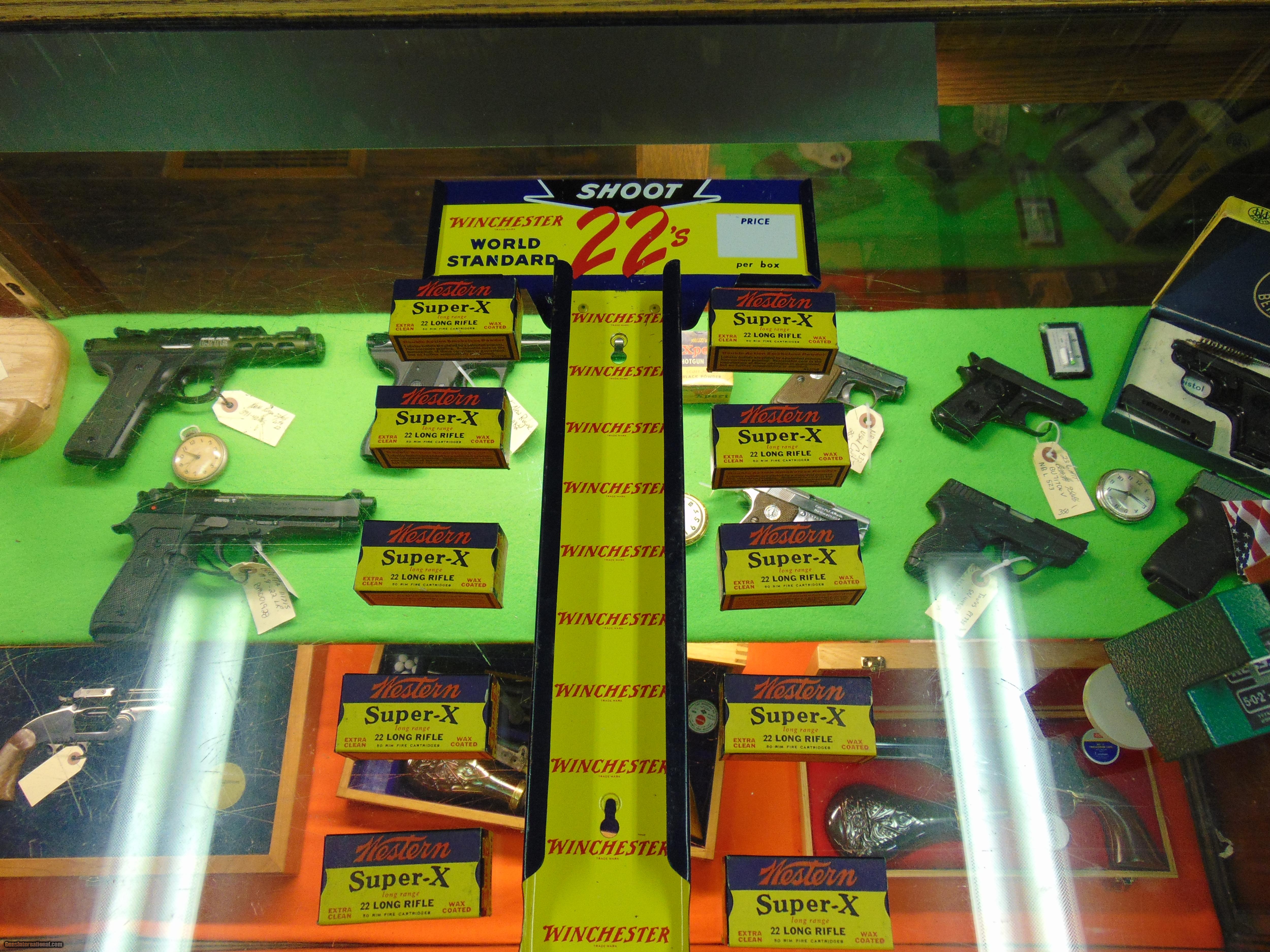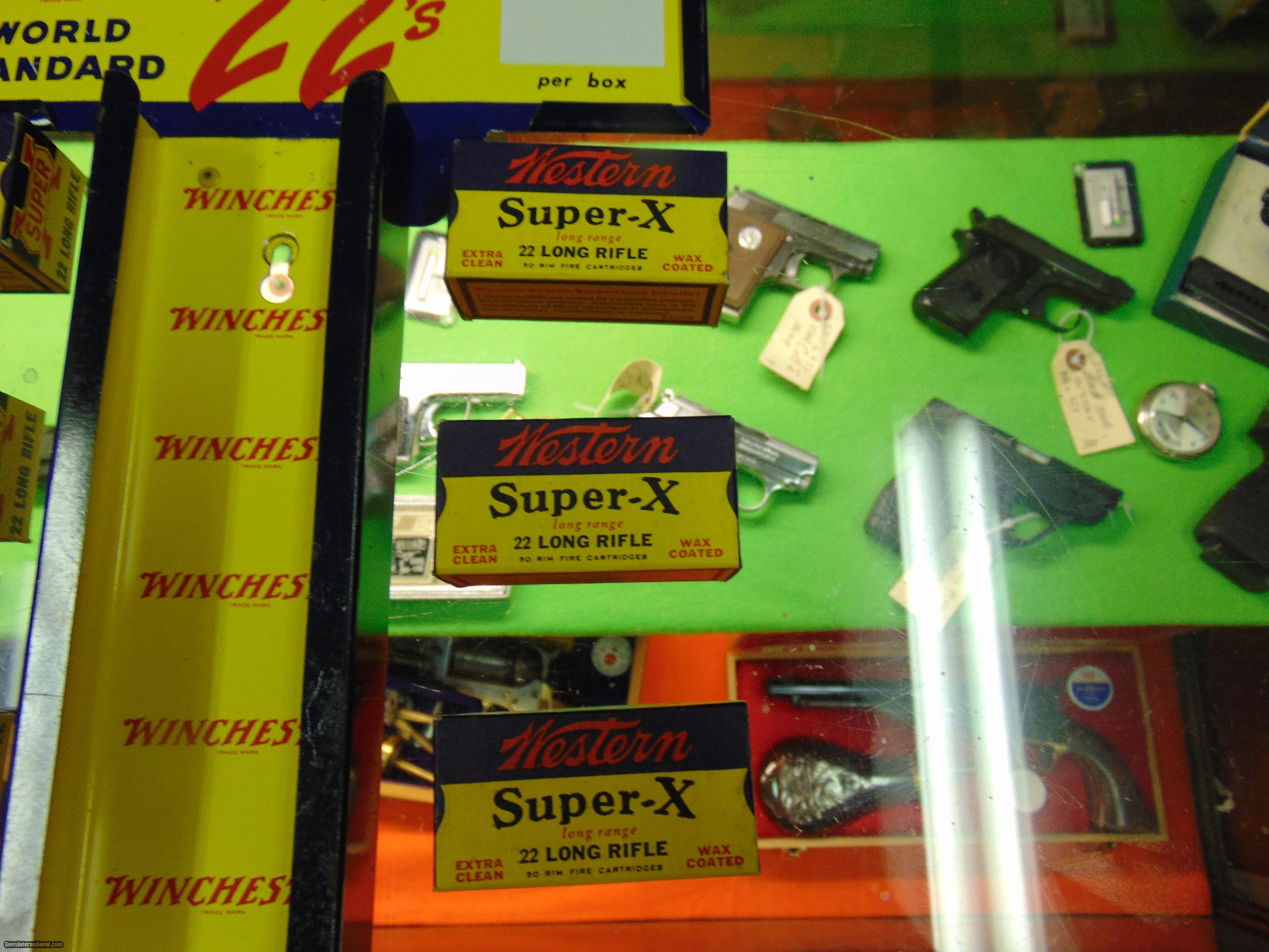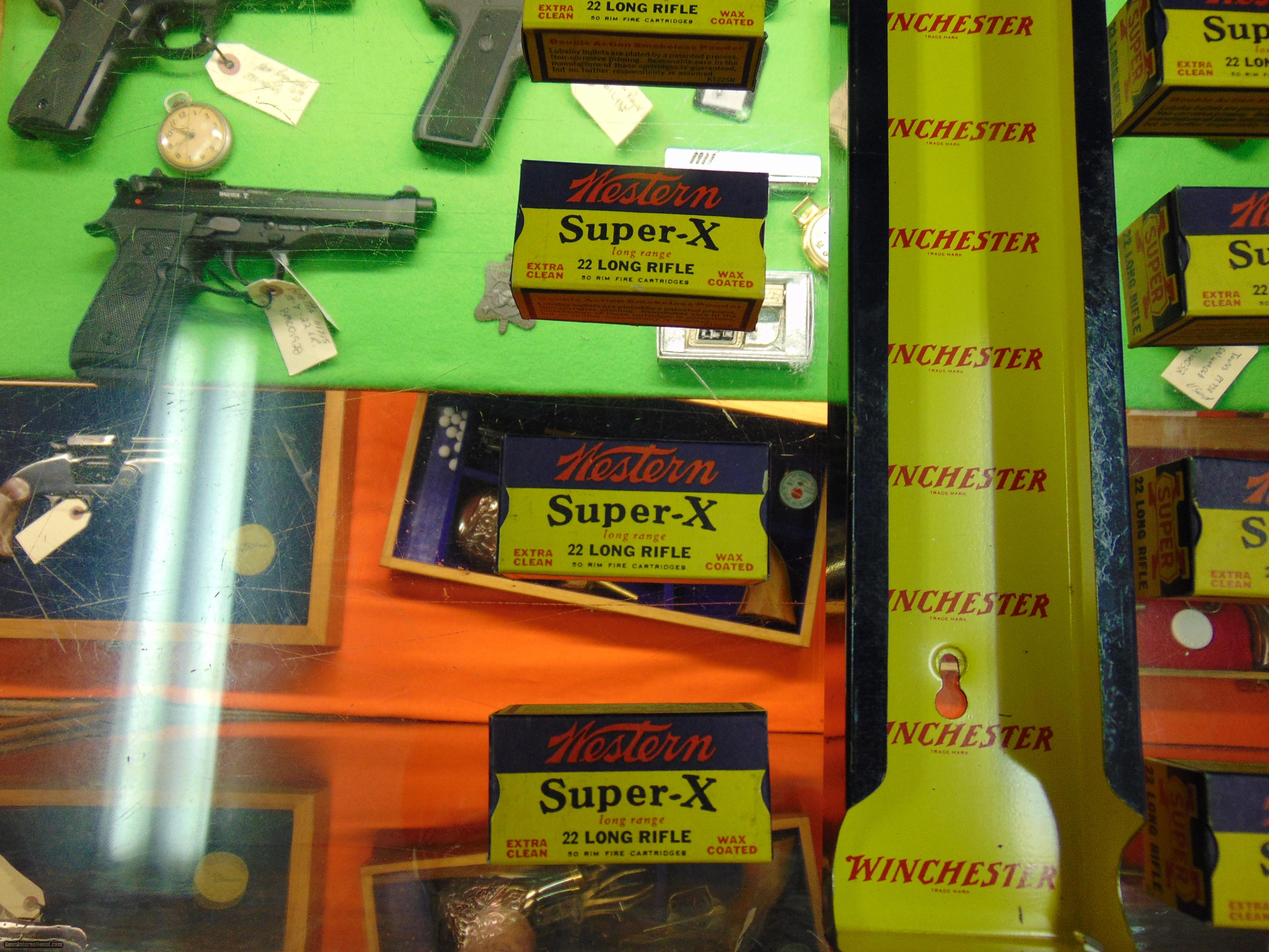 Description: A new old stock Winchester Western Super X wall display. The only mark is in the screw hole where we hung it on our wall. Everything else is pristine. The ten boxes of Winchester Super X are all from the same code DCY42. They were also a NOS brick, we have the box but it is MIA at the moment. I am currently searching for it. This is a cool Winchester original Winchester Display. For More Information call 412-554-7891. We charge a 3% credit card fee SOLD |