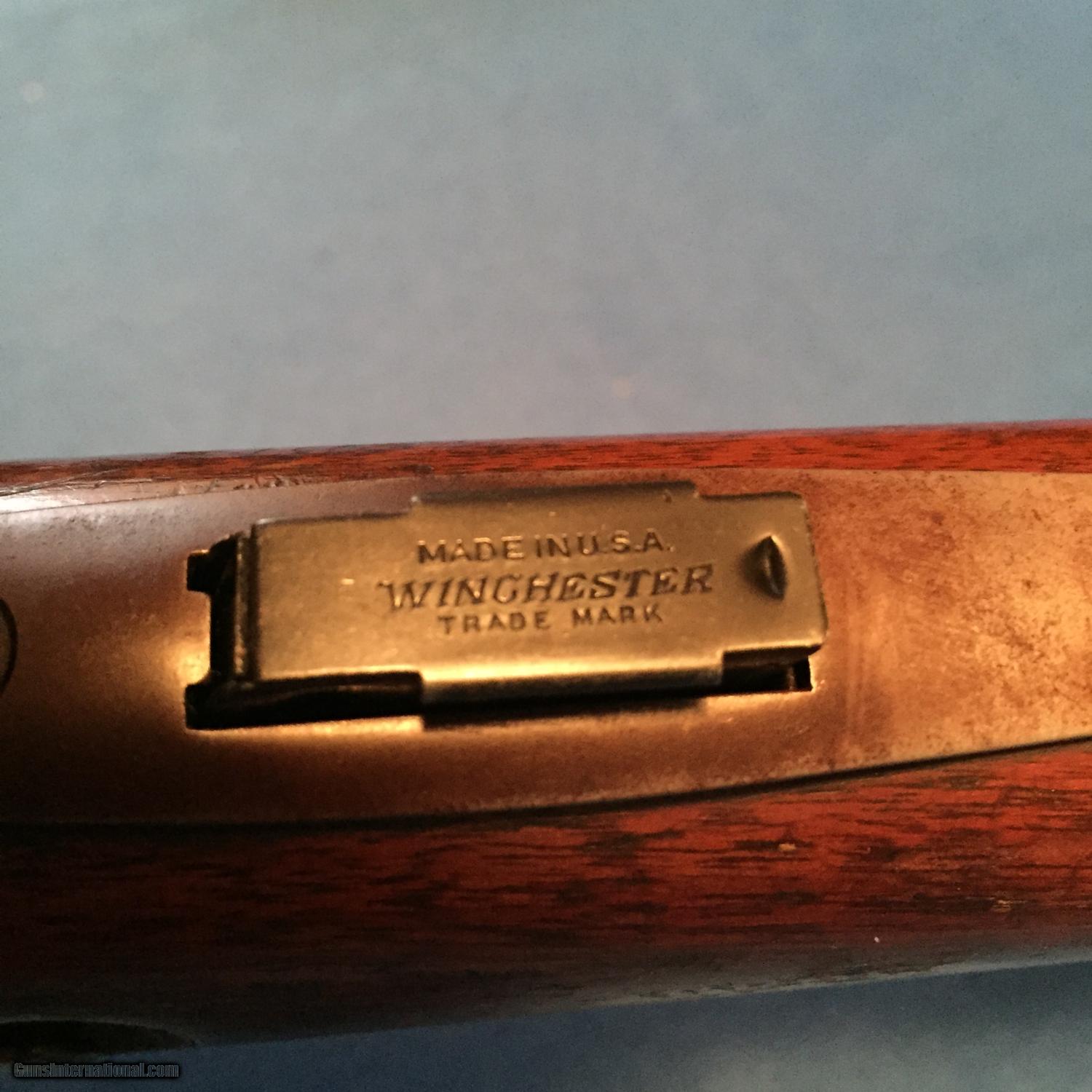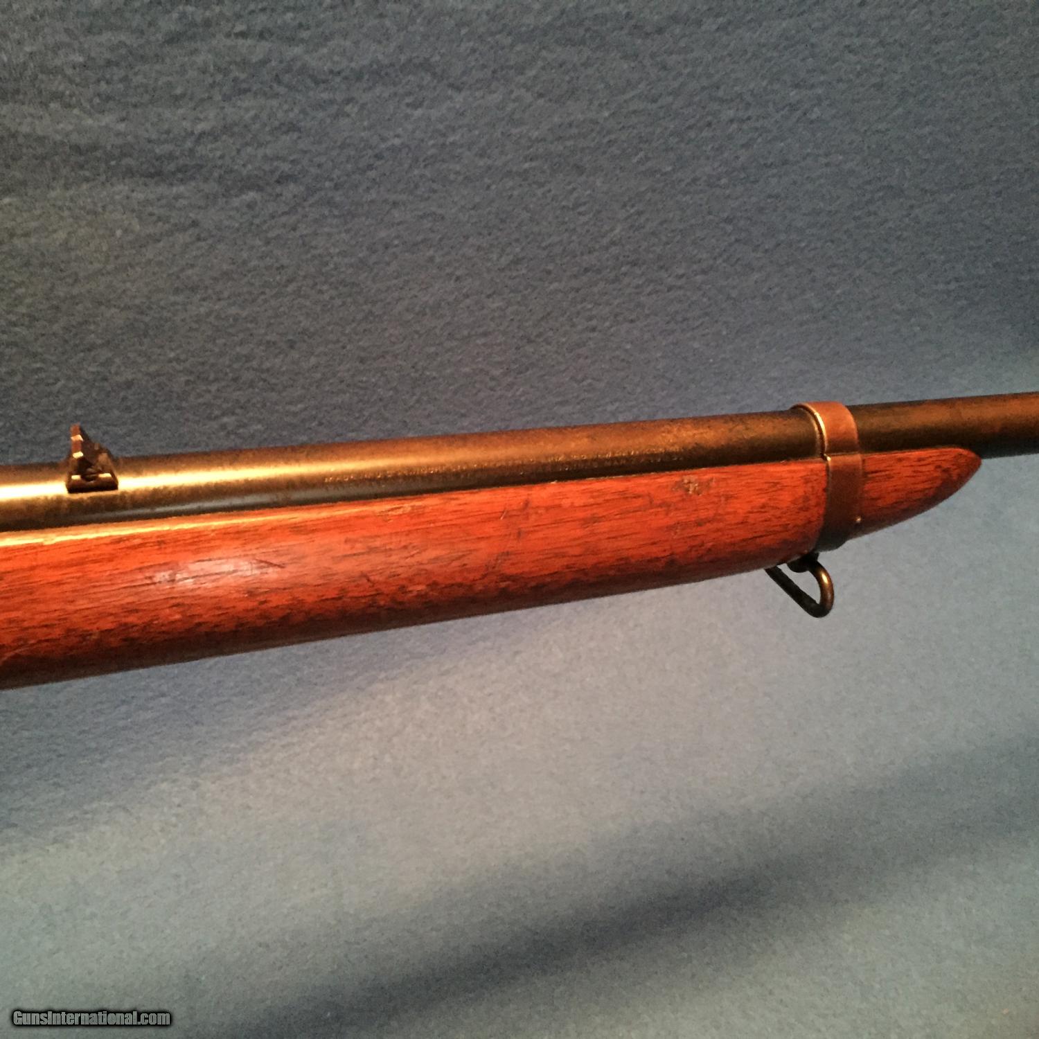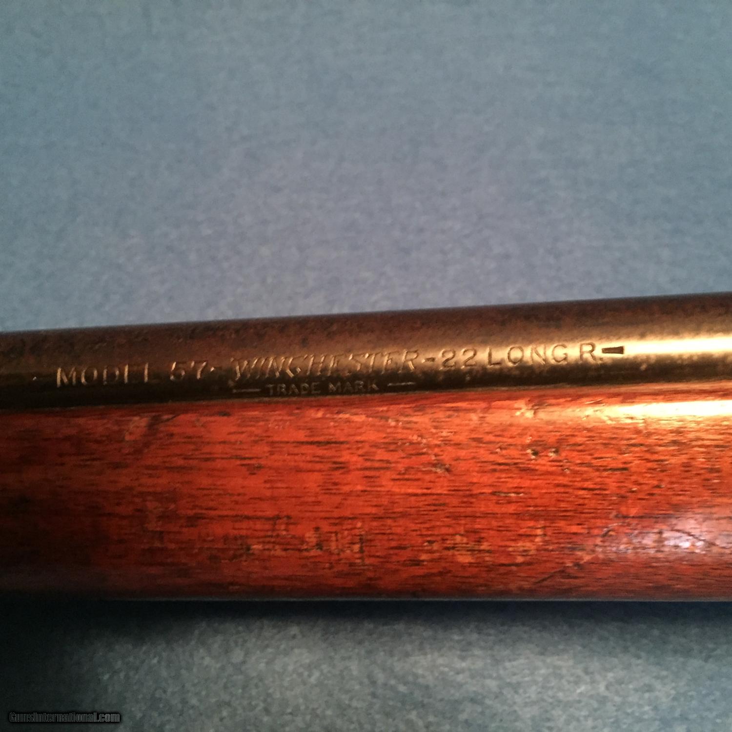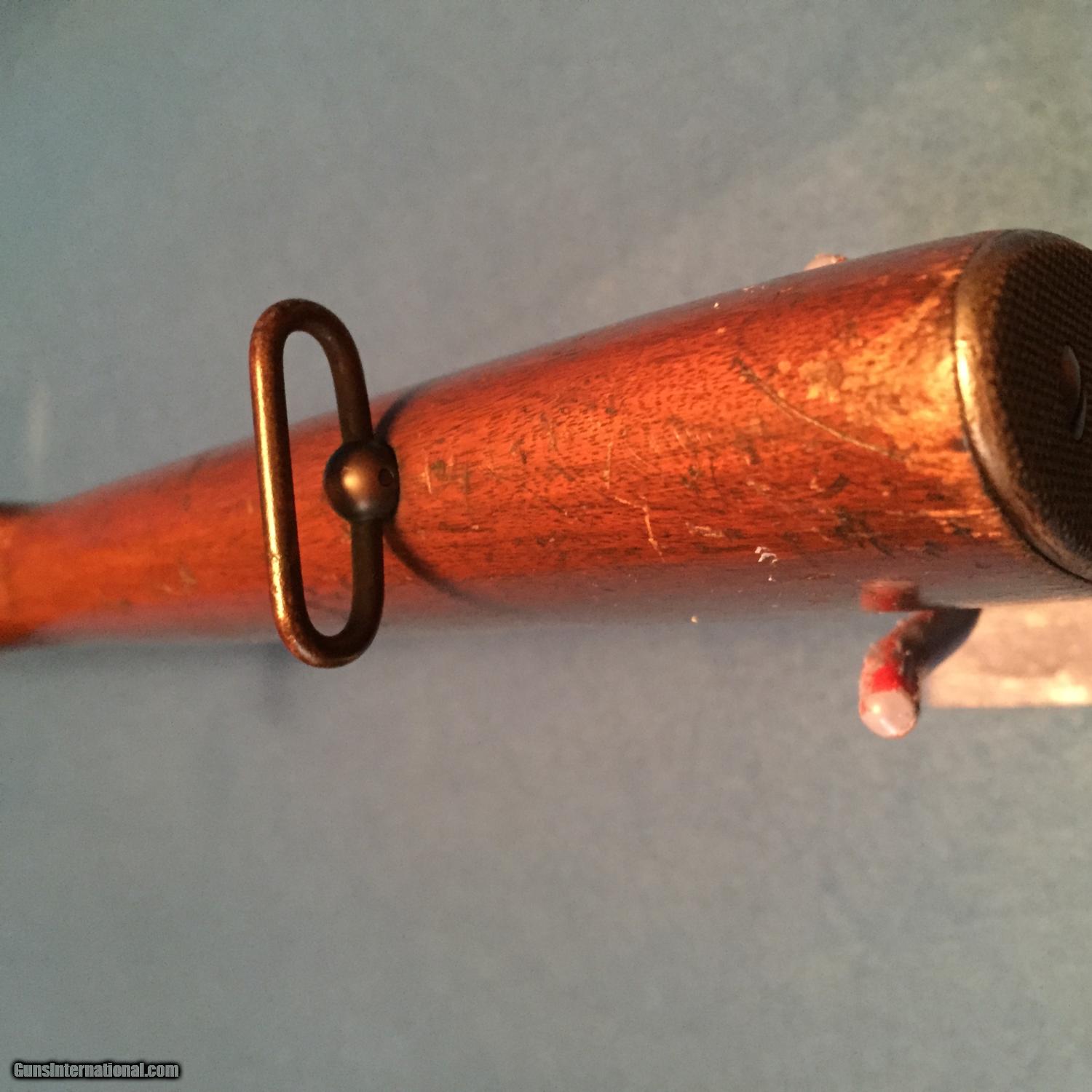 Description: Winchester Mod 57 target - scarce gun, with fair bluing, but thinning. Wood has usual handling marks and dings and varnish flaking mainly at the caring point. Sights are correct Lyman 42W rear peep and folding mid sight with Lyman globe front sight. Original 5 shot clip. SOLD Curio/Relic: Yes Manufacturer: WINCHESTER Model: 57 TARGET Serial Number: 17149 Caliber Info: 22 Bore Condition: VERY GOOD Manufacture Date: 1930 |