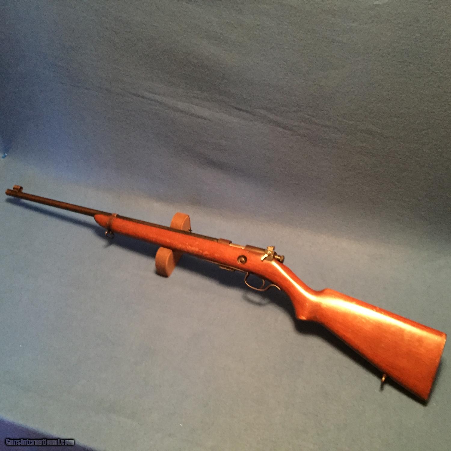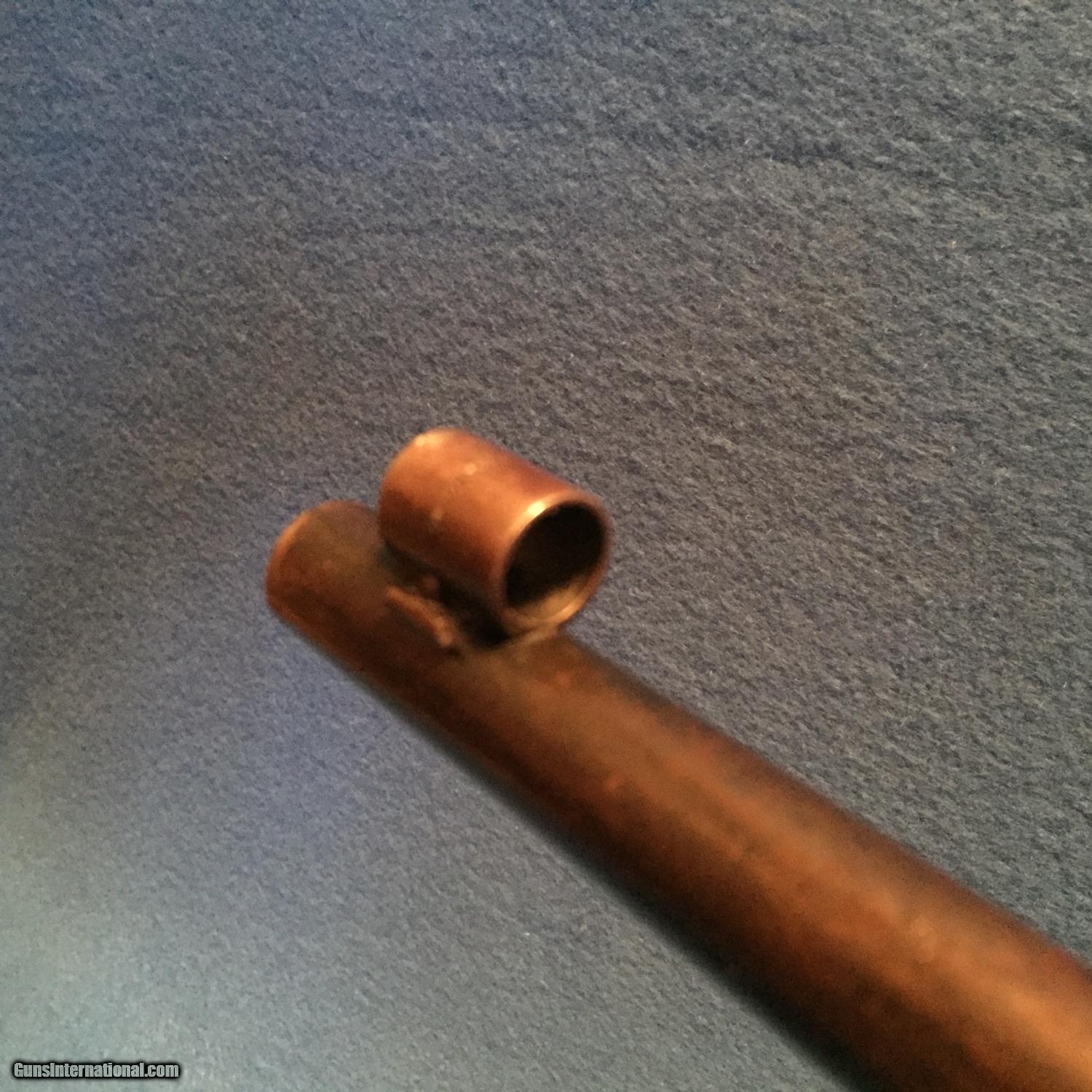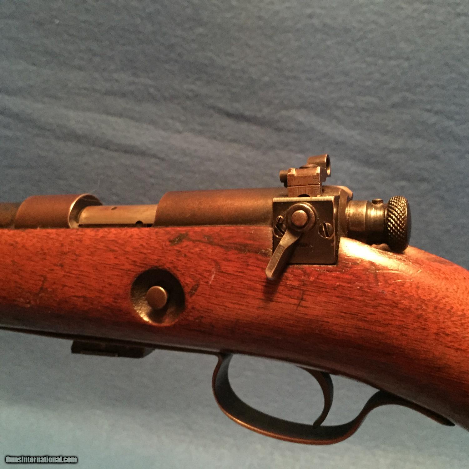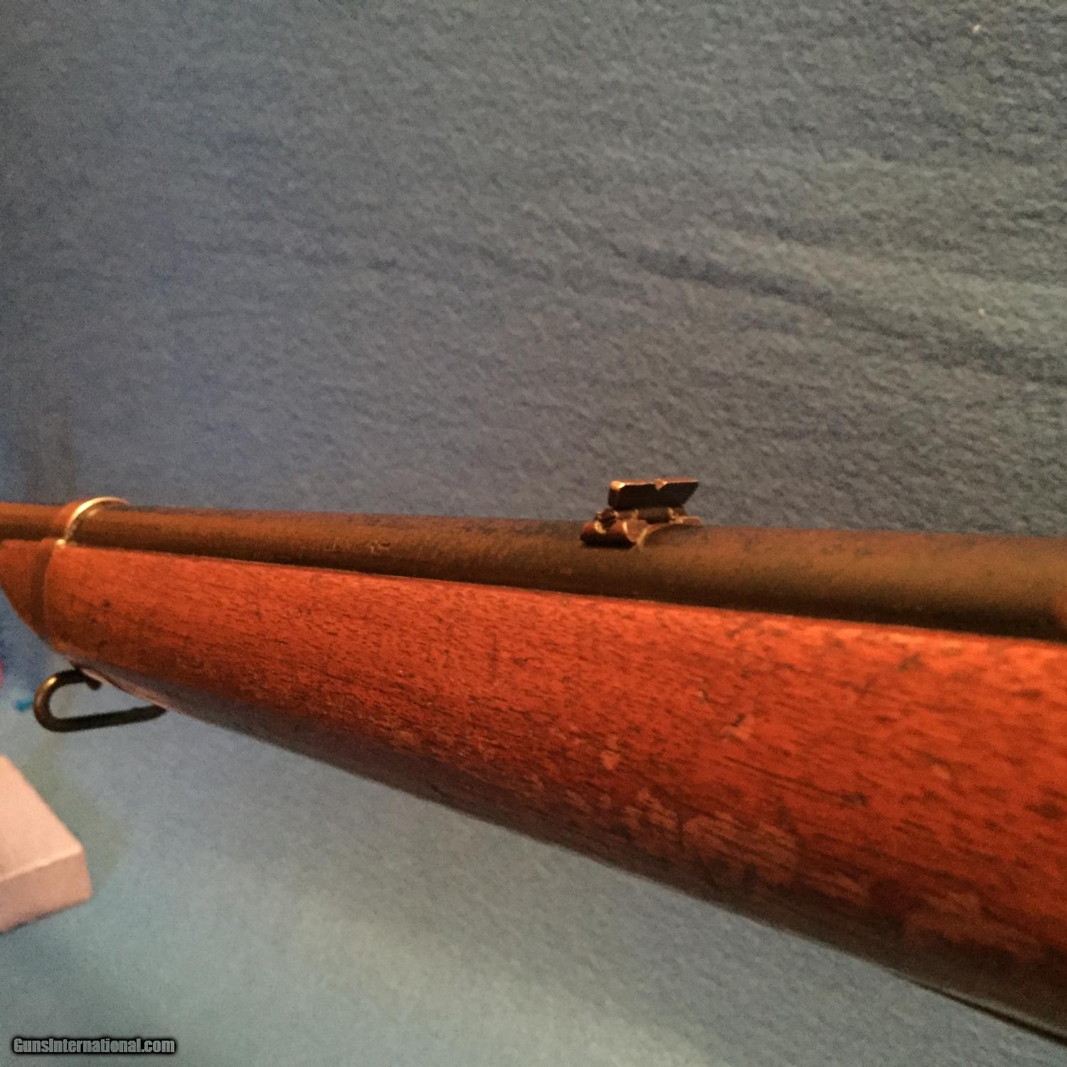 Description: Winchester Mod 57 target - scarce gun, with fair bluing, but thinning. Wood has usual handling marks and dings and varnish flaking mainly at the caring point. Sights are correct Lyman 42W rear peep and folding mid sight with Lyman globe front sight. Original 5 shot clip. SOLD Curio/Relic: Yes Manufacturer: WINCHESTER Model: 57 TARGET Serial Number: 17149 Caliber Info: 22 Bore Condition: VERY GOOD Manufacture Date: 1930 |