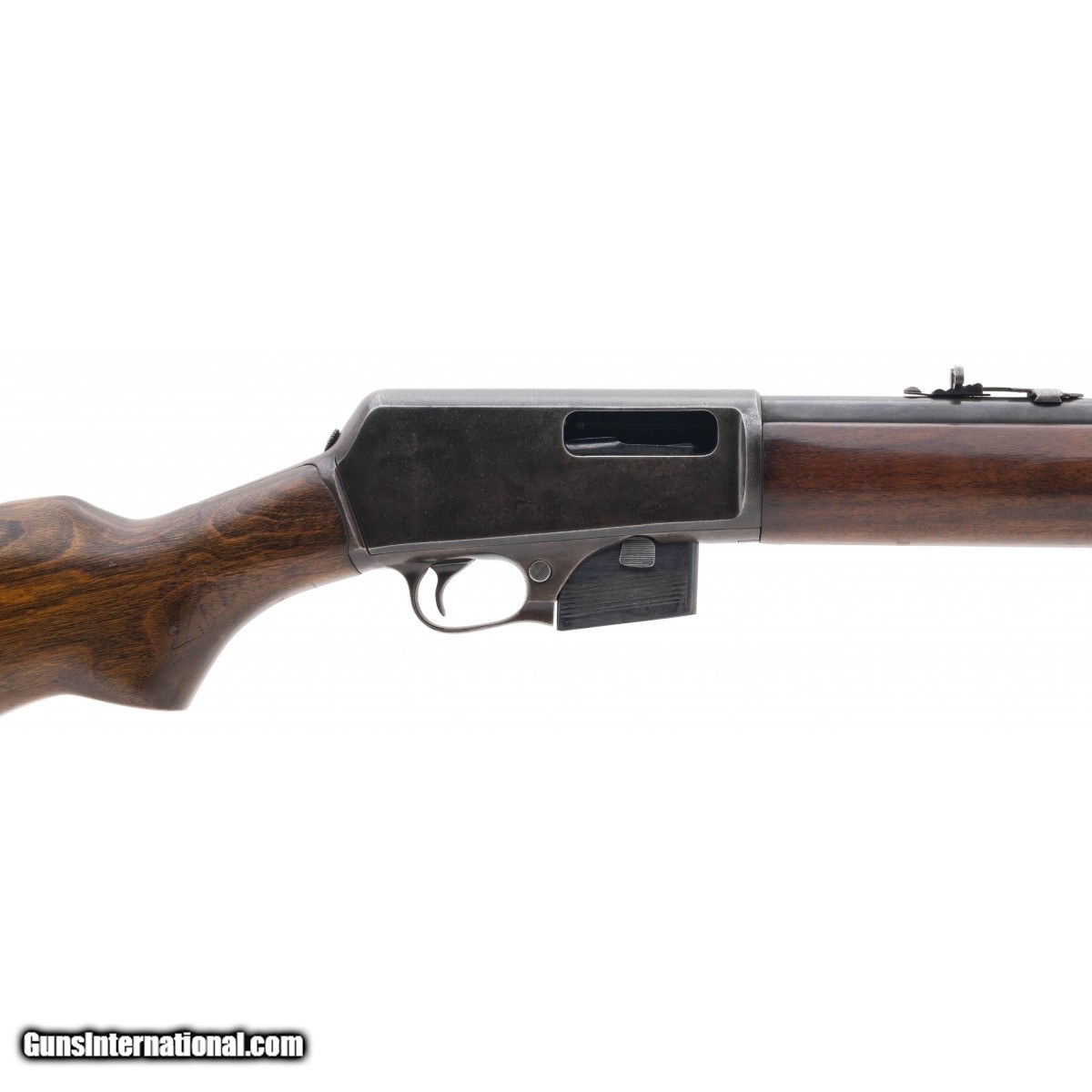SN: 53997. Semi-auto Winchester 1907 made circa 1957 with 20"" barrel. The bore is very good with one spot of pitting. The finish on the metal is in fair condition. Overall fair plus condition.