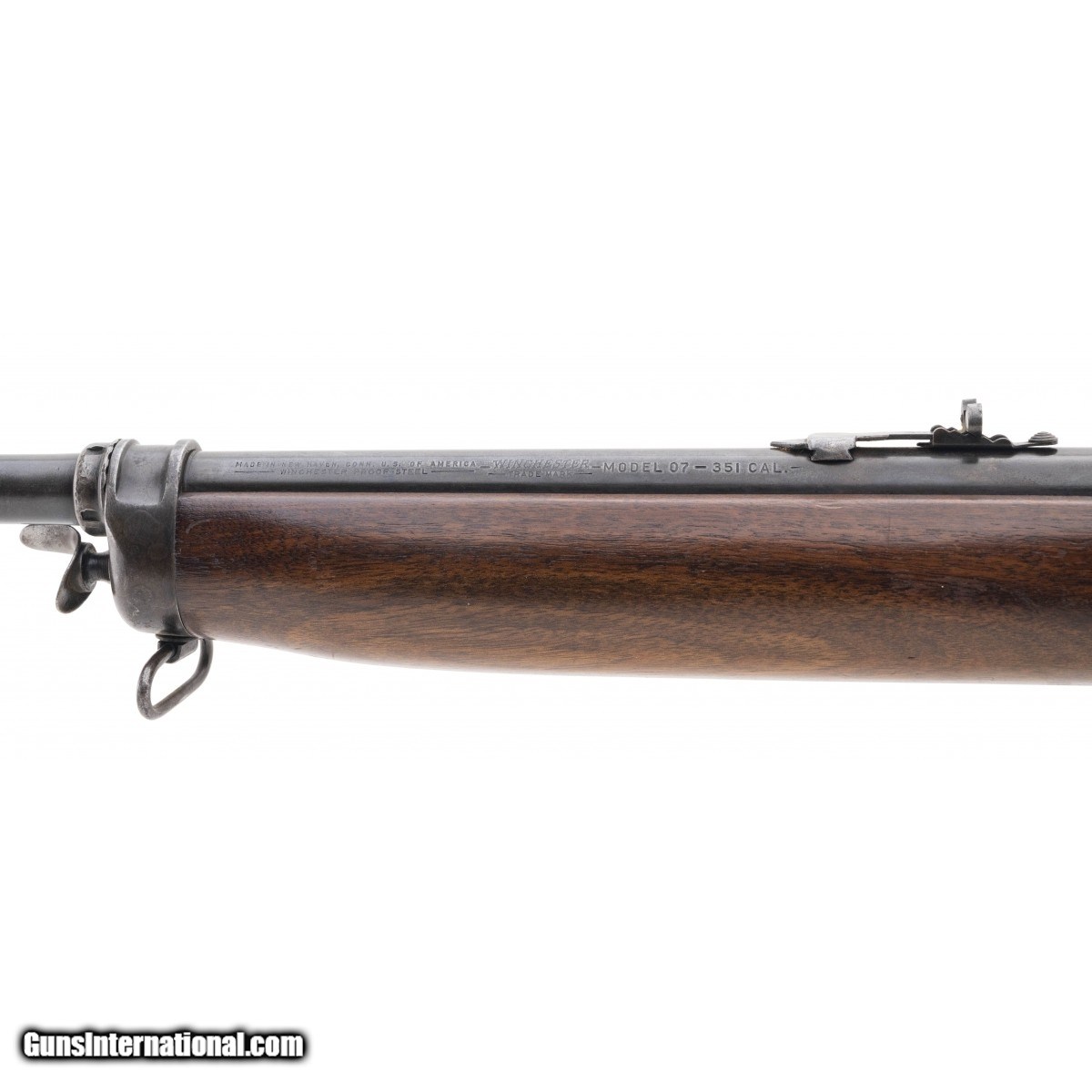 Description: " SN: 53997. Semi-auto Winchester 1907 made circa 1957 with 20"" barrel. The bore is very good with one spot of pitting. The finish on the metal is in fair condition. Overall fair plus condition. SOLD Curio/Relic: Yes |
