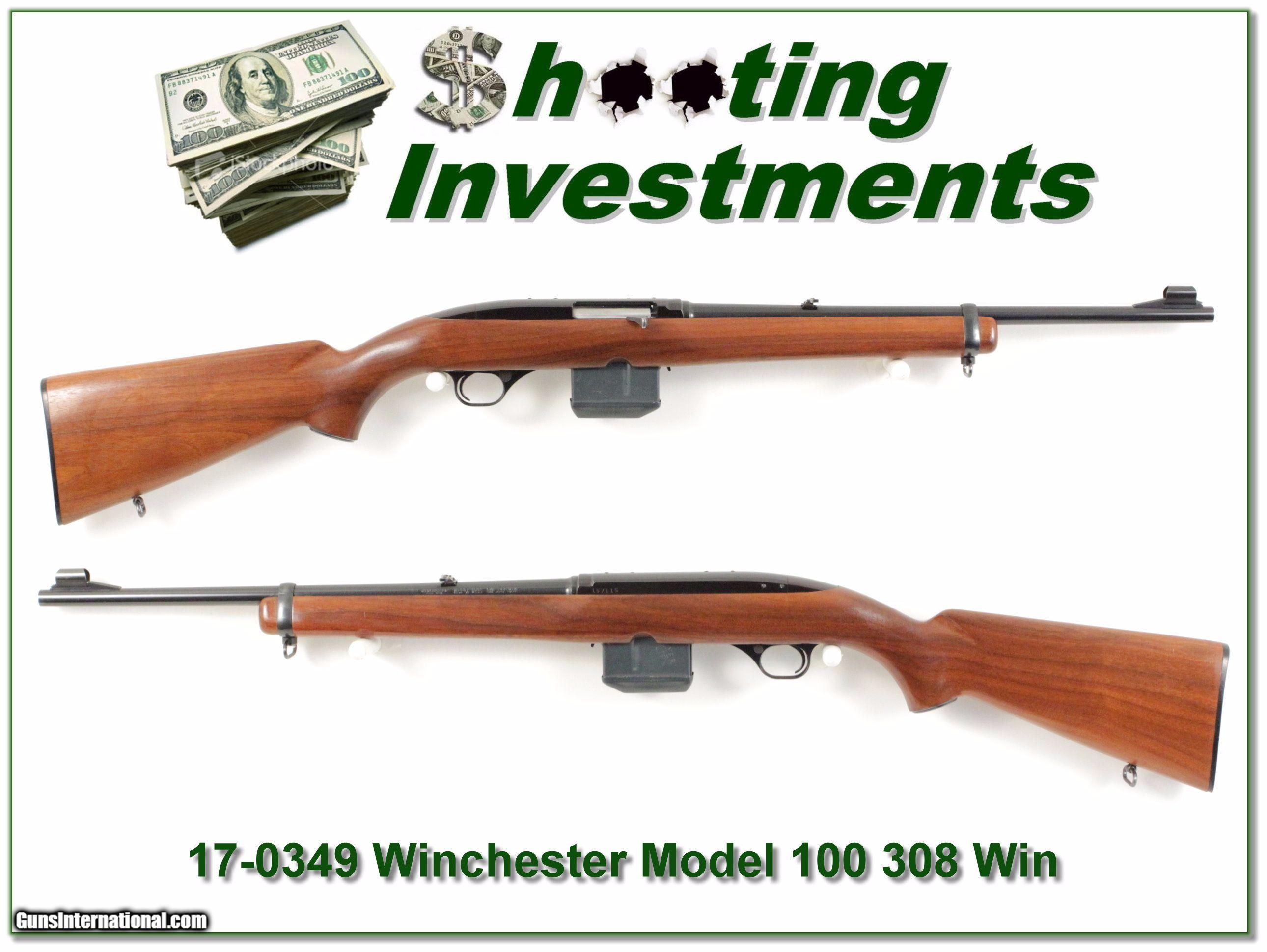 Description: This is a very nice 1967 made Winchester 100 Carbine in 308 Win. It has only light use and comes with 2 magazines! I am selling this one on consignment and as such, lay-a-way can’t be used. It does of course have the standard 3-day inspection. Shipping and insurance is $35 or $15 more if you want it shipped in a new Plano hard case. Please email me with any questions or larger pictures. (I now consign quality firearms only 10%! Let me know if you have any you would like to sell!) 17-0349 Payment: Payment is by Money Order, Cashiers Check or Personal Check. I can now also accept MasterCard and Visa with a 3% convenience fee. PayPal can be used for some items but never firearms. Please let us know if you would like to pay via PayPal. Shipping: The shipping charge will be listed in each description. It is $35 for most guns. Some heavy guns or those insured for over $2000 will be higher. Shipments to Alaska and Hawaii are higher because air shipment is required. Most firearms are shipped within 5 days of receipt of payment. We prefer shipping at the beginning of the week to avoid firearms in transit over weekends. We package all shipments carefully and insure them for the full purchase price, rounded up to the next $100. In the unlikely event that damage occurs, it is important that you save all packaging material for the claims process. Optics are shipped Priority Mail and most other non-firearm shipments are shipped First Class. Returns: Our return policy is simple. If for any reason you are not pleased with your purchase, you may return your item for a refund. The only exception is ammunition, it cannot be returned. It is important to us that you are happy. Guns cannot be fired or dissembled before returning them and must be returned in the same condition as received. Notification of a return must occur with-in 3 days of receipt at your dealer. Shipping, convenience and dealer fees are not refundable and are the responsibility of the buyer. Lay-a-way: If needed, we offer a 60 day lay-a-way option on most firearms. It is 1/3 now, 1/3 in 30 days and 1/3 in 60 days. Lay-a-way firearm sales are final. Consigning your firearms with Shooting Investments: We will help you get top dollar for your firearms. While most local guns shops charge 20% or more, our fee is only 10% with a minimum of $50. At your local gun shop it might take months to sell. Selling on-line provides instant access to thousands of interested buyers. You won’t find any other on-line dealer willing to sell your firearms for only 10% or listing every gun on 4 separate s. Selling through an House typically costs the seller 15% and the buyer an addition 15% (so 30%) and you have to wait several months to sell and longer to receive funds. If properly priced, we will sell your firearms in a week or two. Send us an email or give us a call and we’ll explain how easy it is for you to get top dollar. Trading: We collect guns and usually just trade for guns we want to add to our collections. We often sell guns for others wanting to purchase one of ours. We find this the most fair to both of us. Our Commission is only 10% and we hold the gun you want until yours sells. Please contact us if you want to sell one of yours to buy one of ours. Help for California Buyers: We are happy to ship to California. It is the buyer’s responsibility to make sure any item you buy is legal in your state. We are also happy to help with your purchase of a firearm from someone other than us. If you see a gun you would like to buy but the seller can’t or won’t ship to California we can help. You buy the gun and have it shipped to us. We’ll then ship it to your California dealer. The cost for this service is only $30 + shipping. Let me know if we can help! SOLD |