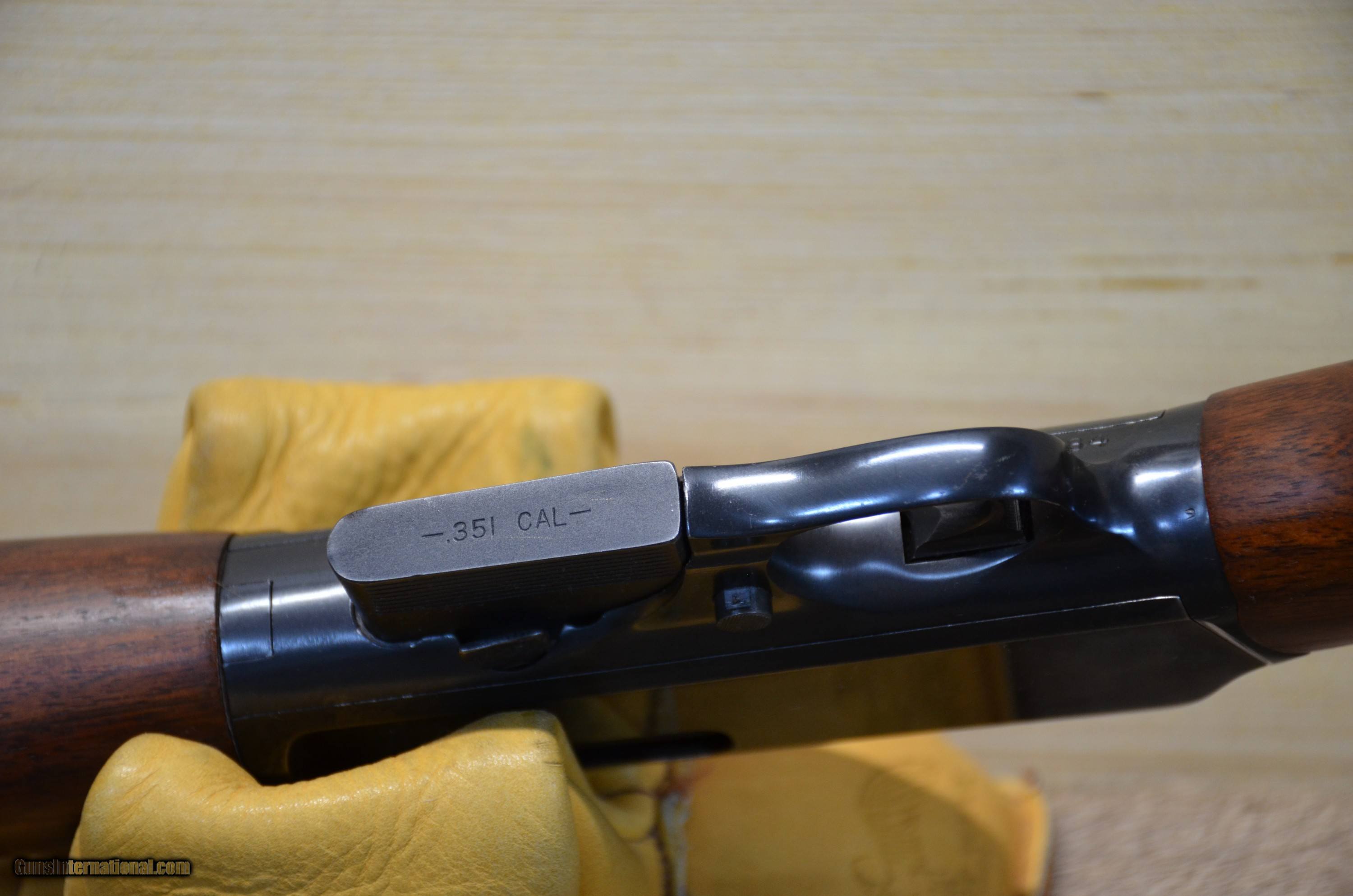 Description: A Collector grade Winchester Model 1907 Semi-Auto .351 cal. Winchester. Manufactured Approximately 1950, serial # 51384 Sling Swivels, Steel Buttplate, Heavier Stock ( 1 3/4" thick ) , 20" Barrel One of the best examples - Wood 100%, Metal 98%+ Bore - Mint. Includes 1 extra 5rd magazine & 60rds of new ammo. SOLD Curio/Relic: Yes Manufacturer: Winchester Model: 1907 Serial Number: 51384 Barrel Length: 20 Condition: Excellent Metal Condition: 98%+ Wood Condition: !00% Bore Condition: excellent Action: Semi Auto Stock: straight grain Walnut Butt Pad: steel Finish: Blue Sights: open sights Manufacture Date: 1950 Extras: 1 5rd magazine, 60rds Ammo |