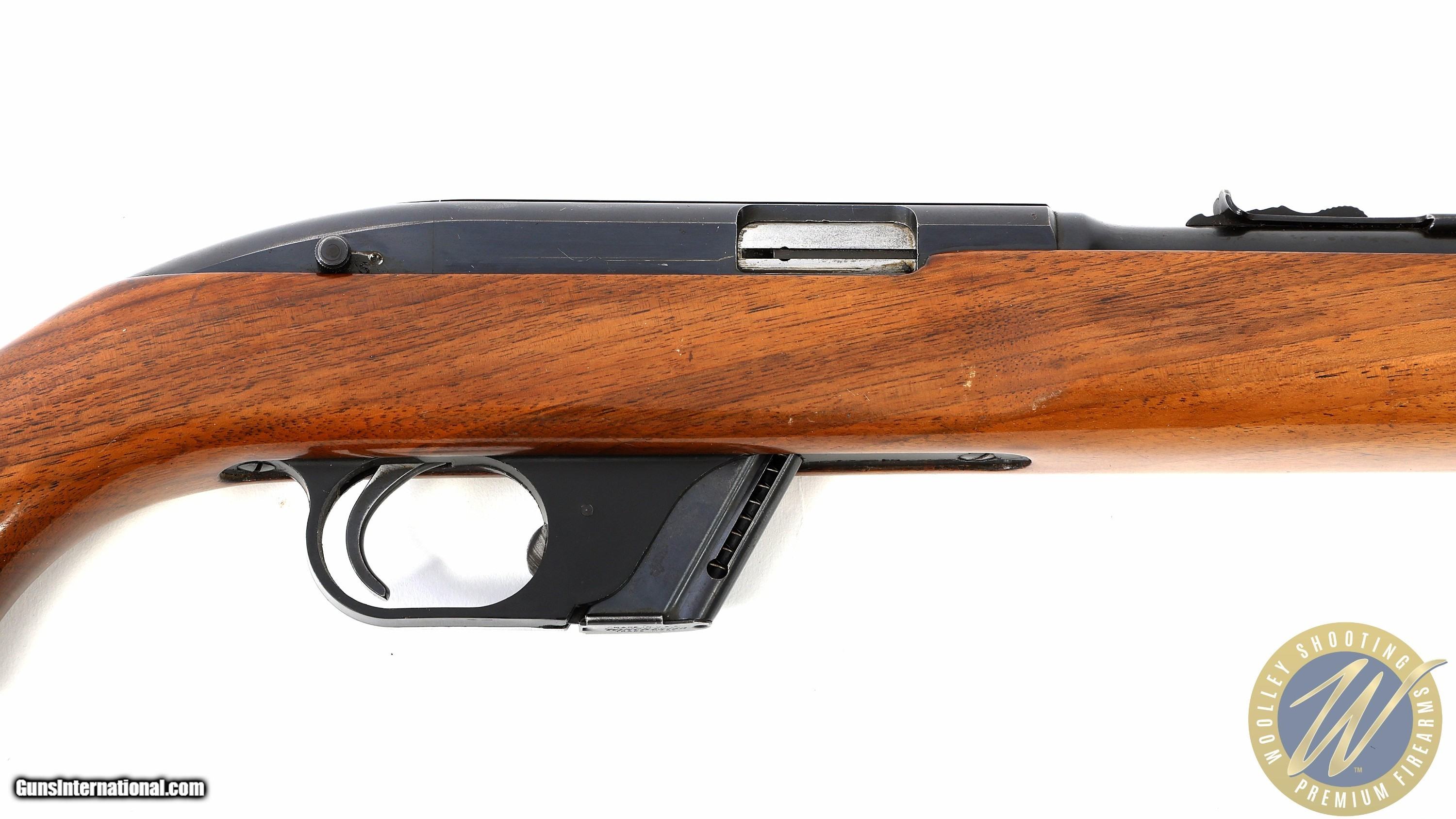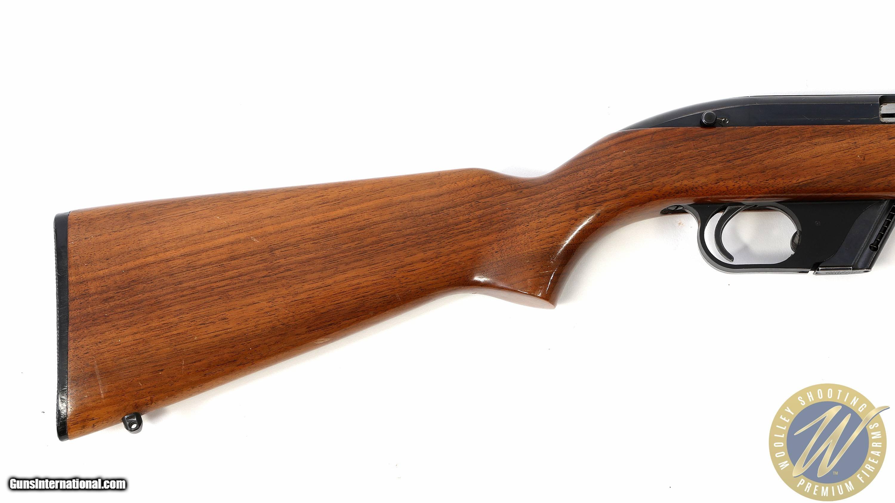 Description: Winchester Model 77 .22 LR Wood Preowned Condition Assessment: Preowned Winchester Model 77 semi-automatic rifle in very good condition. Bore is in great condition with strong rifling and no pitting. Bluing retains approximately 95% with minor handling marks throughout. Walnut stock shows minor handling marks consistent with use; no cracks or structural damage. All mechanical functions operate correctly. Includes one magazine. Gun only - no box or accessories. Condition: Used - Very Good Model: Model 77 Gauge/Caliber: .22 LR Barrel Length: 22" Configuration: Semi-Automatic Rifle Stock/Frame: Wood stock Wood/Material: Walnut Finish: Blued Special Feature: Classic Winchester .22 semi-auto, detachable box magazine Included: