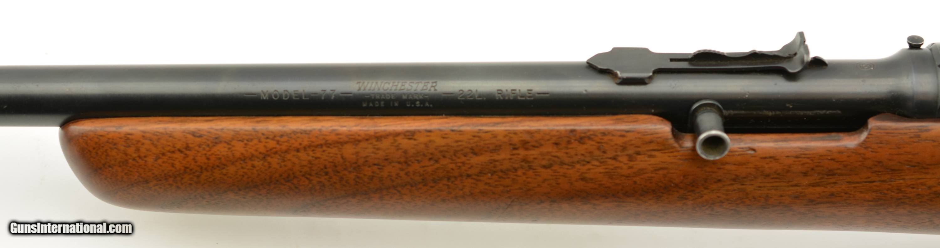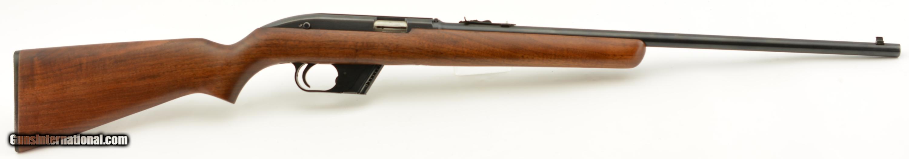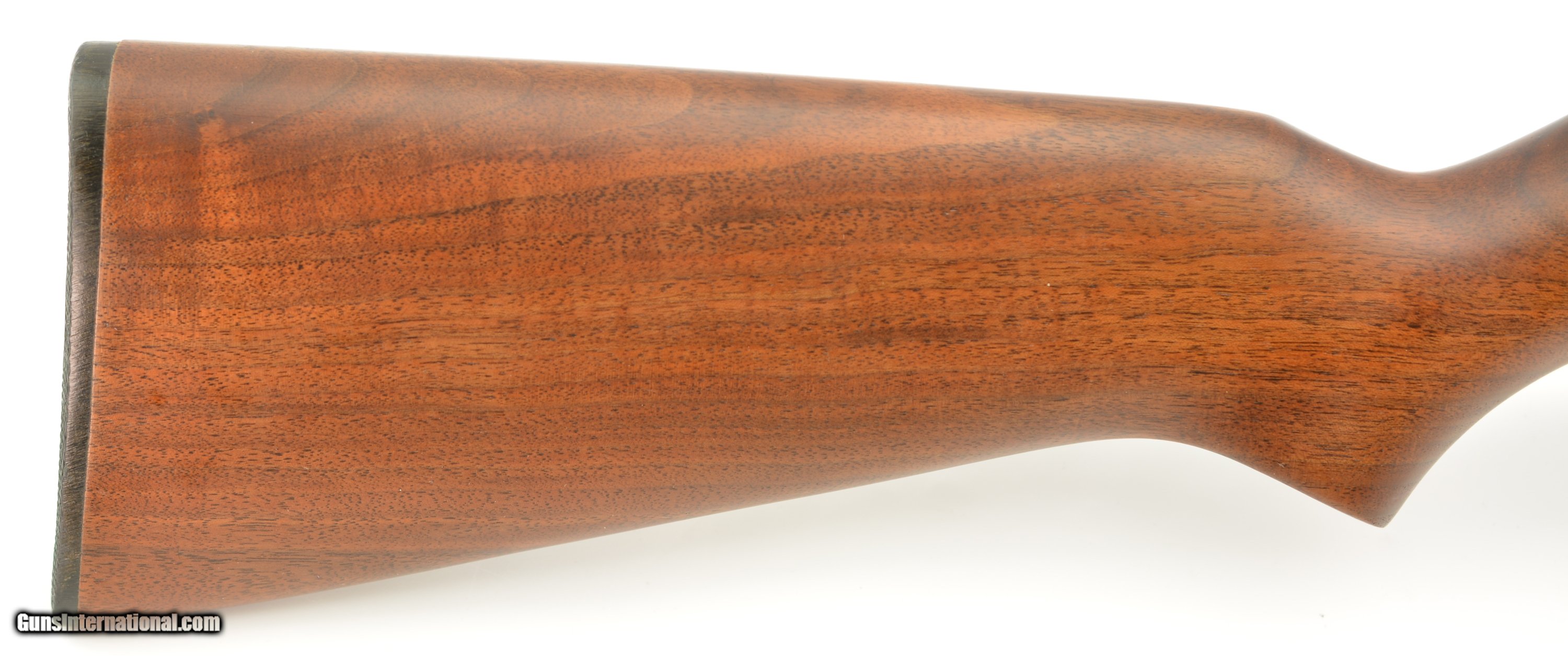 Description: Serial #164576, .22 LR, 22" barrel with an excellent, bright bore. This is a neat little rifle that has retained 95-97% of the original blue finish with some silvering at the muzzle and a few of the high edges and projections. The black plastic trigger guard is in very good shape, but does have a hairline stress crack on the right side. The walnut stock is in fine-near excellent condition with a few minor handling marks scattered about the surface, and the hard rubber Winchester buttplate is in matching condition. A single original magazine is included, and the rifle rates fine-near excellent overall. FFL or C&R SOLD Curio/Relic: Yes |