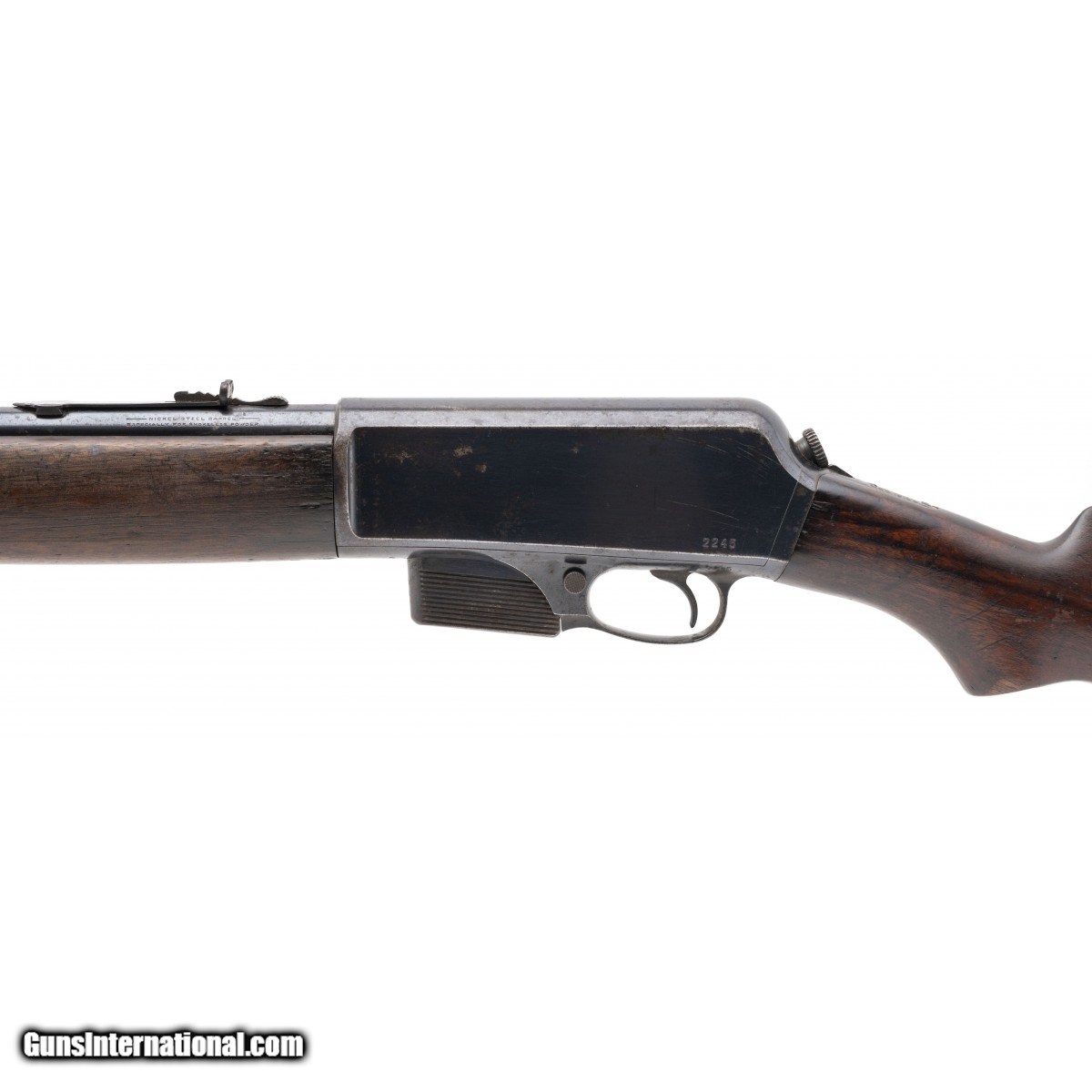 SN: 2245. Made in 1922. .401 with a 20"" barrel. Bore is in good condition with strong rifling. Winchester semi-automatic rifle. Finish is in good condition with large area transitioning. Stock is in good condition with handle wear. Action functions properly. Overall good condition. CONSIGNMENT