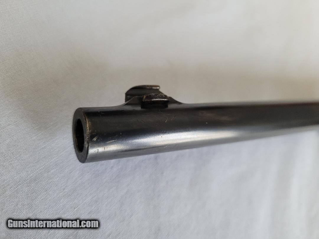 Description: SOLD!!! This is an early pre-war model 1907 in quite nice condition, made in 1918 (S/N 39820), The model 1907 chambers the 351 cliber self loading ammo. The 1907 was introduced in the year of 1907, as a hotter version of the model 1905, as the 1905 proved to shoot weak with the less potent 32SL and 35SL ammo. The model 1907 proved popular, and remained in production until the late 1950's, where it was usedl by law enforcment and as a prison rifle. This one has an excellent bore, and crisp script on the 20" barrel. The front sight is original to the rifle, but the rear sight is an upgraded Marbles Buckhorn style. The stocks are real good, with no cracks or repairs. The butt stock has been lightly sanded and varnished, with the original butt plate intact. The blue would rate 90+% everywhere but on the left side of the receiver where it has flaked off some, but is smooth and still looks pretty good. The take down feature works great, and reassembles nice and tight with matching S/Ns. This rifle shows very little wear for over 100 years old. 10 round magazines can be found for the model 1907 online. $1150 by certified funds, with free shipping and insurance. Thanks for your interest, Dan at (608) 751-7194. SOLD Curio/Relic: Yes Manufacturer: Winchester Model: 1907 Serial Number: 39820 Barrel Length: 20 Bore: rifled Condition: 95% overall Metal Condition: 85%-98% Wood Condition: 90% Bore Condition: exc Barrel Type: round Action: Semi-auto Triggers: single Stock: factory walnut Butt Pad: Factory composite Finish: Blue |