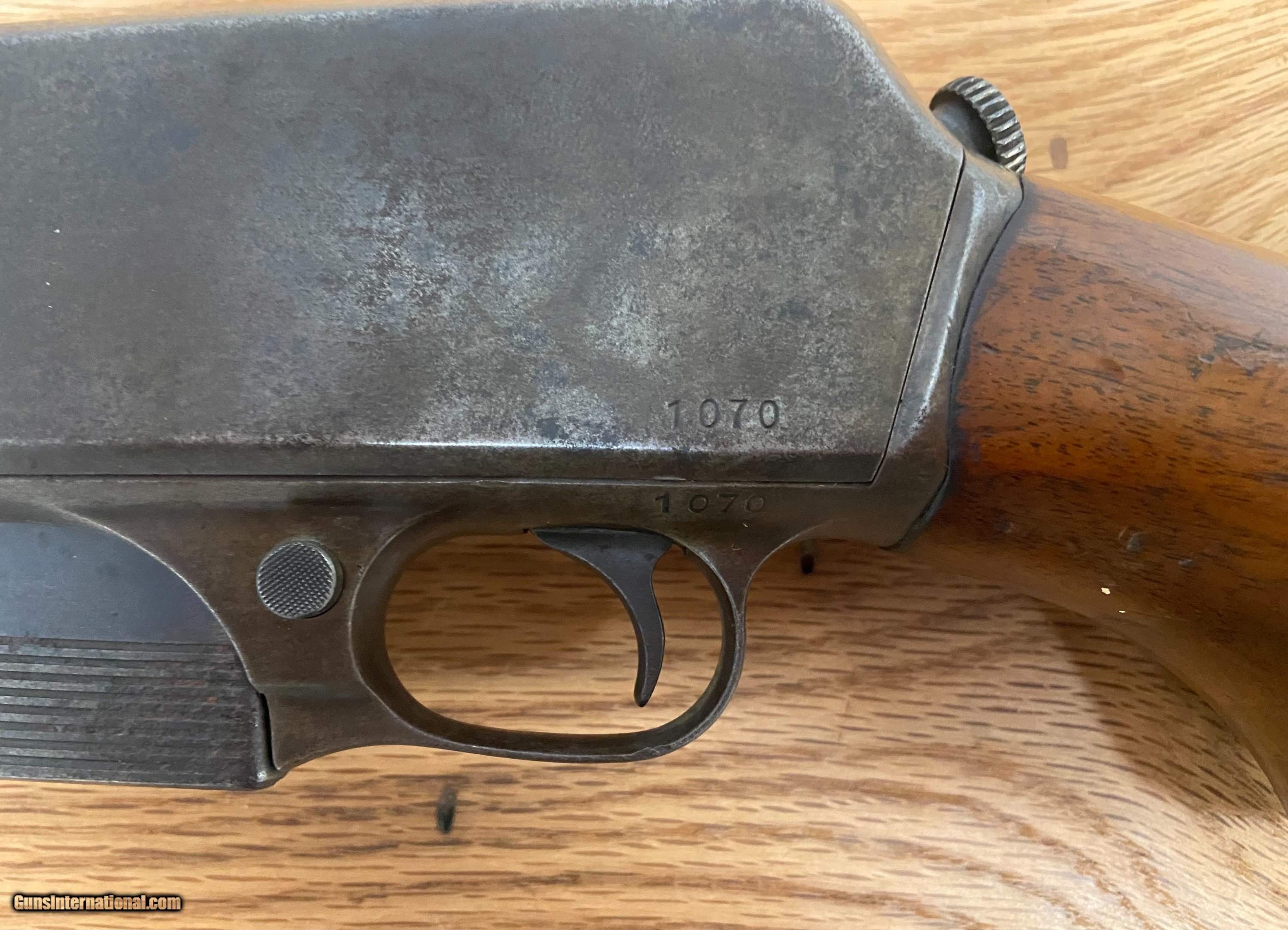 Description: First produced in 1907, the Model 1907 saw action in both World Wars and a few minor conflicts at the time. These rifles are blowback-operated and shoot Winchester’s .351 round. Very forward-thinking for its time, these rifles are fantastic shooters. This firearm is in fair condition; it has seen some love throughout the years. The wood is in great shape, as well as the bore. The metal on the firearm is great but has also seen some love. Overall, this would make a wonderful addition to anyone’s collection. SOLD Rifle Caliber: .351 Winchester Self-Loading |