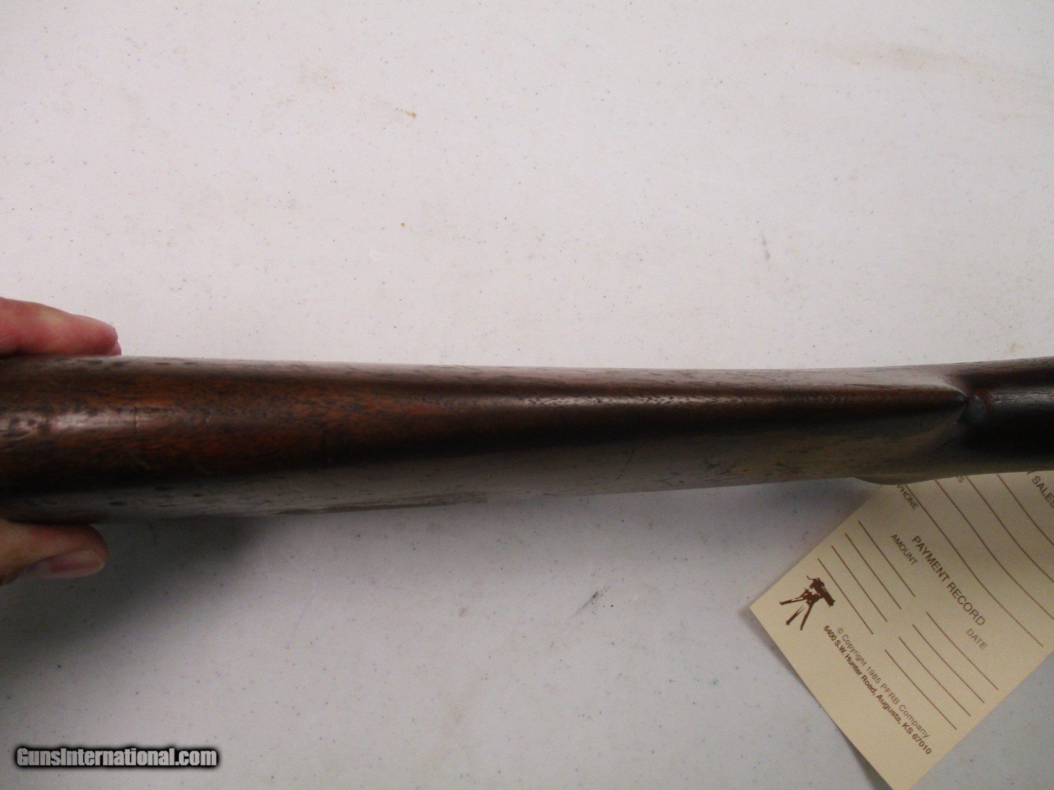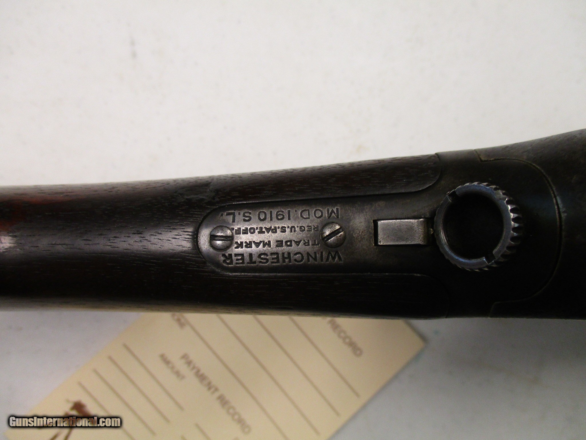 Description: Winchester Model 1910, 401 Win, 20" barrel. SN is 17xx, made 1911, first year! Factory finish on both wood and metal, factory butt plate, great bore. Clean original gun! Email me if you would like these pics sent to you, they will come through bigger and better than on the listing page here. We do offer Lay-A-Way. Our standard terms are 25% down, 90 days. Initial deposit is not refundable. Email me with any questions. I am a store front dealer, and I will close s if the gun sells locally. Once it has aI will pull it from my shelves. Please check your local laws to confirm it is legal to own in your state! Buyer pays $25 shipping and insurance to your FFL in the lower 48. AK, HI or PR is extra. I will ship to California, NO PROBLEM! All my guns come with a non-firing, 3 day unconditional return privilege, from the day UPS delivers to your dealer. Buyer pays shipping both ways if the gun comes back. I can add a new hard case by PLANO for secure shipping for $25 if the buyer wishes (highly recommended, cheap insurance, really helps keep the UPS monster from eating my guns!). No sales tax on guns ship out of Kansas, guns sold in Kansas are subject to Kansas sales tax. I am a licensed FFL, and will include a copy of my FFL with the gun for your dealer’s records. I will ship to a C&R if the gun is eligible. I will ship to California, but you need to confirm the gun is legal where you are, California or other. WE BUY AND CONSIGN GUNS AND GUN COLLECTIONS! We will travel to pick up collections! I am always looking for good clean, old original Winchesters to buy, consign, or trade, especially Pre '64's model 70's and model 54's. WE ALSO TRADE FOR CLASSIC CARS AND TRUCKS! Email me with any questions, and good luck! SOLD |