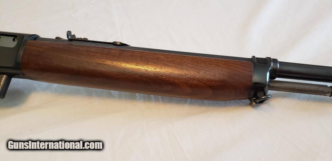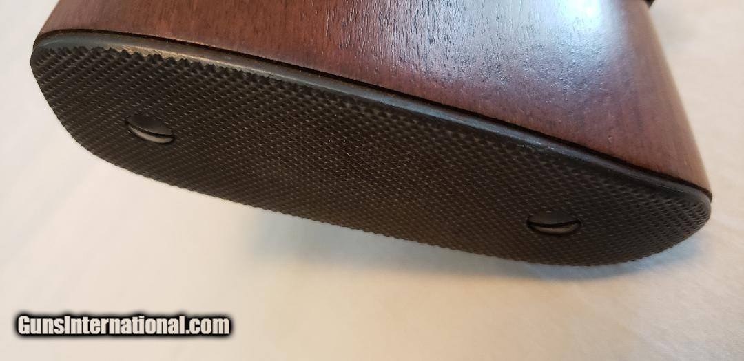 Description: This is an absolutely original model 07 Winchester 351 caliber self loading Police and Prison rifle from 1949. The condition of this piece is as stone mint as you could ever hope to find, showing only a few very minor handling marks to the stocks, and virtually no imperfections of any sort to the metal surfaces. This rifle shows very little wear, and may actually be factory test fired only. Comes with one 5 round mag that shows no blue loss from being loaded, or even having a shell slide over it. Winchester made a10 round mag as well, that are available online. The sight package is all corrrect for this version, the bore is perfect, all script is crisp and clear, and the checkered metal butt plate is original and correct. The stocks are heavier on the P&P version, and Winchester changed the design of the charging rod, to a finger hook, as opposed to the round pad of the earlier guns. This created a more positive grip when loading the initial round in the chamber. The change to a finger hook occured during the last ten or so years of production. These rifles were built from 1907-1957. This gun takes down and reassembles as it should. No dissapointments here, as this 99% rifle is one of the best 07's on the planet. This gun will definitely stand out in any Winchester self loader collection. SOLD Curio/Relic: Yes Manufacturer: Winchester Model: 07 Serial Number: 50746 Caliber Info: .351 Bore: 20 Condition: near mint Metal Condition: mint Wood Condition: 99% Bore Condition: exc |