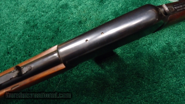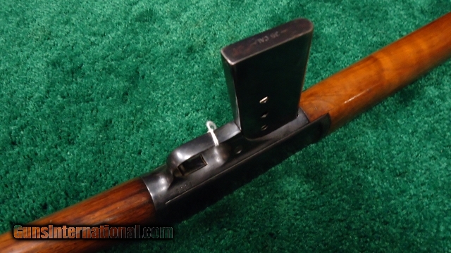 Description: This self loader is in 35 cal. 4-digit serial number. Totally refinished and retains most of that finish. Doesn't look too bad but was overbuffed with part of bbl address missing. A couple holes in top of the receiver. Marbles front and rear sight. Stock is in pretty good cond and has a Winchester recoil pad. Forearm is better than most with no cracks. Wood has had a light coat of varnish. Bore is shiny but rough. Orig 35 cal 10-round mag. These magzines are sought after and exspensive. The mag is worth nearly the price of this gun. Leroy Merz Antique Firearms specializes in antique and vintage Winchesters and other fine American firearms. Since 1965 Mr. Merz has taken part in the world of firearms and has been a contributor to many well known reference books. Just recently we mailed the 124th edition of our privately-published catalog. We have hundreds of additional guns in every price range at our home online. Search for Merz Antiques in google. SOLD Curio/Relic: Yes Antique: Yes |